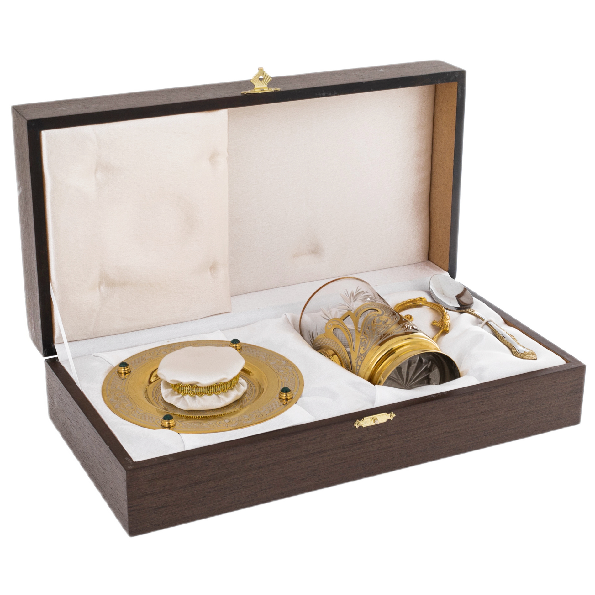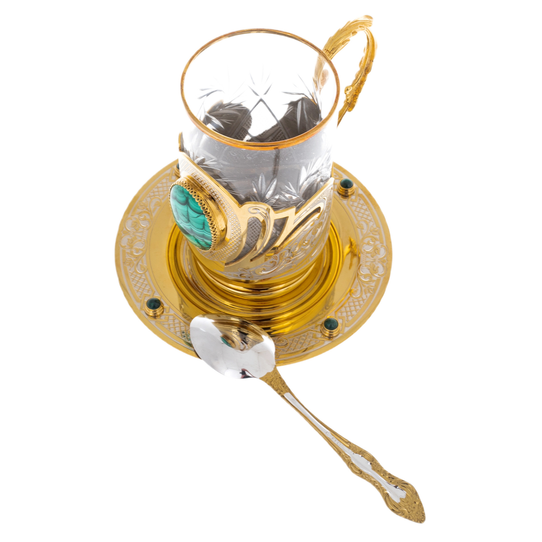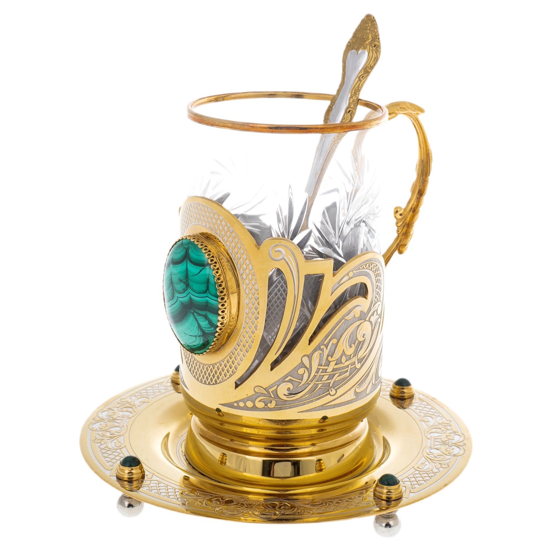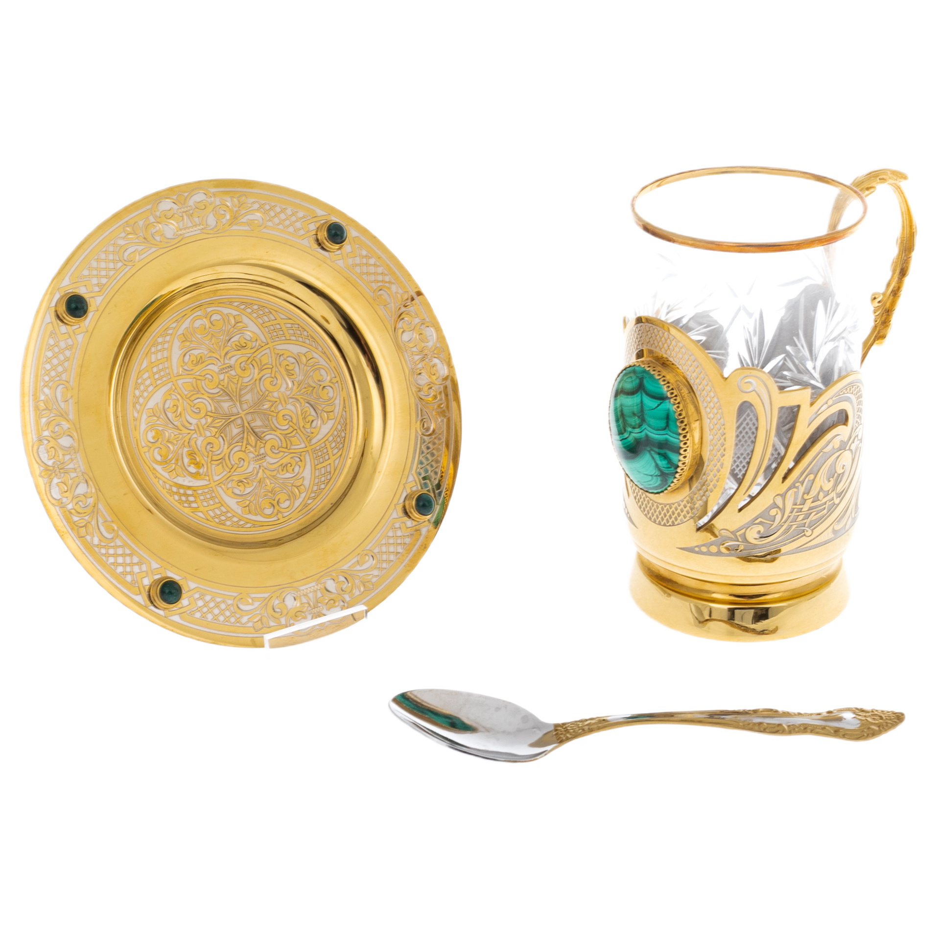 Набор для чая с малахитом "Царский" на 1 персону, Златоуст
