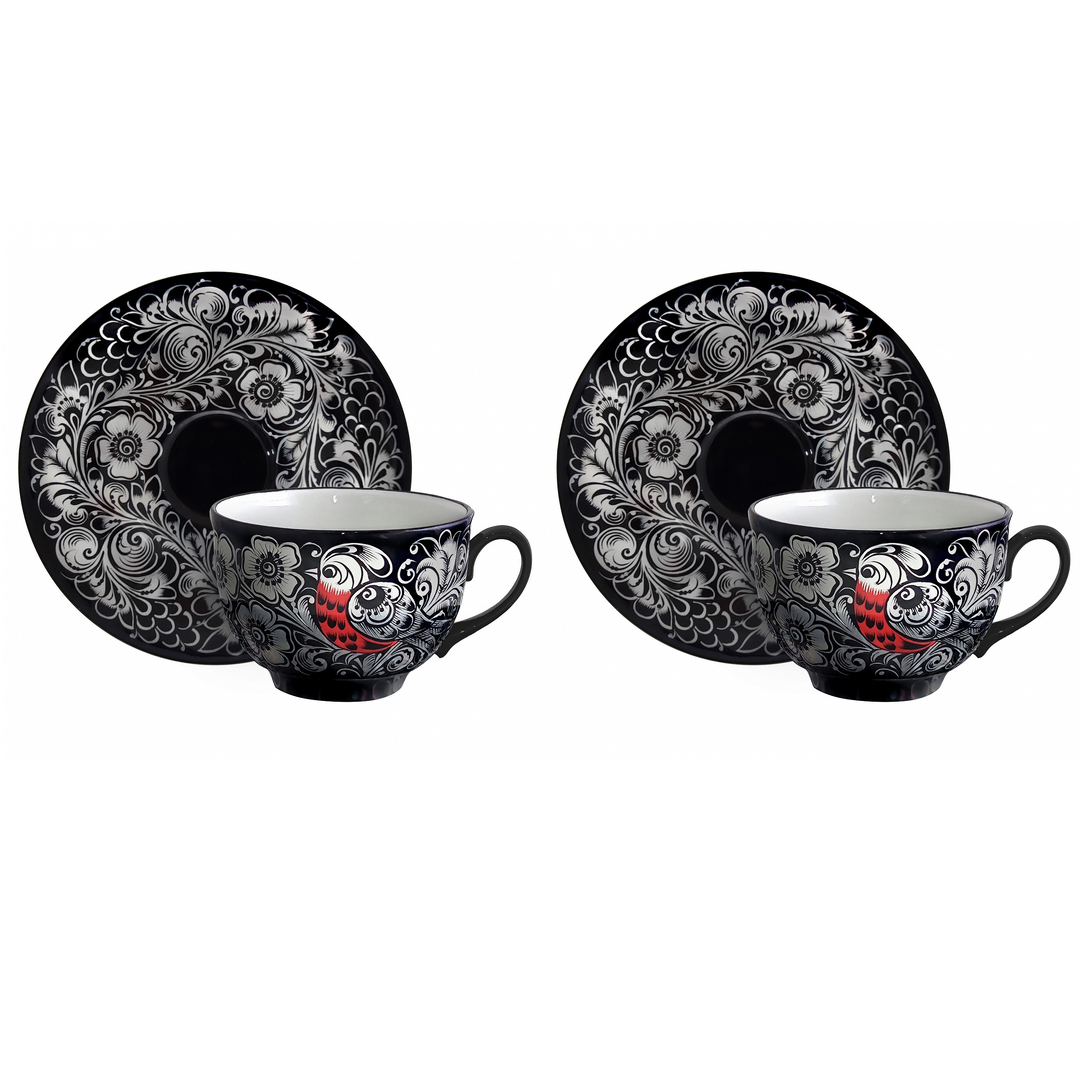 Набор для чая "Снегирь" на 2 персоны, хохлома