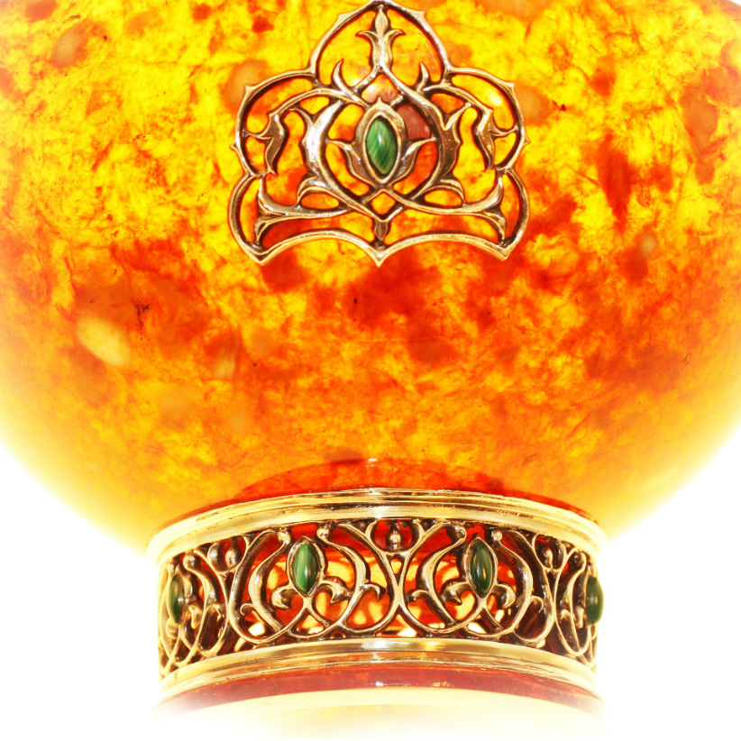 Материалы:натуральный янтарь, малахит, белая ювелирная бронза.