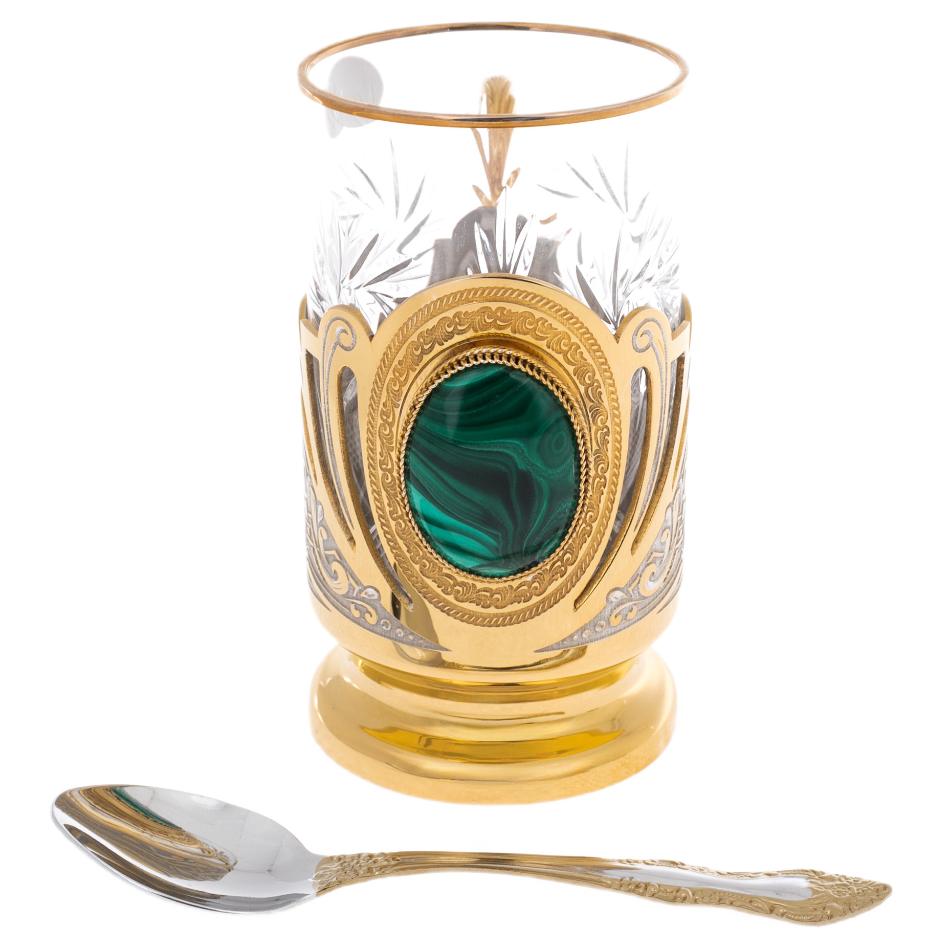 Чайный подстаканник "Статус" с малахитом — воплощение гармонии власти и природного величия, где драгоценный металл встречается с изысканным камнем, хранящим дыхание веков. Глубокий оттенок малахита, словно заключённый в золотую оправу времени, притягивает взгляд, как священный символ благородства и успеха. Каждый прожилок минерала напоминает о нерушимом спокойствии природы, покорённой лишь рукою мастера, а его зелёное сияние несёт в себе уверенность и стабильность, подобно древнему щиту.