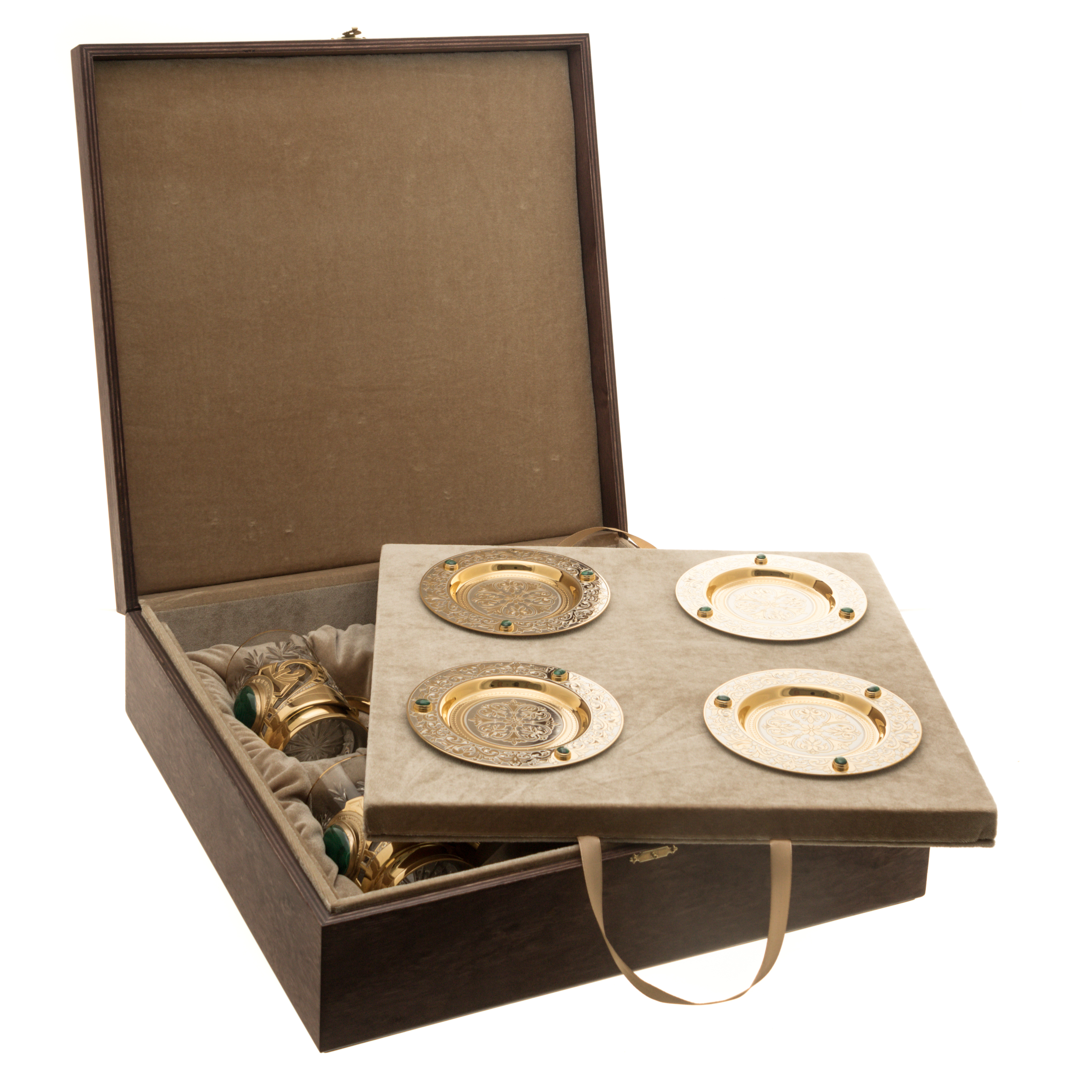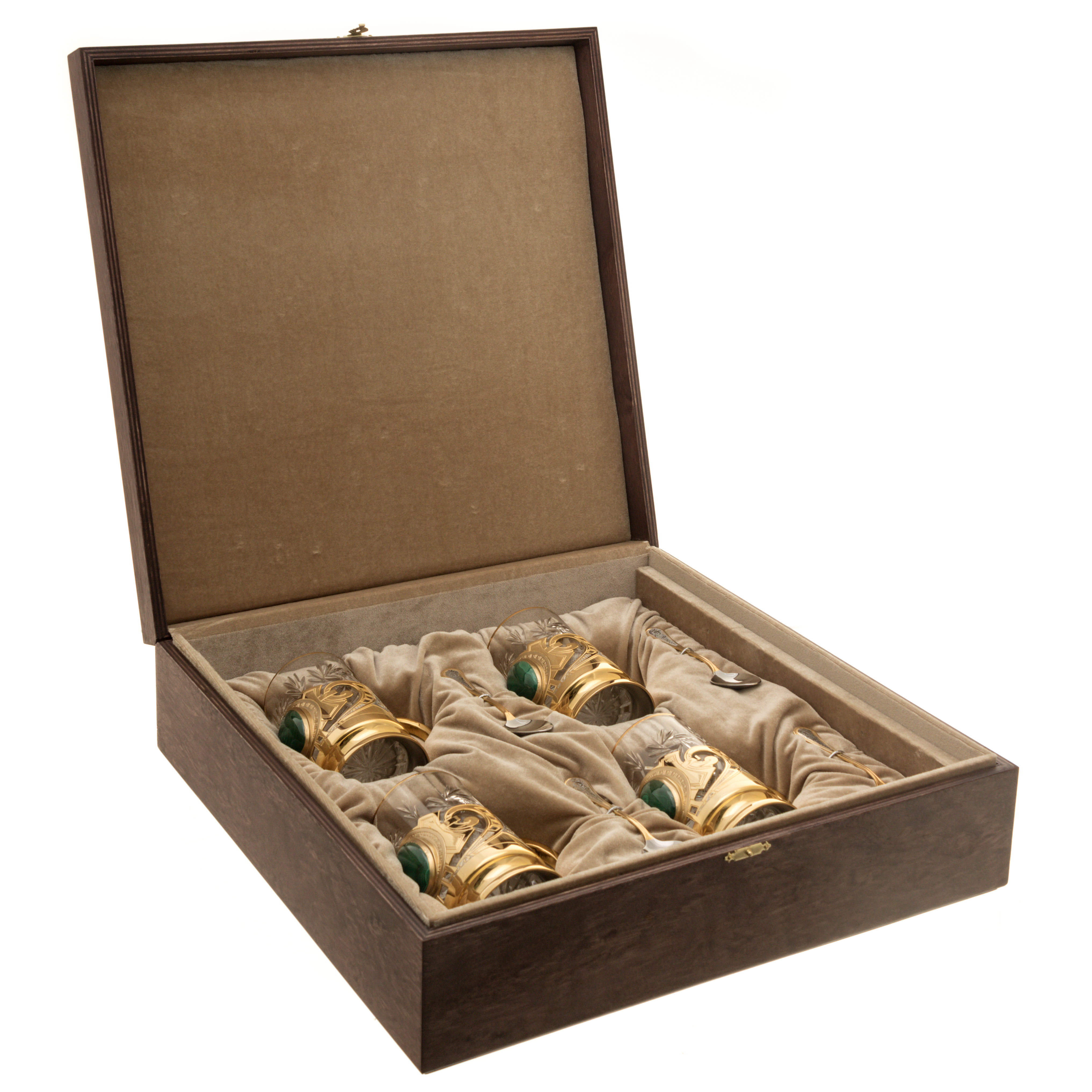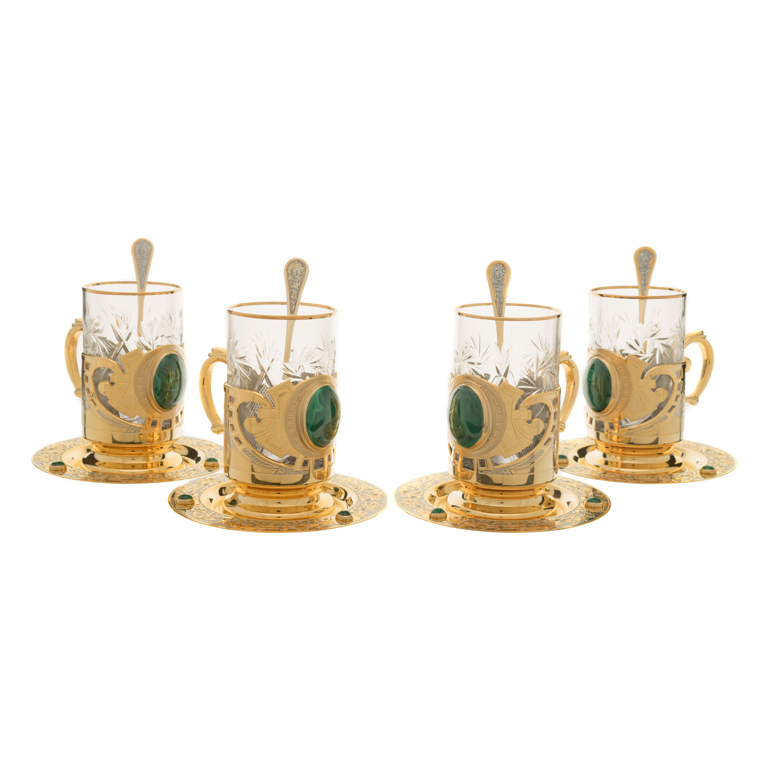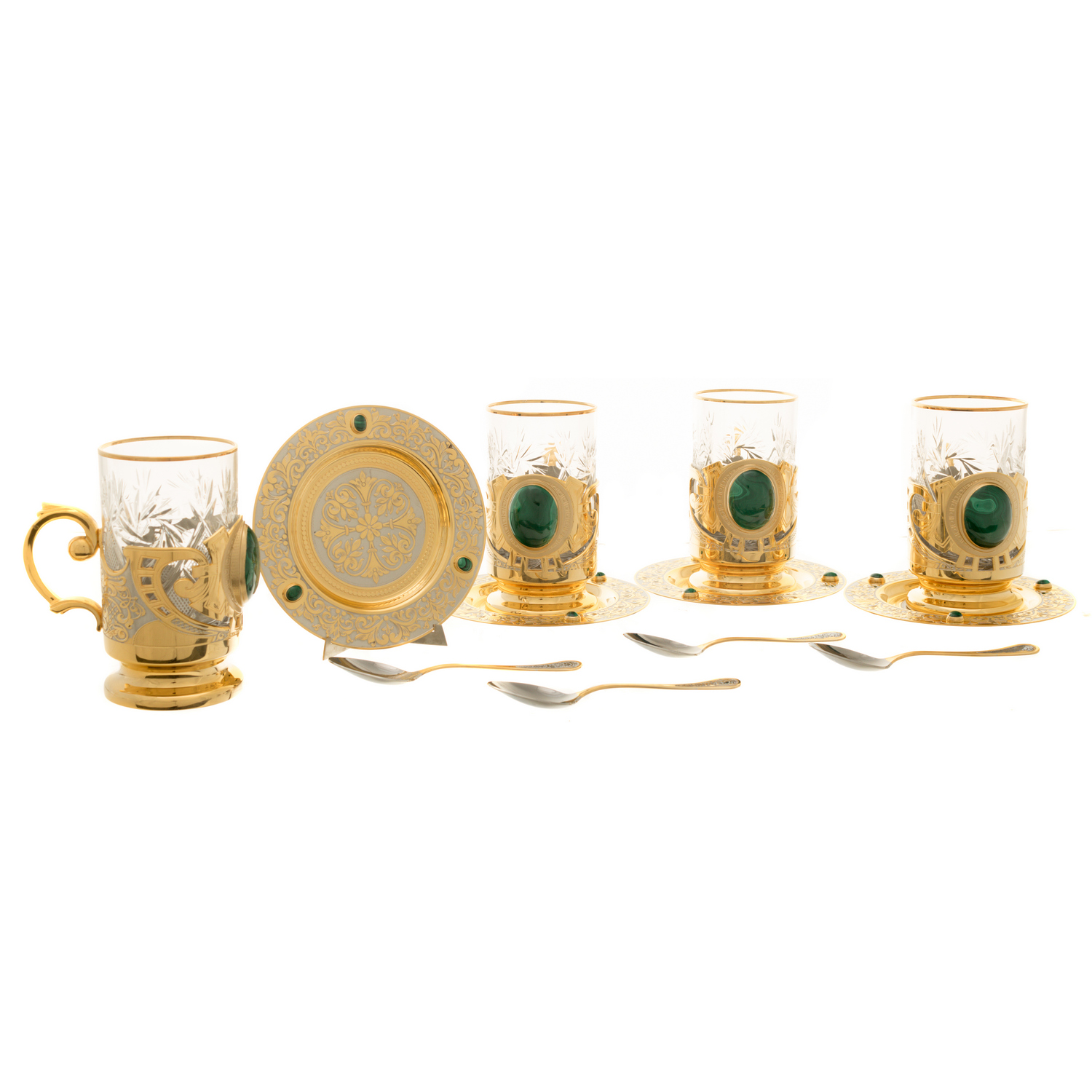 Чайный набор на 4 персоны "Русь" с малахитом, Златоуст