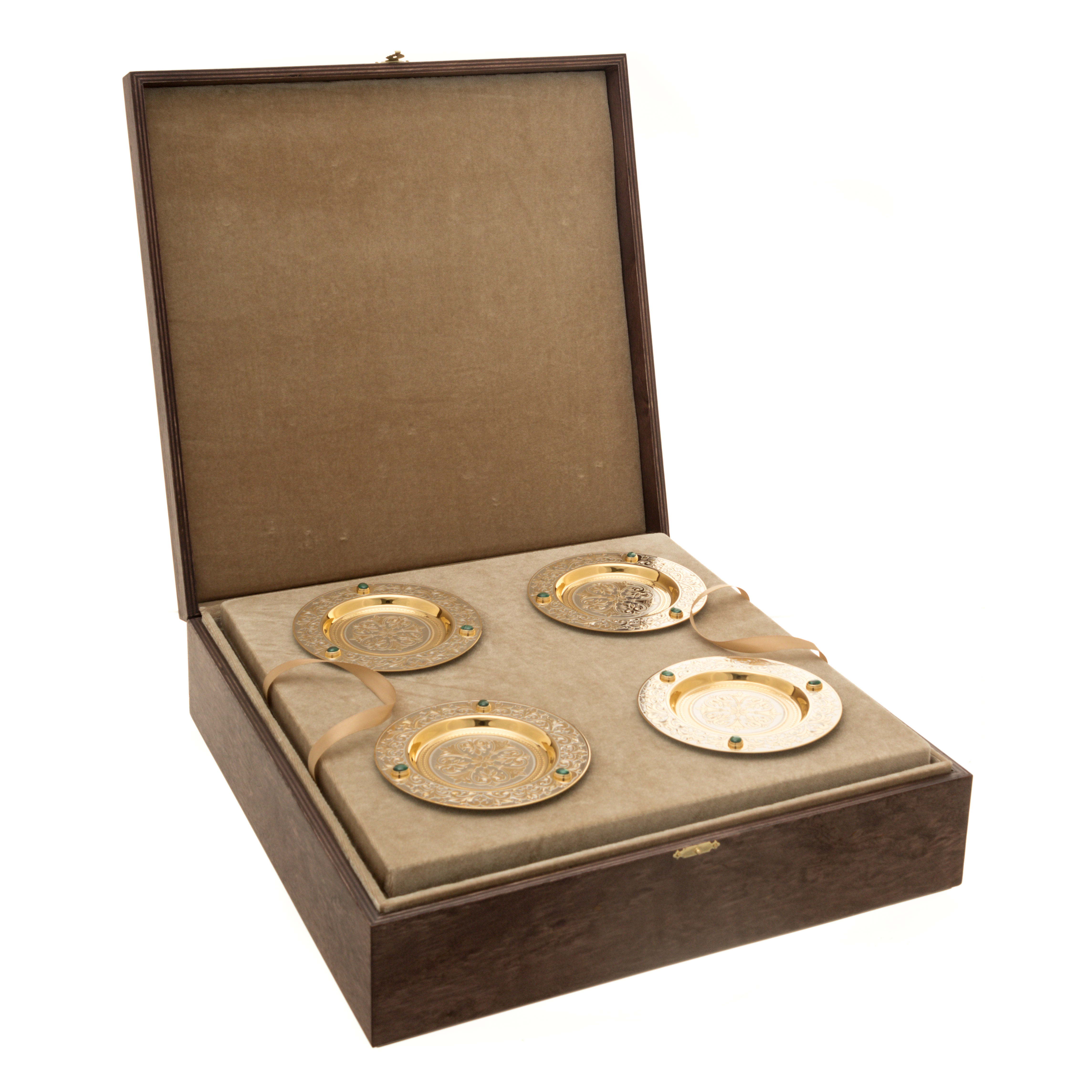 Комплектация:блюдца - 4 шт, стаканы - 4 шт, подстаканники - 4 шт, ложки - 4 шт.