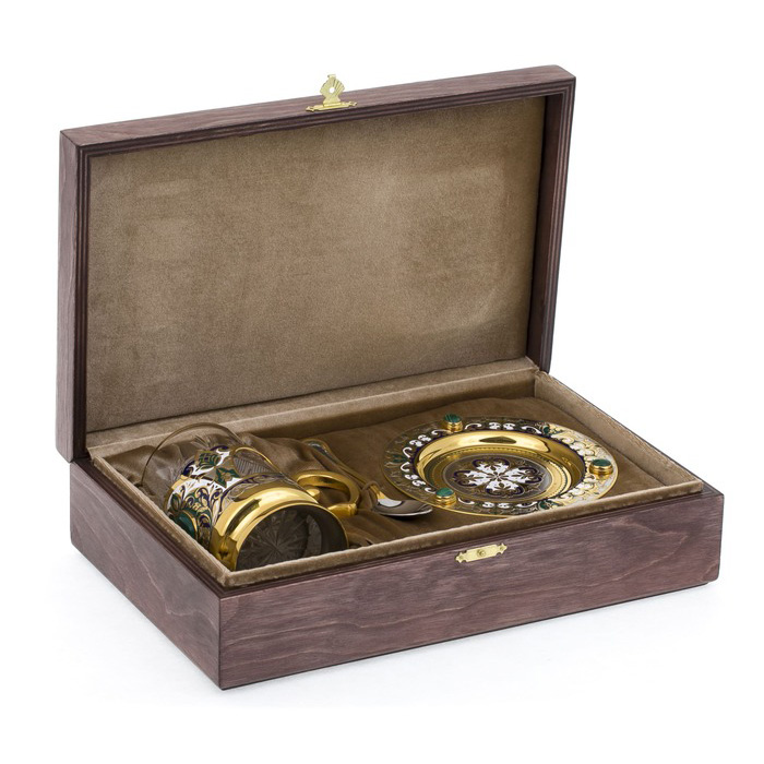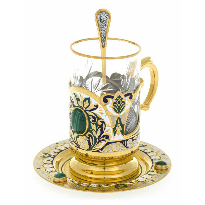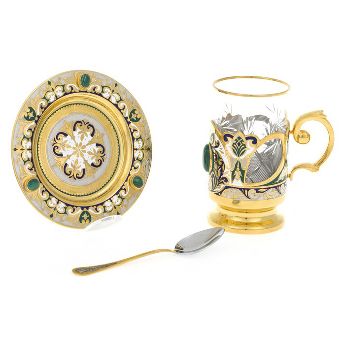 Чайный набор "Державный" ЗлатоустЧайный набор "Державный" ЗлатоустКоллекции изящной посуды от мастеров из Златоуста эффектно декорированы росписью, травлением и золочением. После того, как на полированную поверхность наносится изящный рисунок, изделие сушится в печи и подвергается обработке, после которого рисунок становится рельефным.