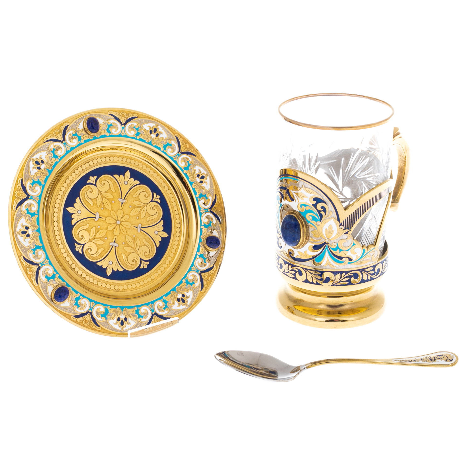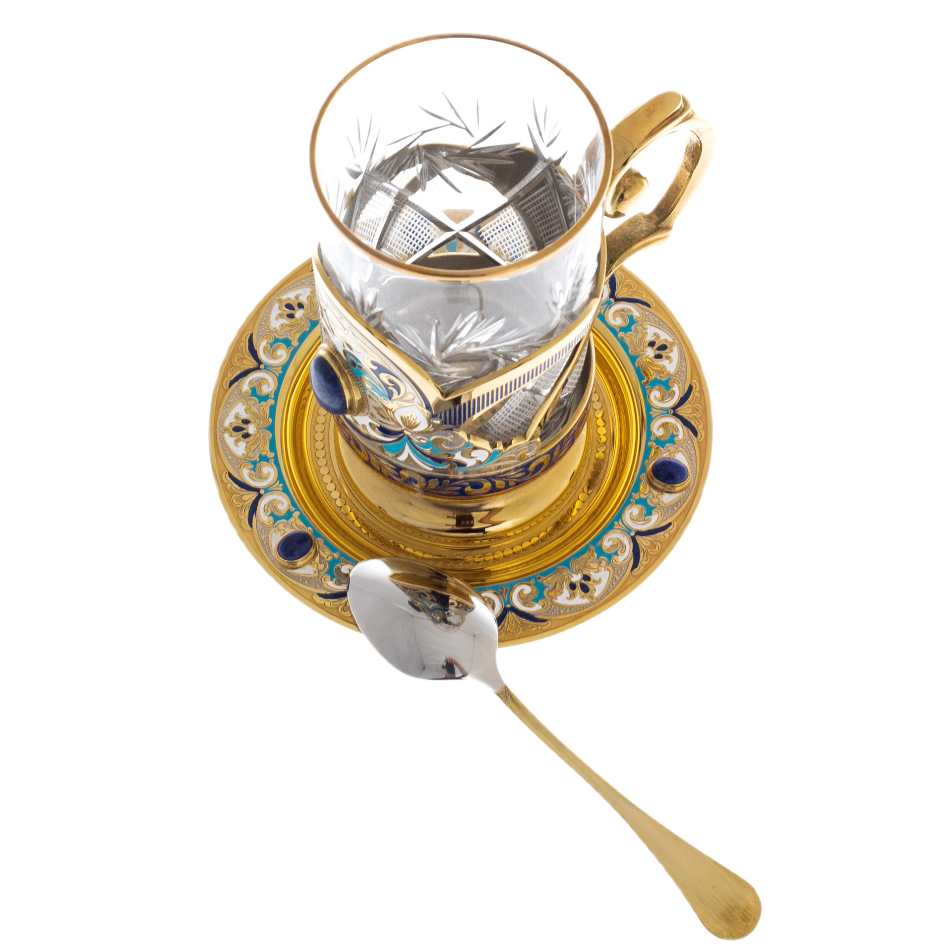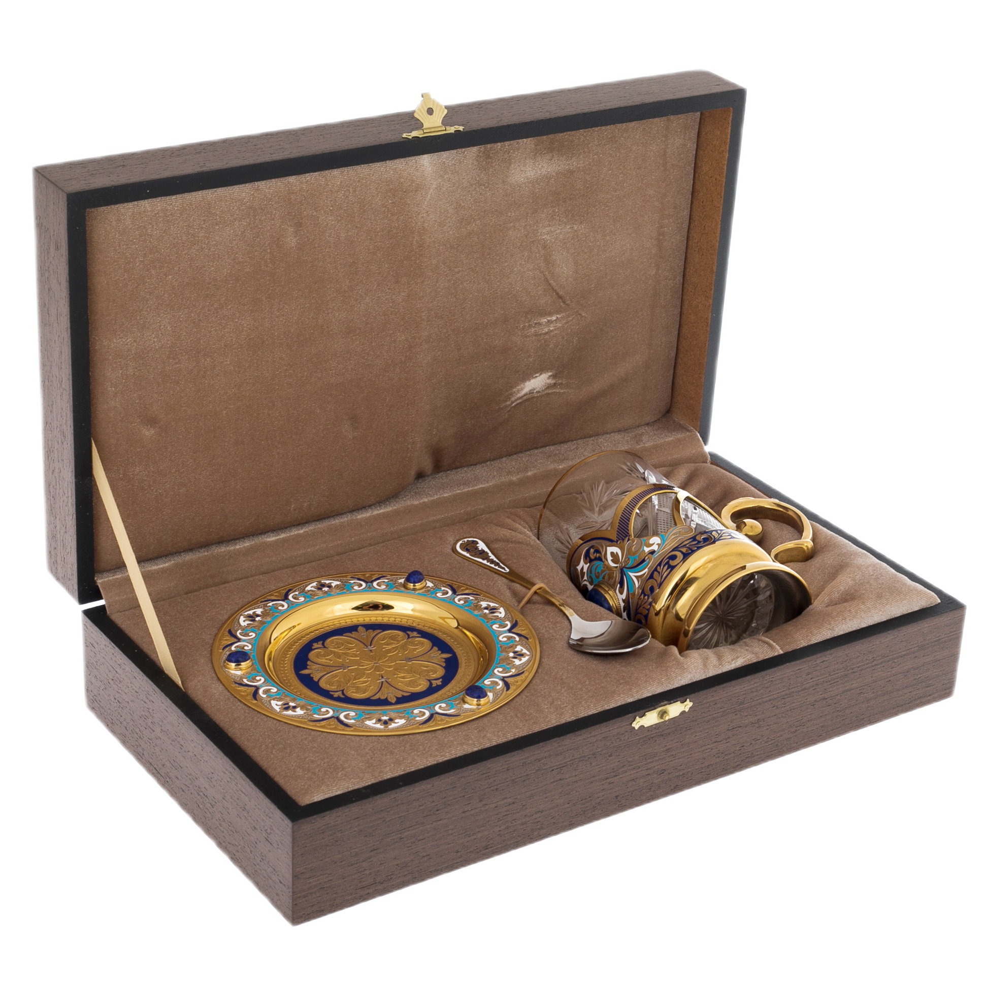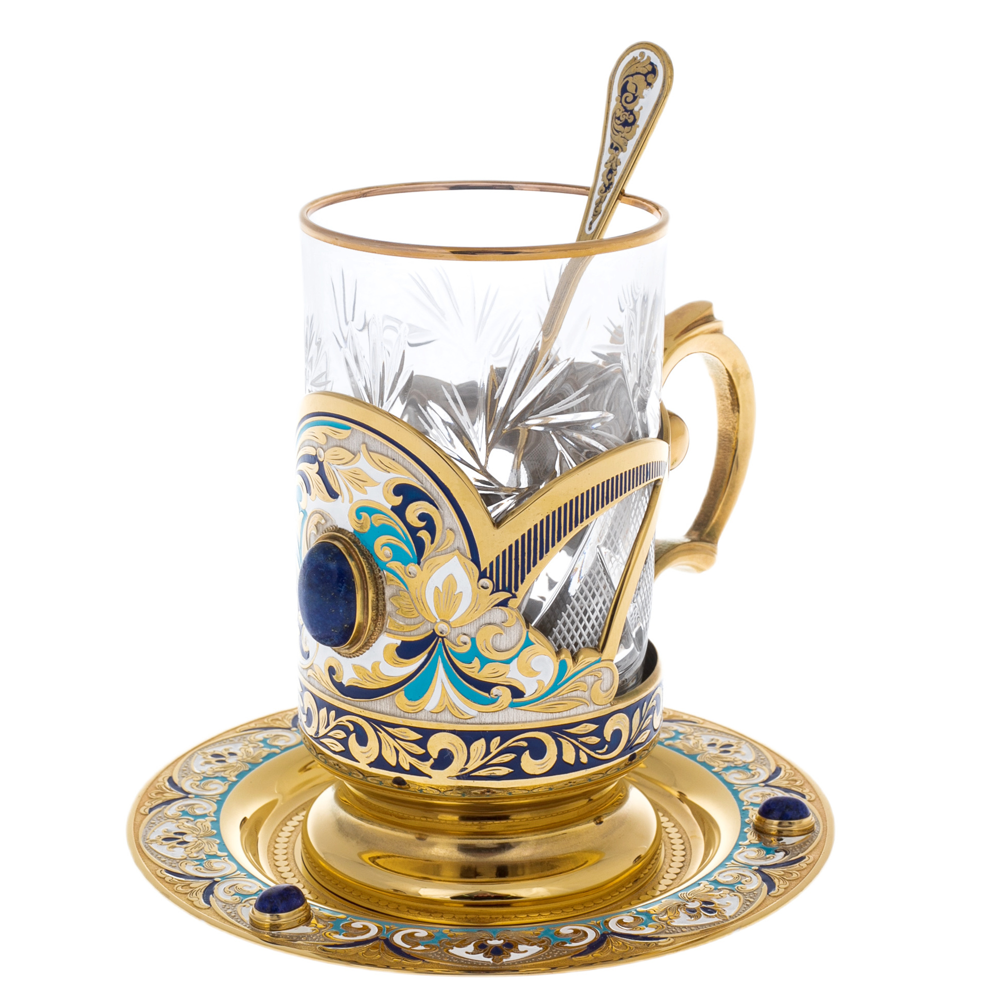 Набор чайный "Цветы" с лазуритом, Златоуст
