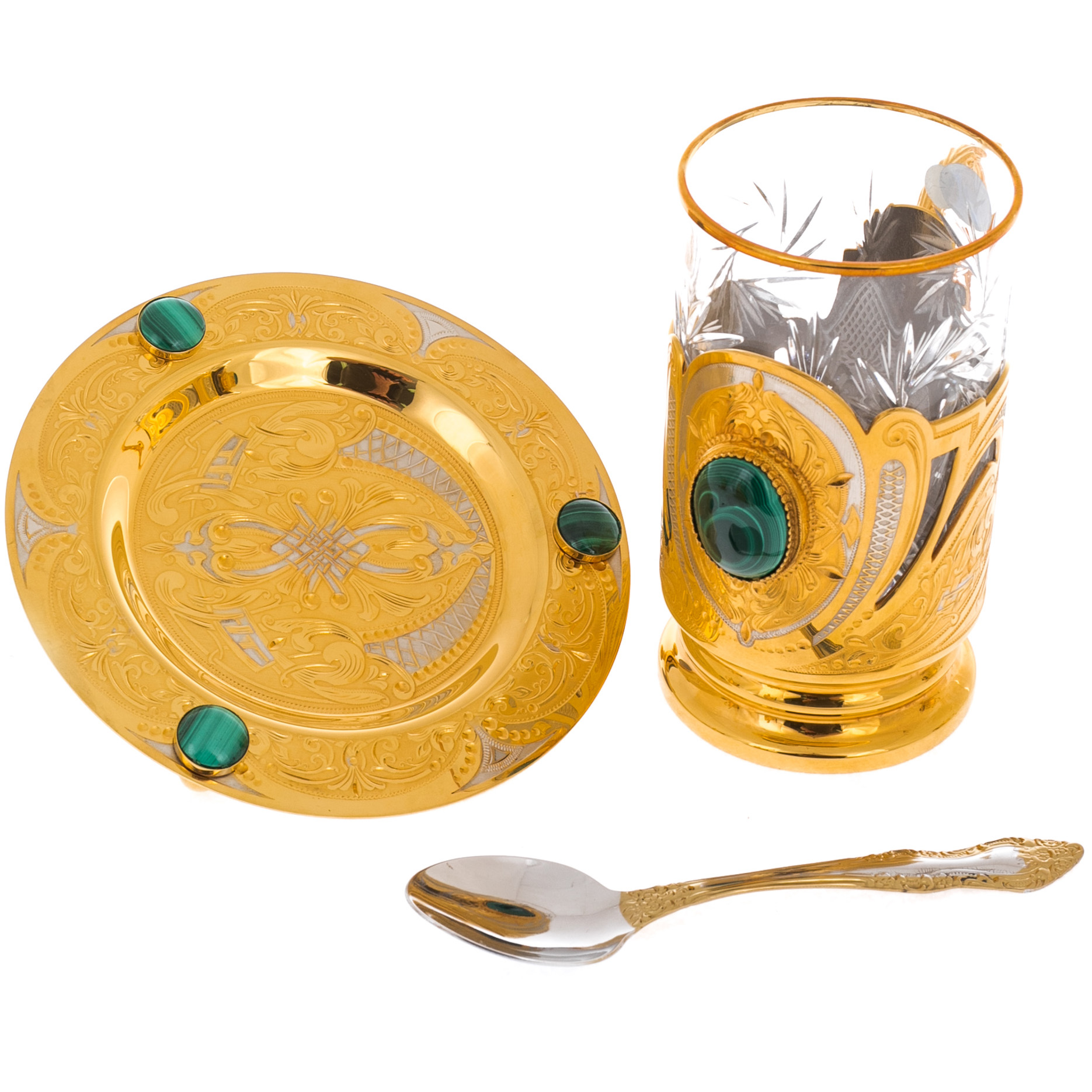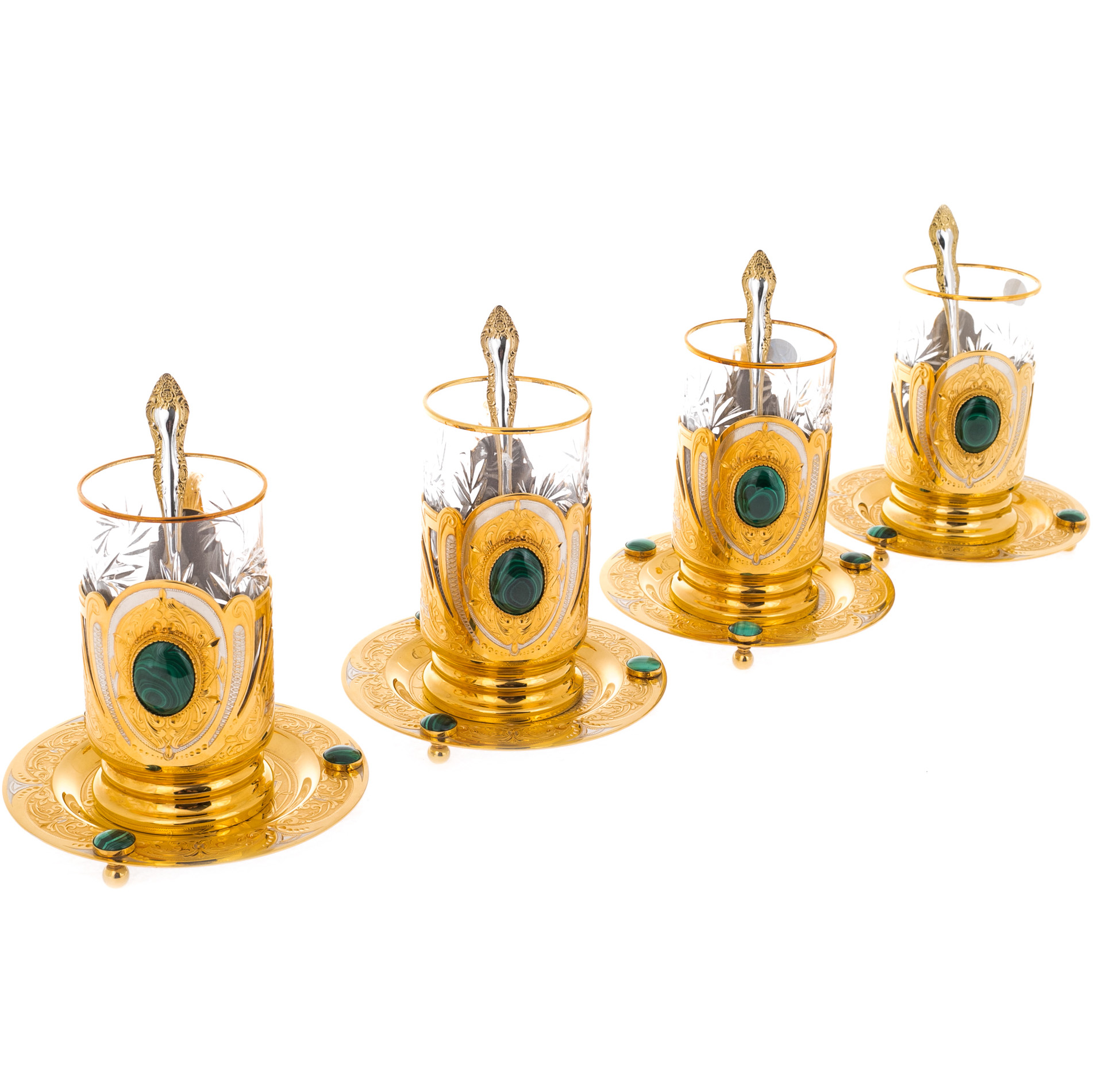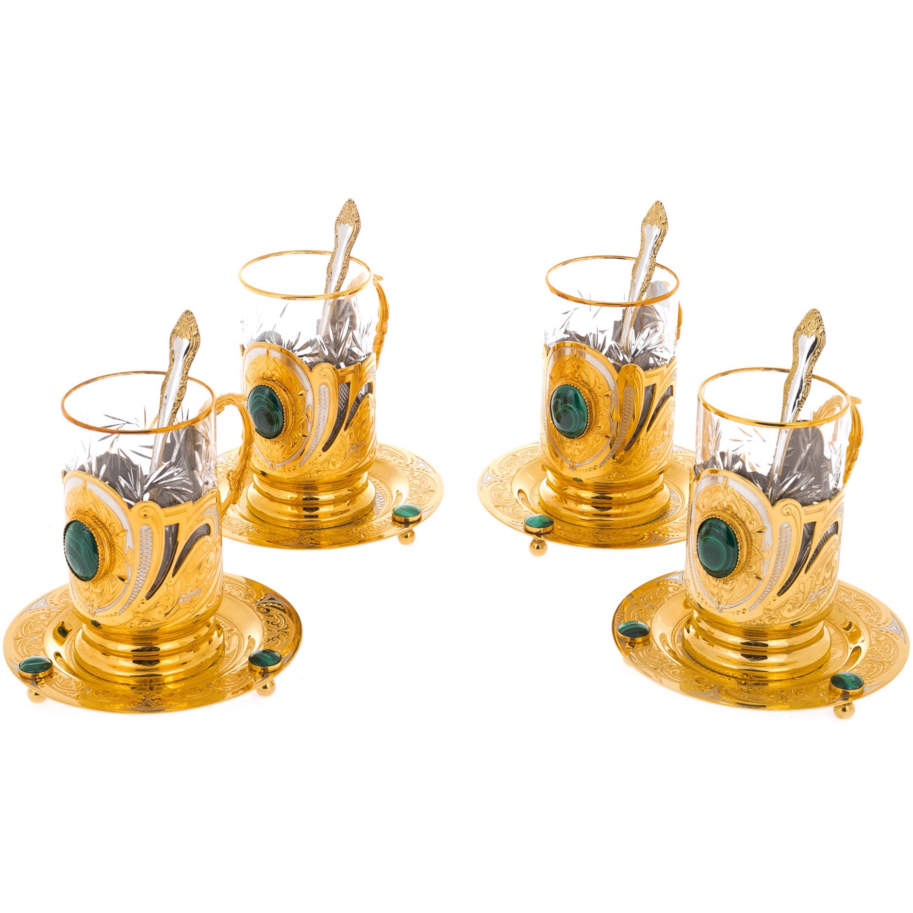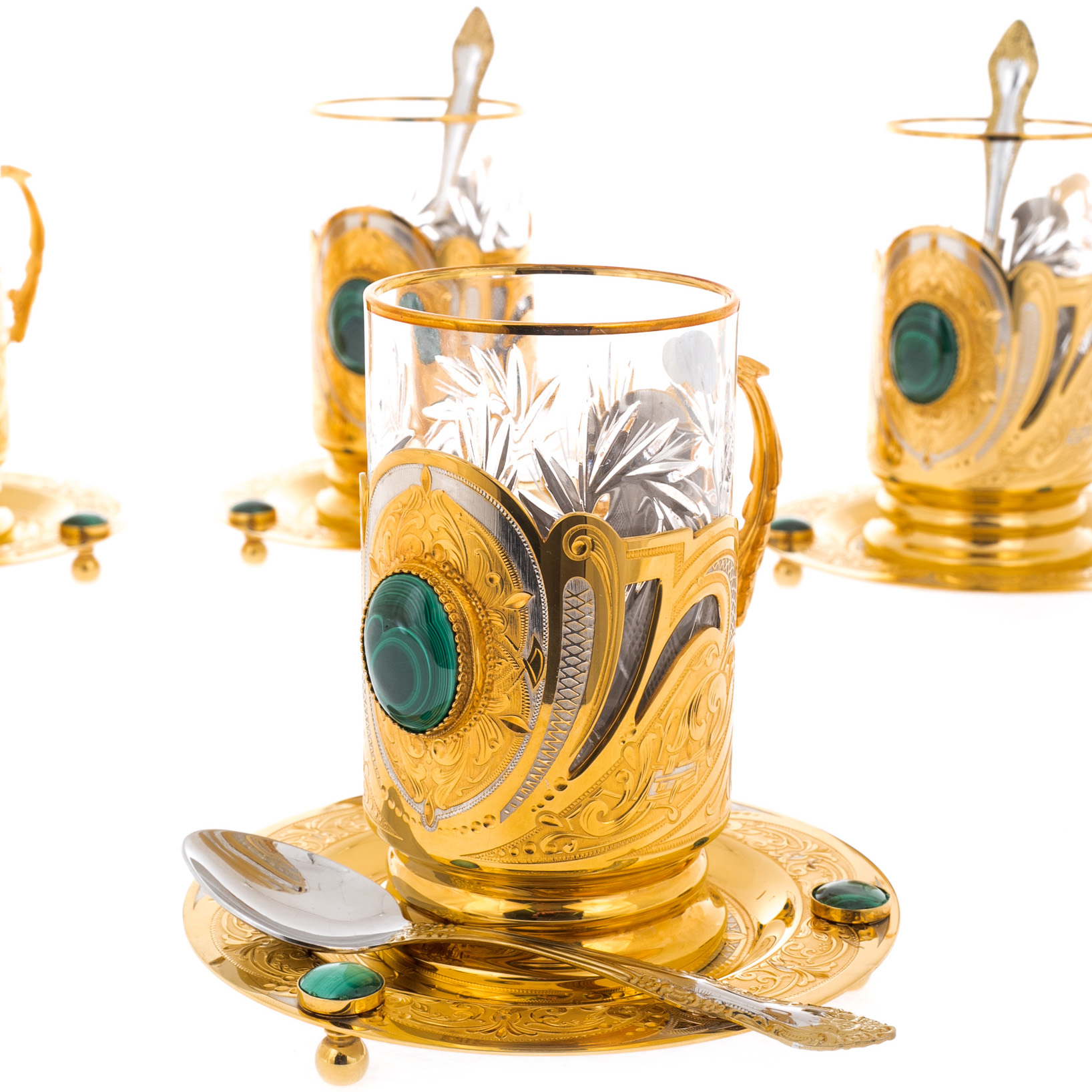 Чайный набор "Утро" на 4 персоны, с малахитом, Златоуст