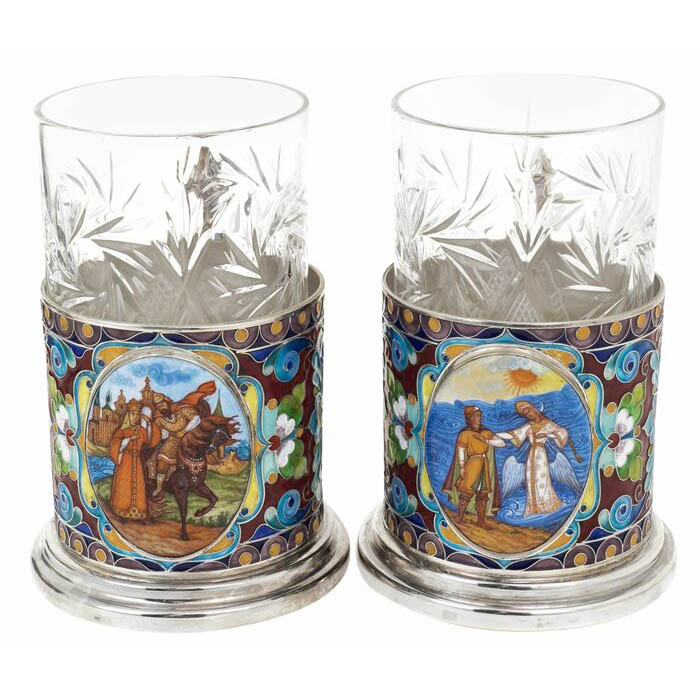Сценки из русских сказок, нанесенные на поверхность подстаканников, словно оживляют наследие, передаваемое из уст в уста, из века в век. Благородные князья, загадочные богатыри, чарующие девы — каждый образ говорит о величии духа и силе судьбы. Это не просто декоративные элементы, а истории, вписанные в культуру великой державы, сохраненные в серебре, чтобы служить напоминанием о непреходящих ценностях.