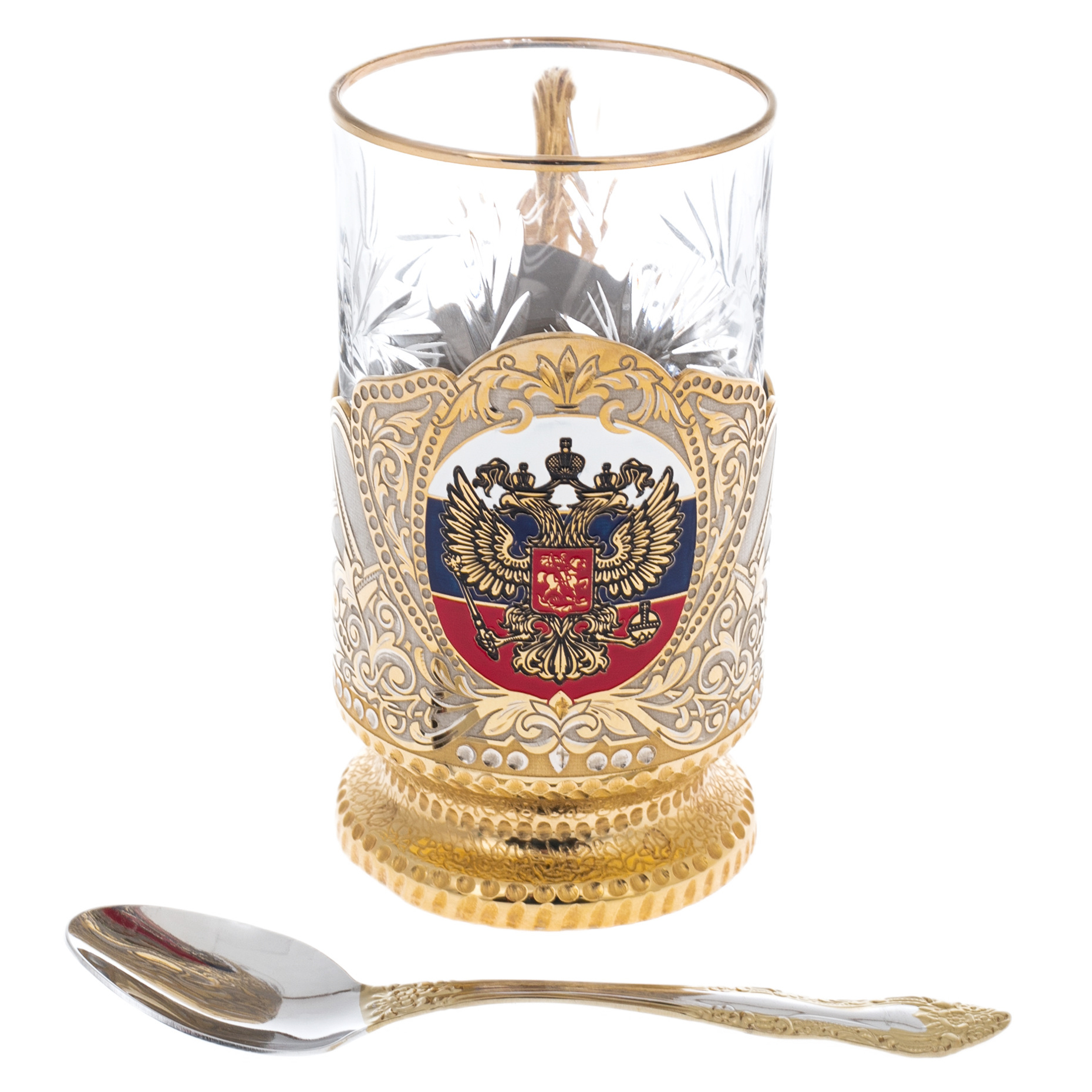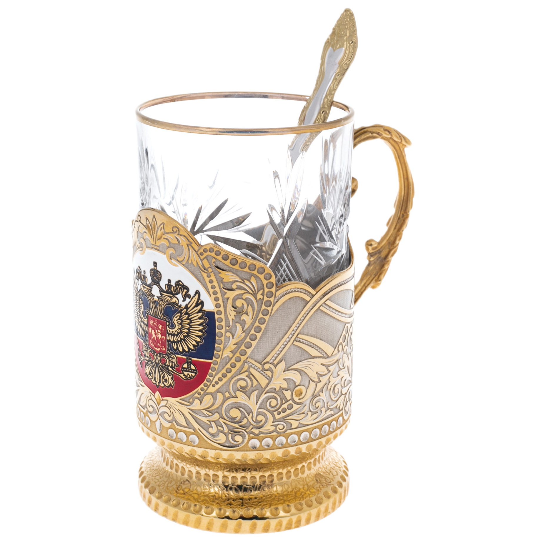 Подстаканник "Герб РФ. Триколор" с эмалью, Златоуст