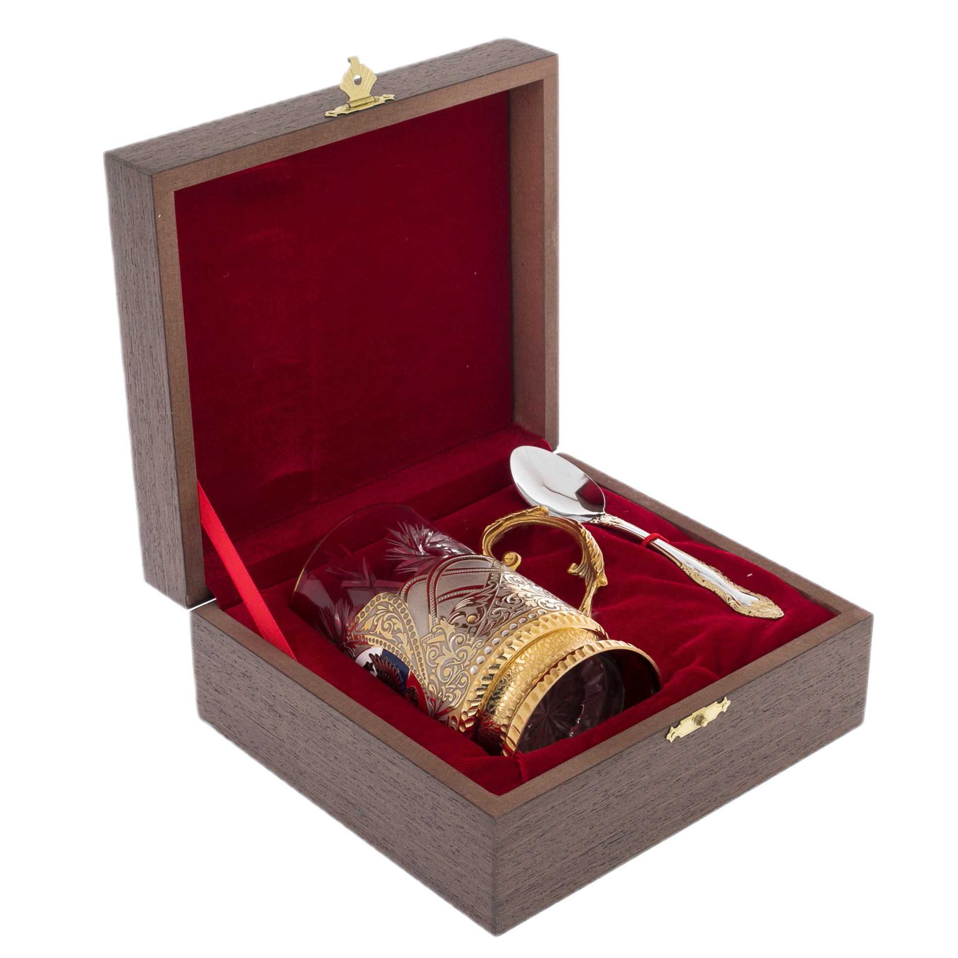 Комплектация: подстаканник, стакан, чайная ложка, деревянный футляр.