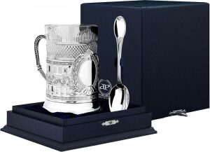Коллекция классического столового серебра - это союз многовековых традиций и современных технологий, эстетичных форм и эргономичного дизайна. Все предметы коллекции созданы, чтобы стать заветными семейными ценностями и передаваться из поколения в поколение. Серебряный подстаканник великой эпохи. Тот самый подстаканник, которым славится город Кольчугино. Титульная сторона серебряного подстаканника выполнена в виде медальона, на который можно нанести гравировку в виде монограммы или семейного герба.
