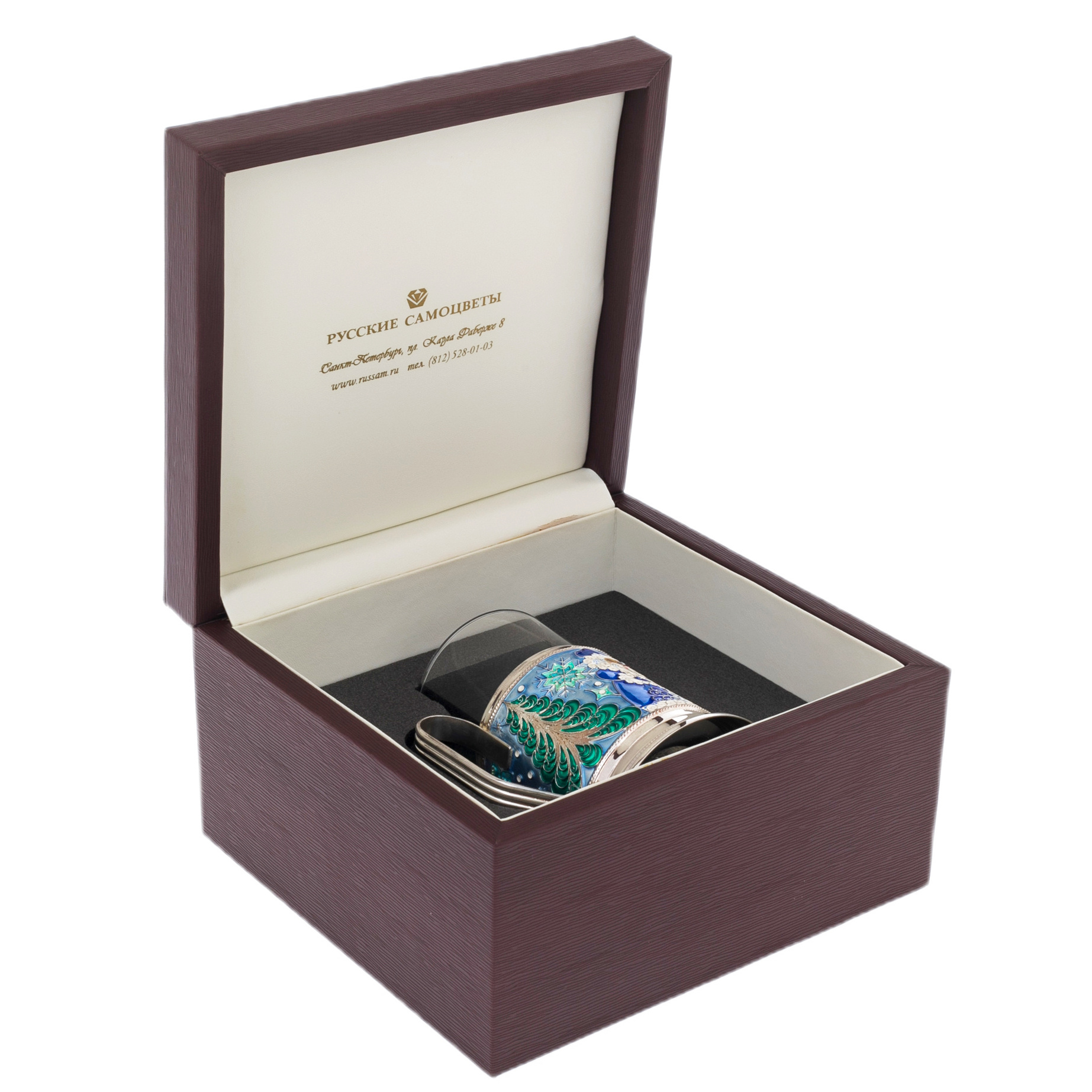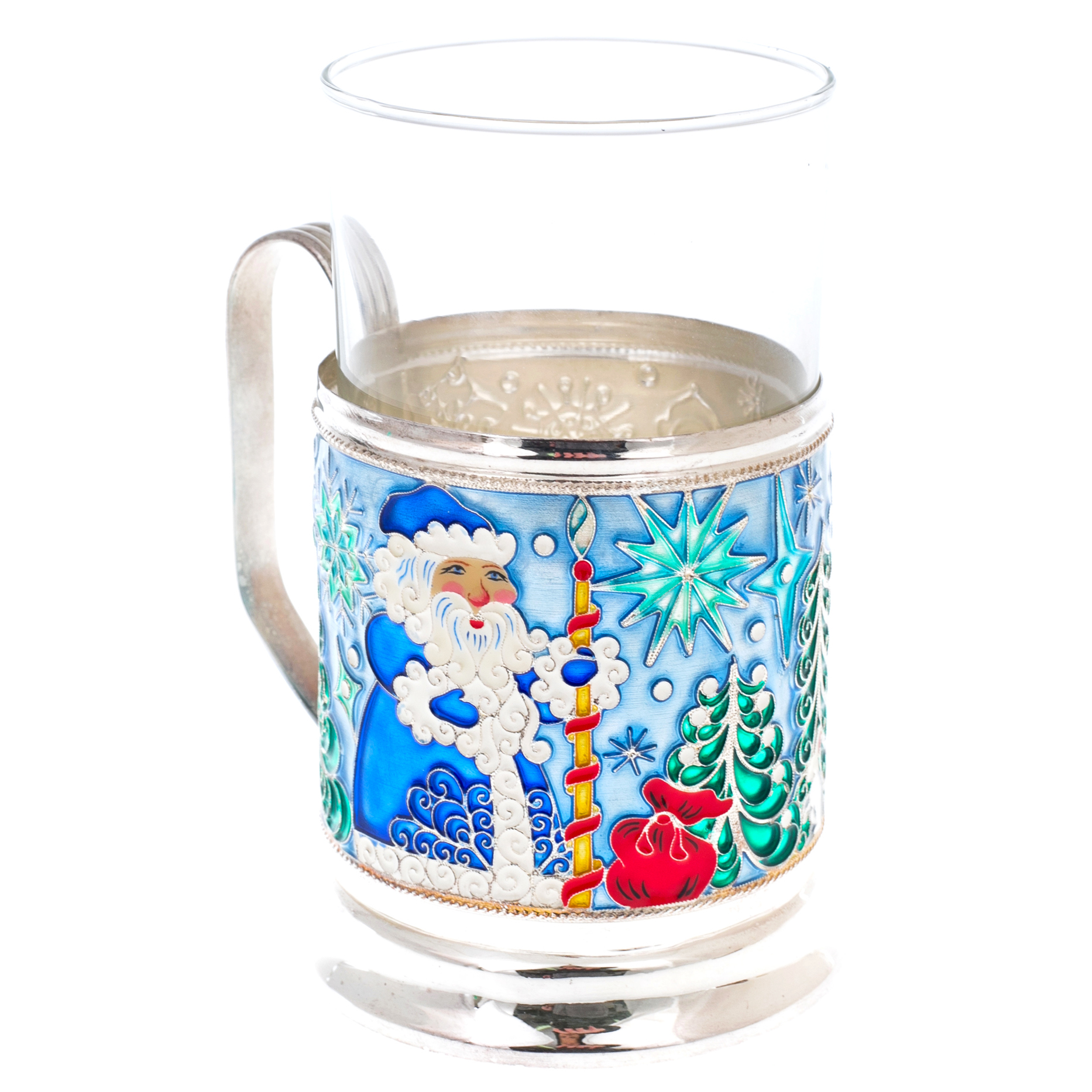 Тонкий серебряный орнамент, окружающий подстаканник, служит олицетворением грации и благородства, усиливая уникальность этого предмета. Прикасаясь к этому подстаканнику, словно окунаешься в зимнюю сказку, где царствуют спокойствие и достоинство, где каждый глоток согрет вниманием к деталям и мастерством исполнителя.