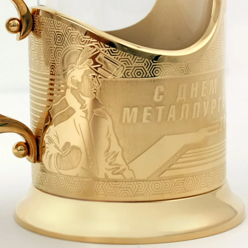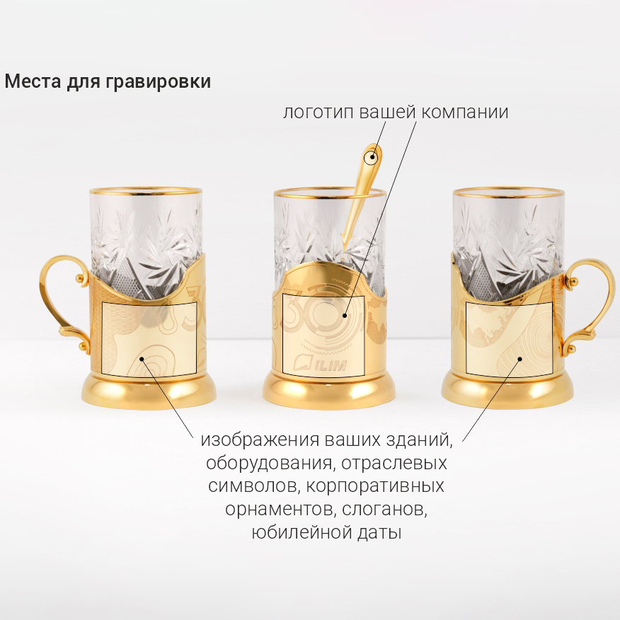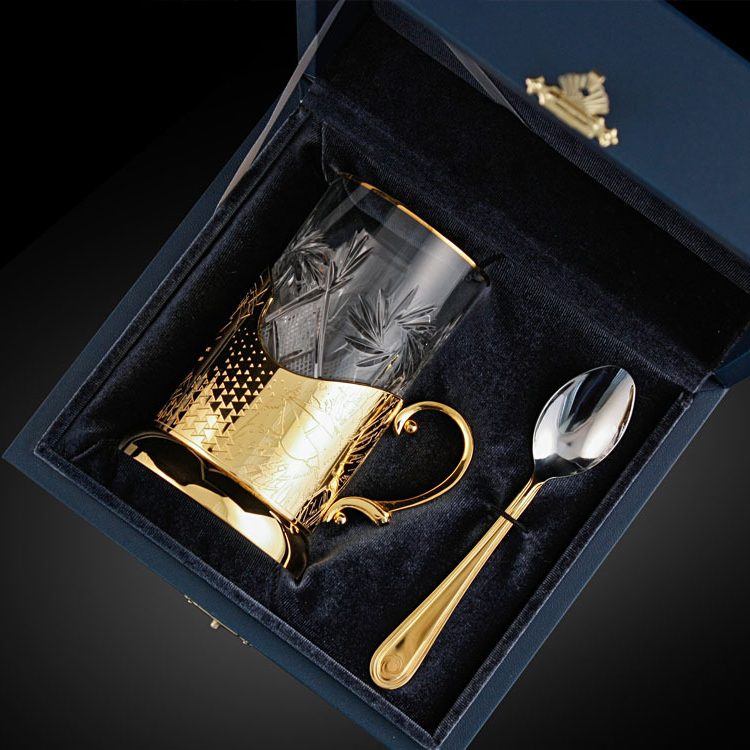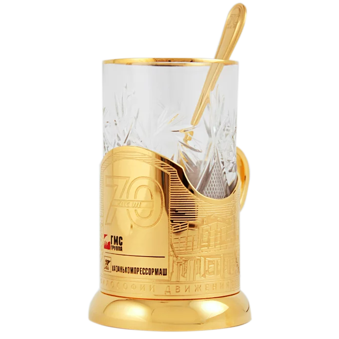 Комплектация:подстаканник, стакан с золотой окантовкой, ложечка.