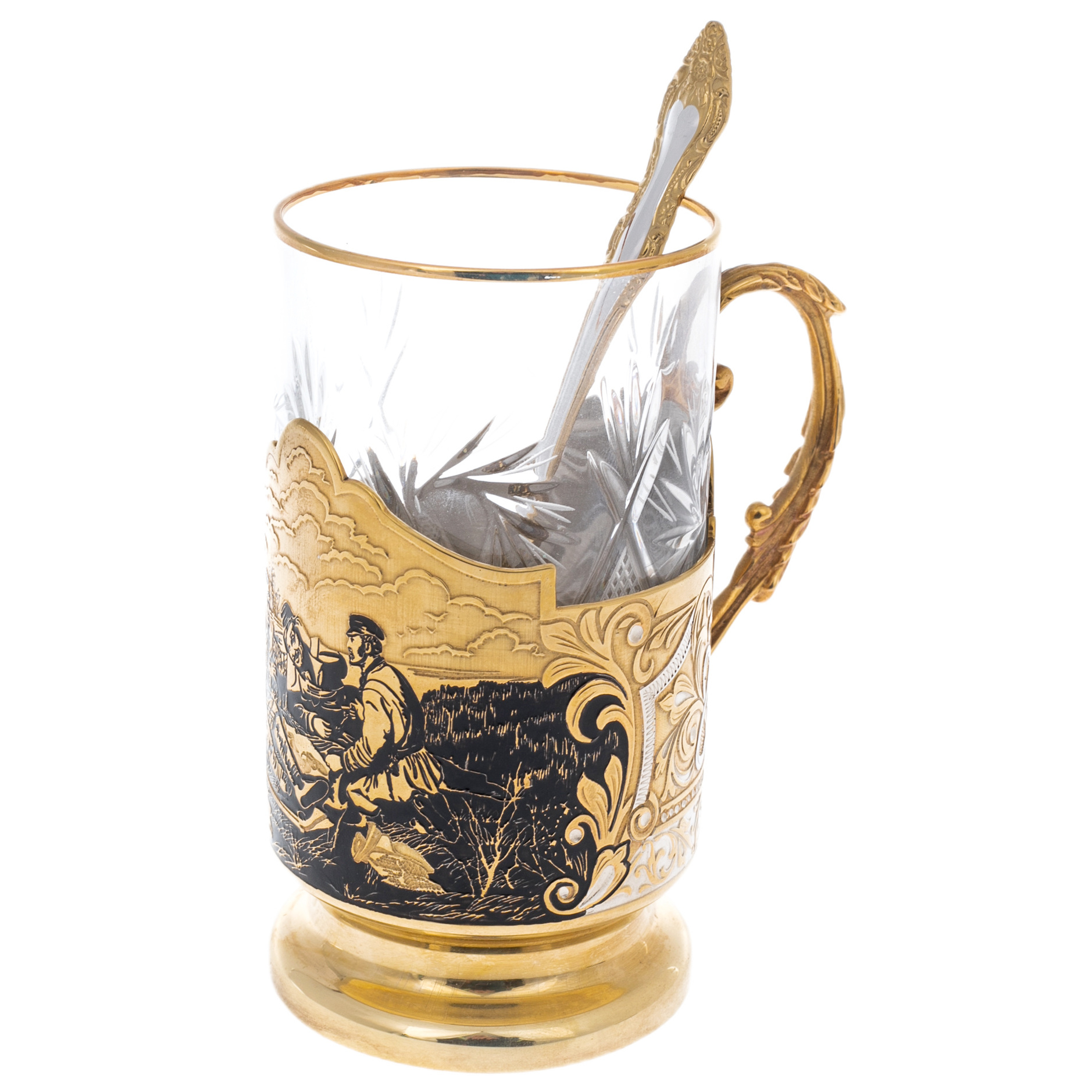 Подстаканник, покрытый позолотой, символизирует богатство и престиж. Он будет отличным подарком для человека, который ценит красоту и историю, а также для любителя охоты, который по достоинству оценит художественную работу и глубину заложенного в ней символизма.