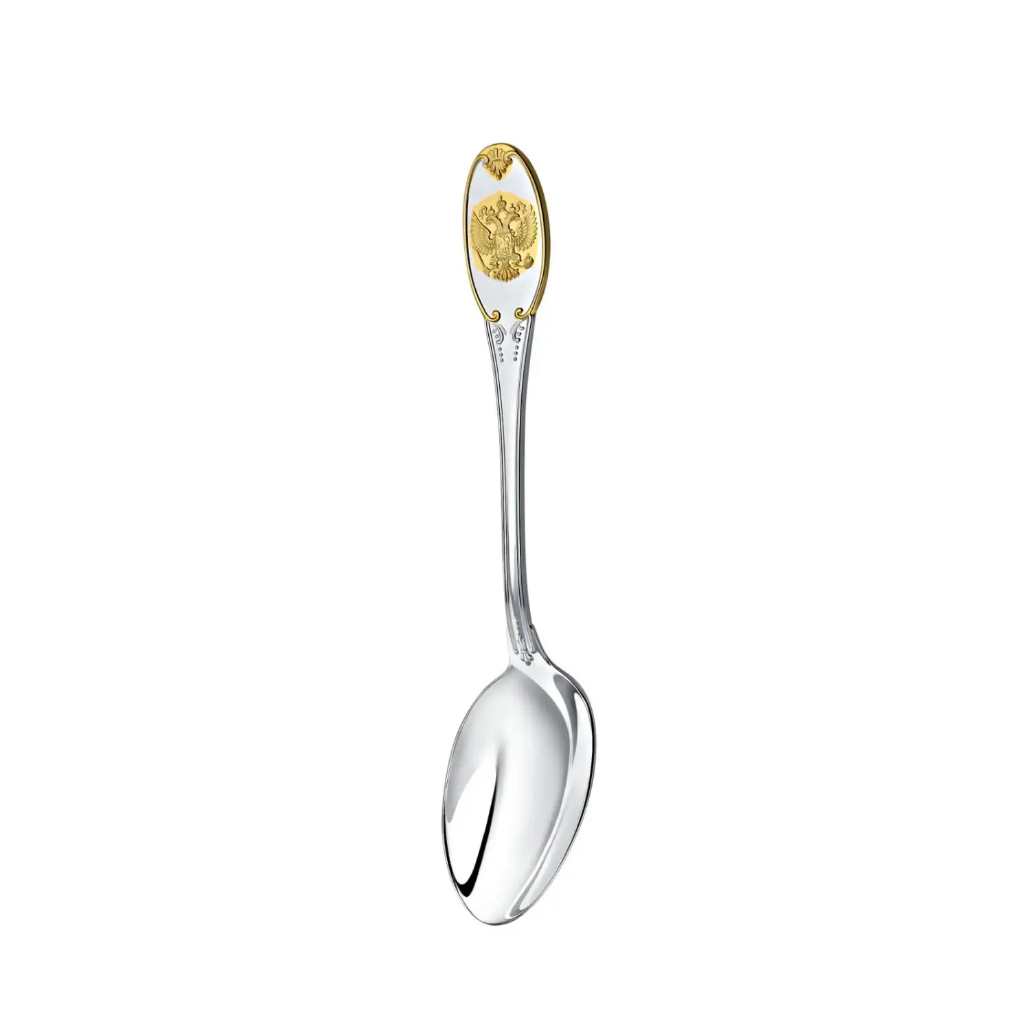 Серебряный набор для чая "Гербовый": ложка, стакан, подстаканник с позолотой