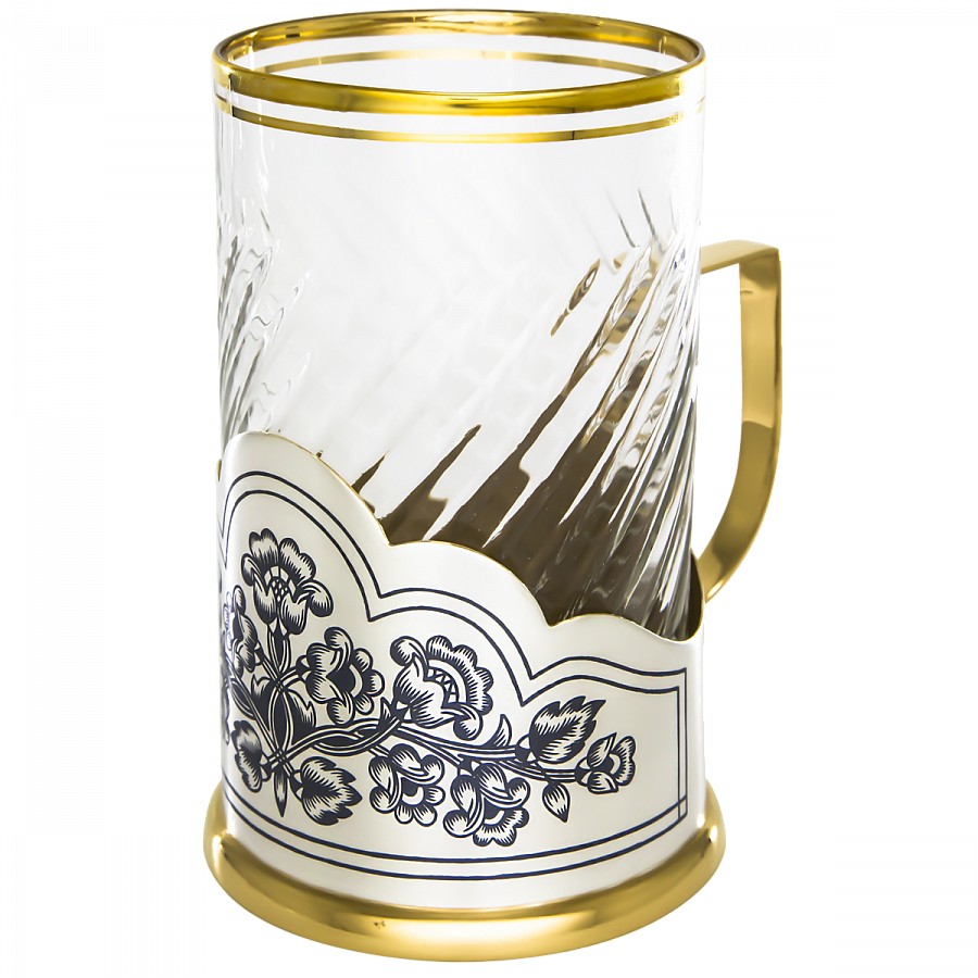 Серебряный подстаканник со стаканом с позолотой