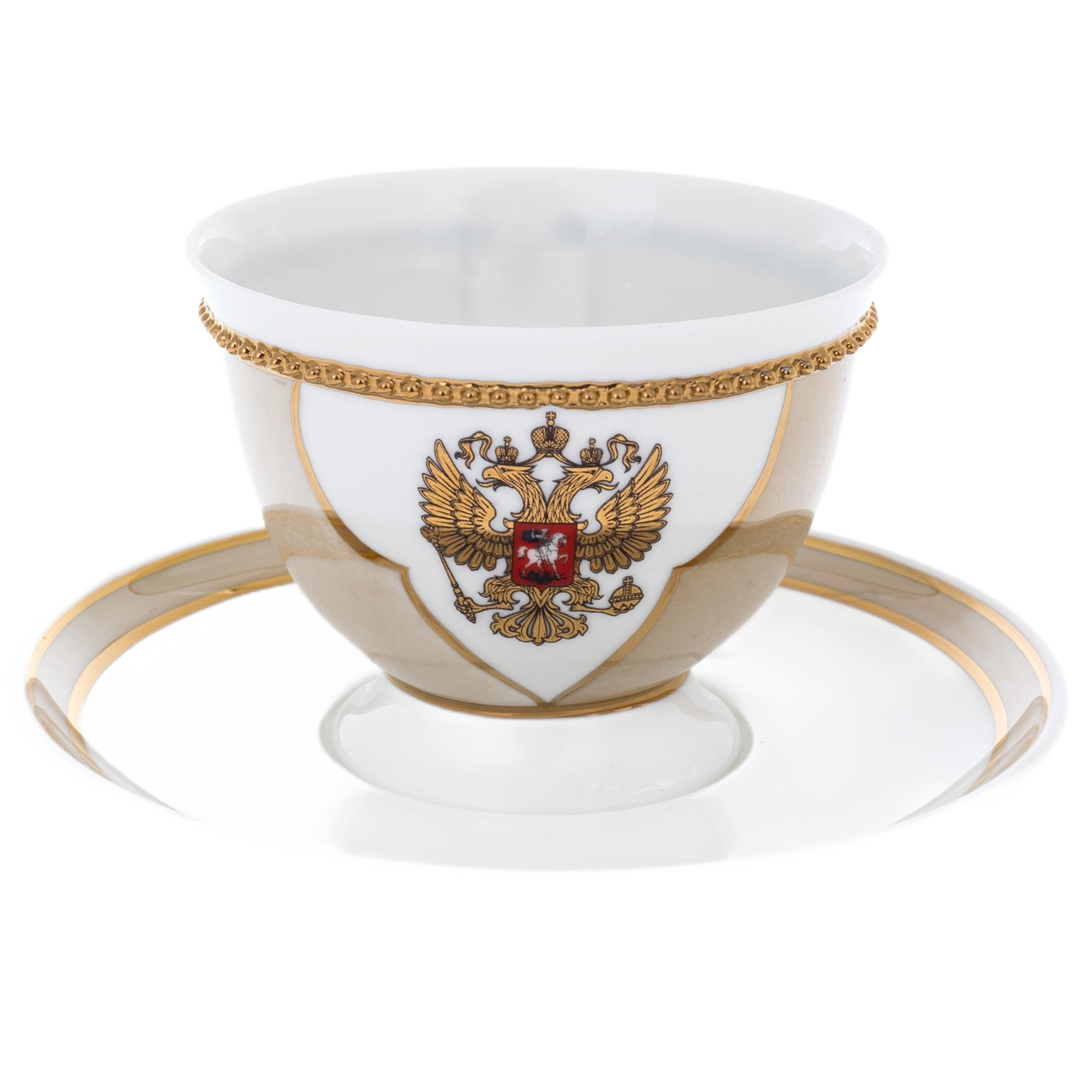 Самовар фарфоровый "Гербовый" бежевый, на 6 персон, в подарочной коробке