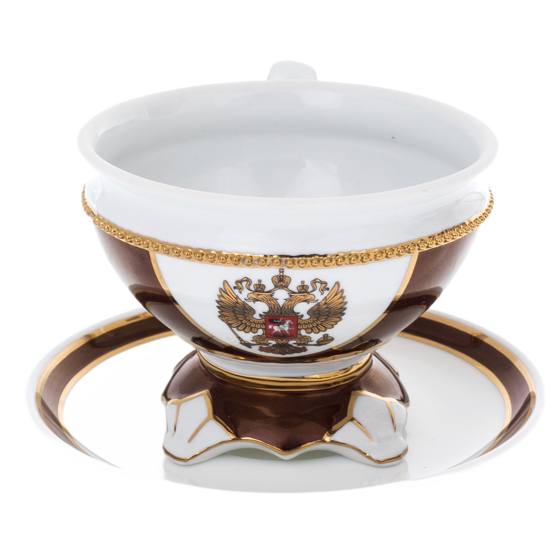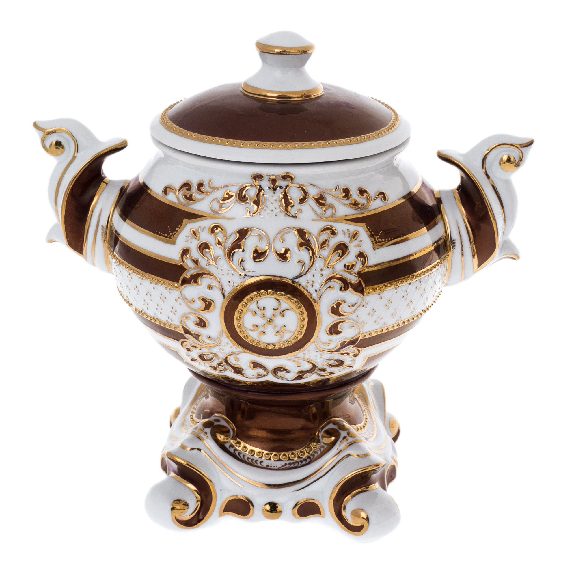 Самовар фарфоровый "Гербовый" бордовый, на 6 персон, 15 предметов, в подарочной коробке