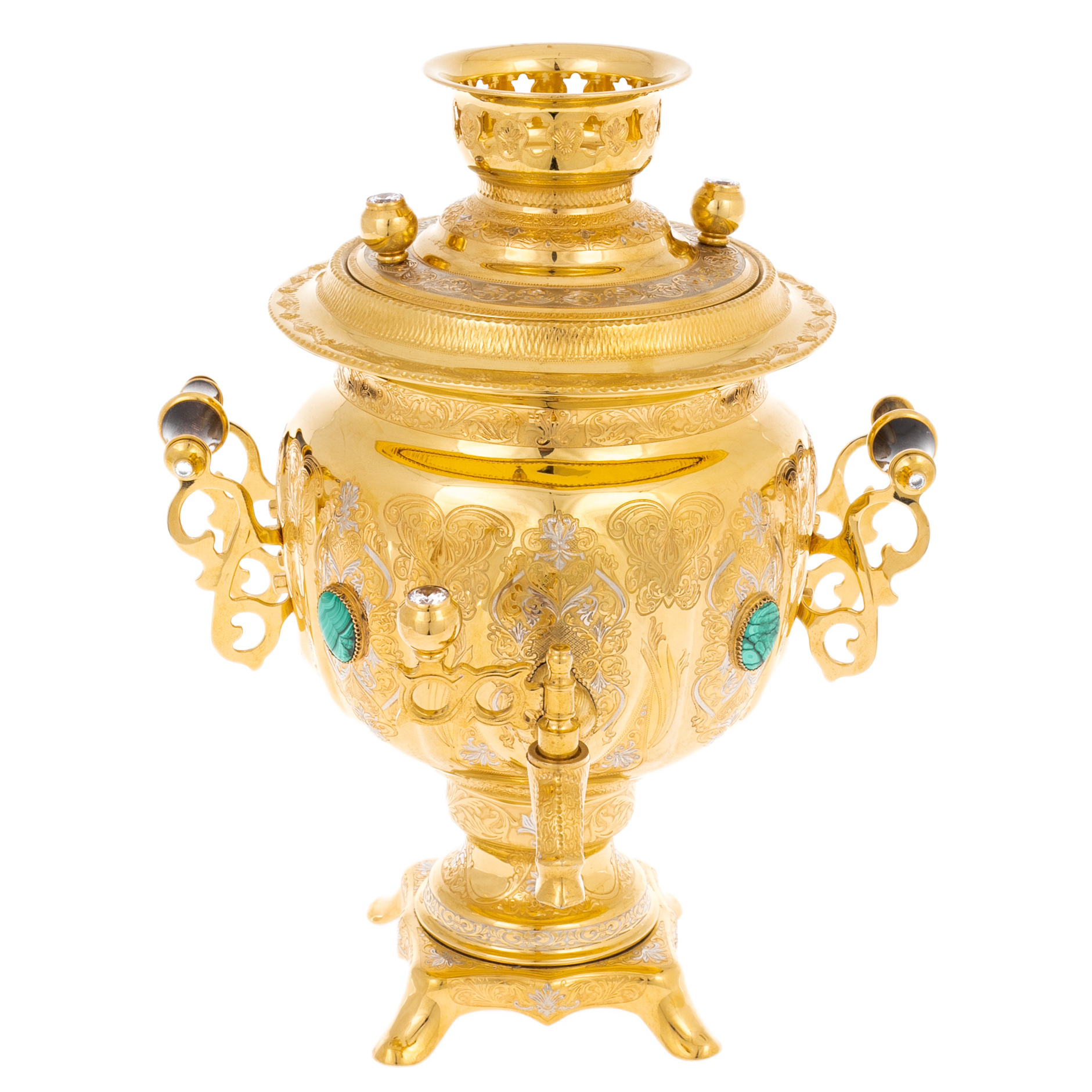 Самовар "Узорный" с малахитом, Златоуст