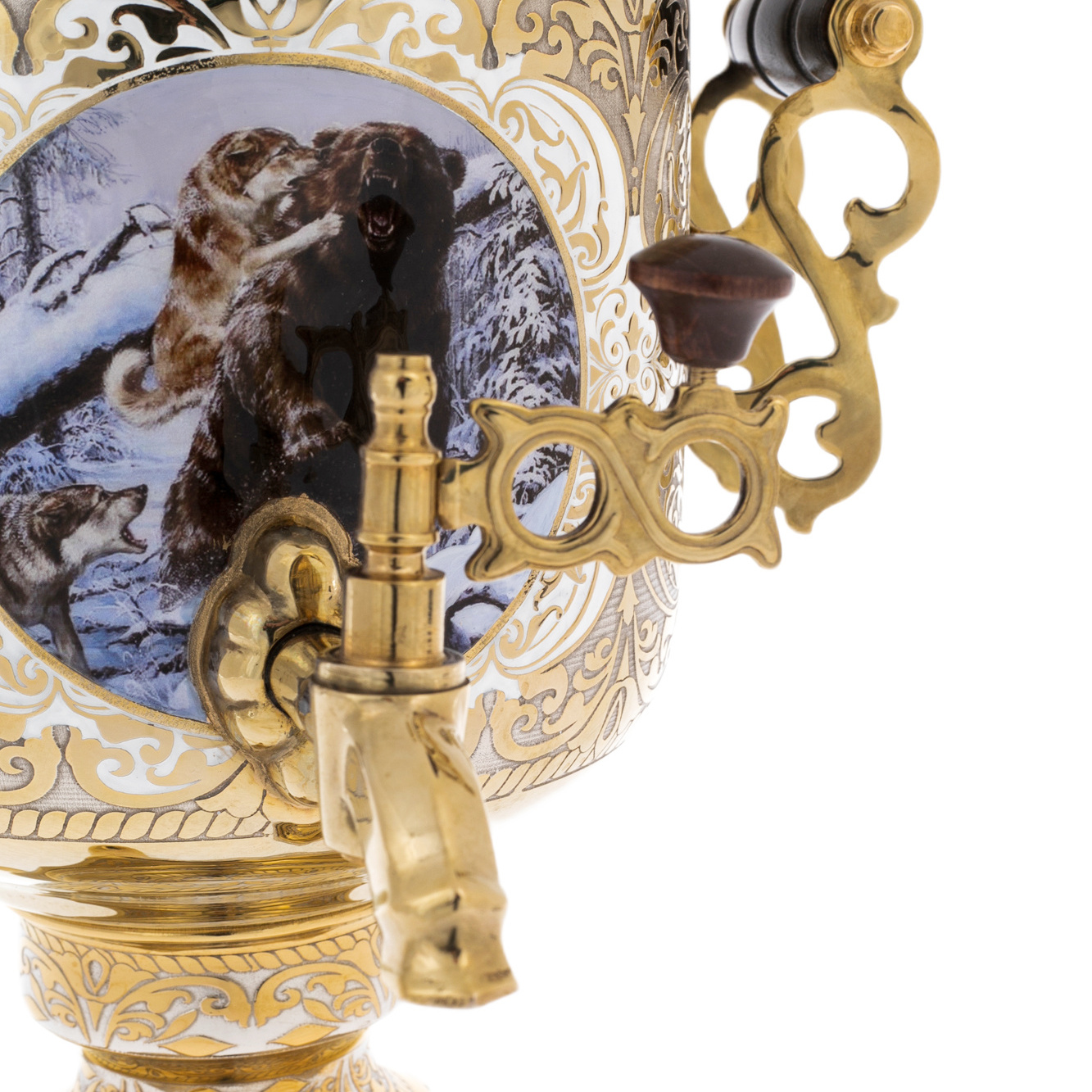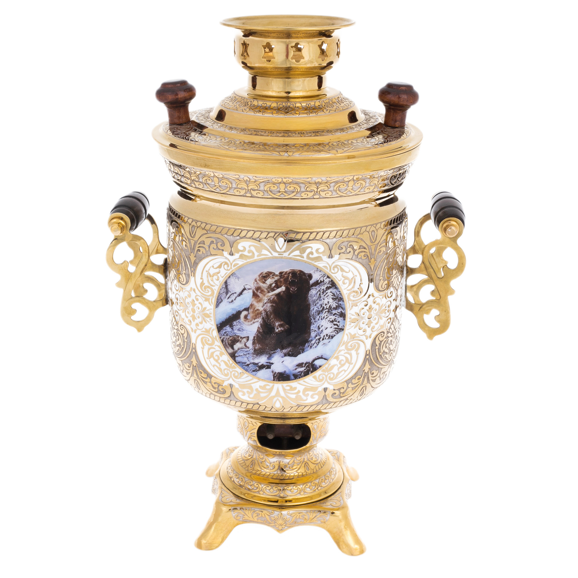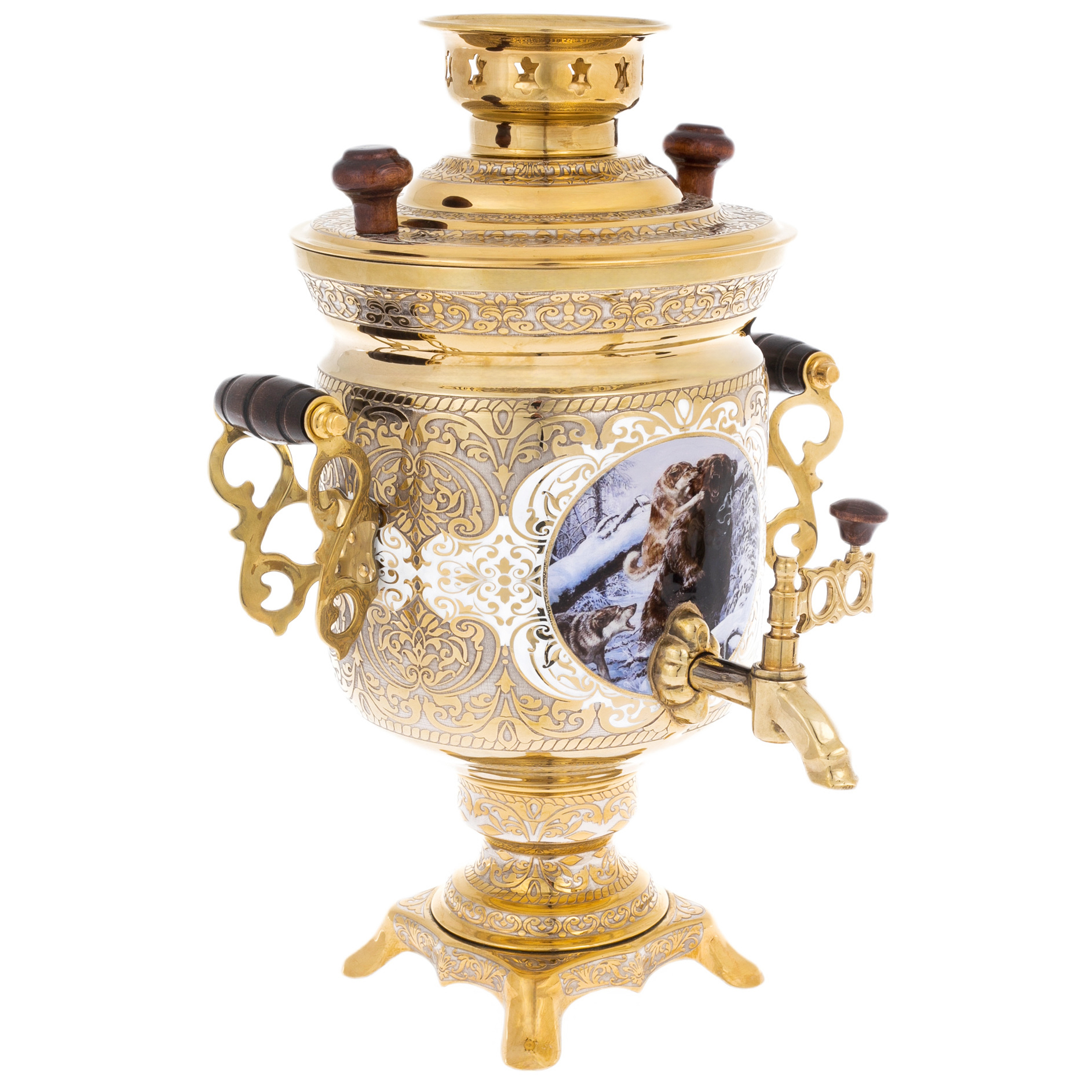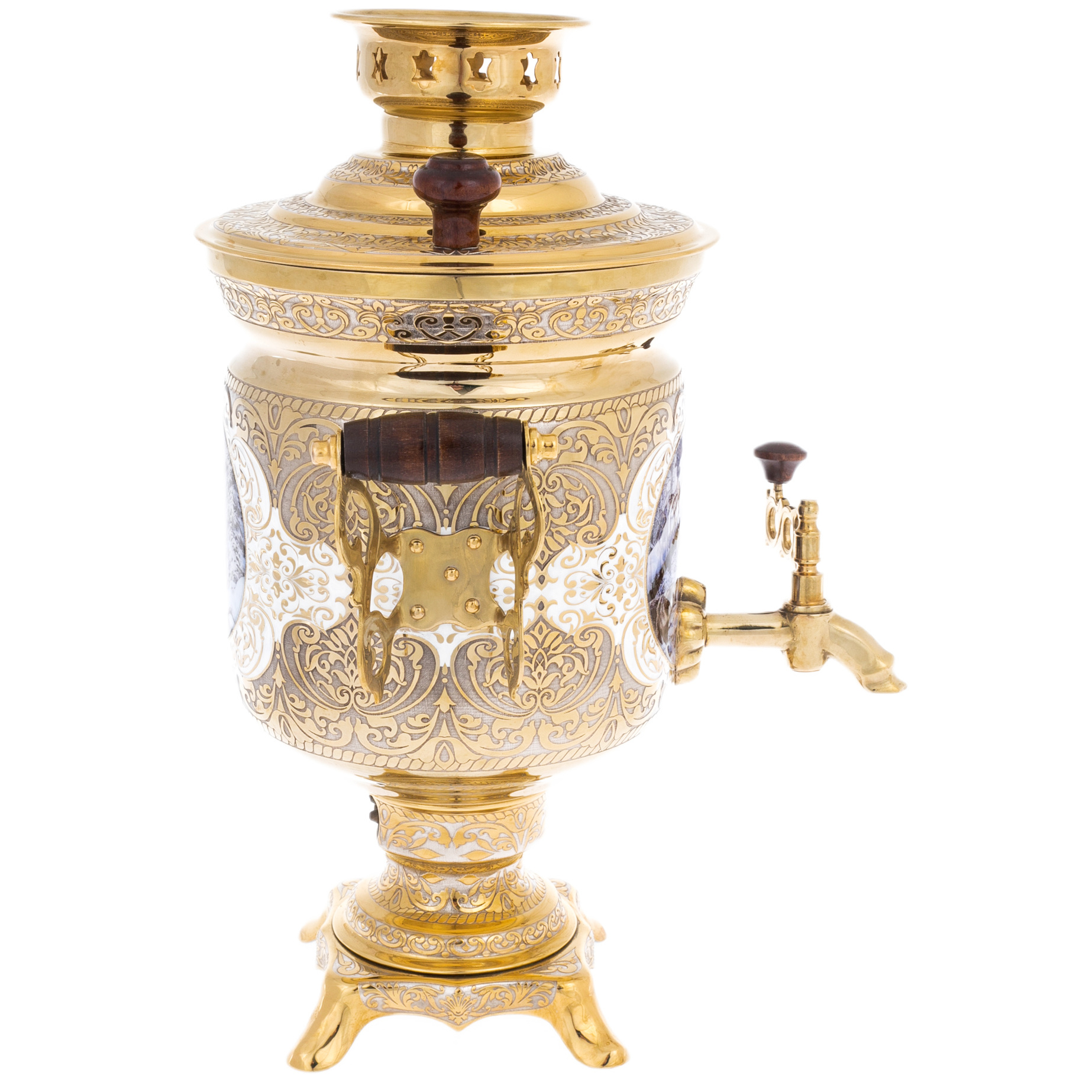 Златоустовский самовар — это не просто посуда для заваривания чая, это величественный символ традиций, роскоши и утончённого вкуса. Его латунный корпус, покрытый тончайшим орнаментом, созданным методом гравировки, словно оживает, играя на свету золотистыми оттенками. Каждая линия, каждое завитое переплетение на его поверхности представляет собой искусство в самом высоком его проявлении.