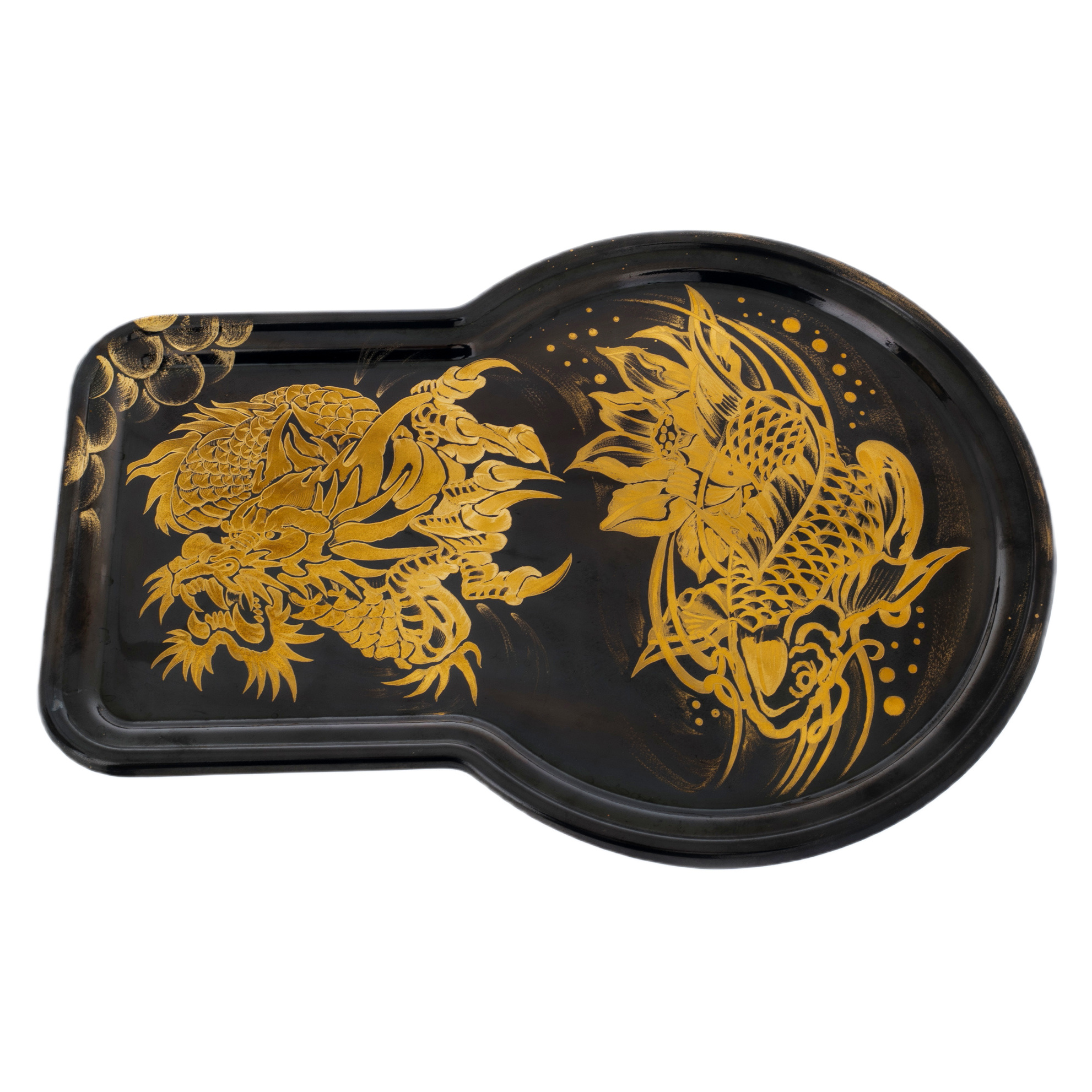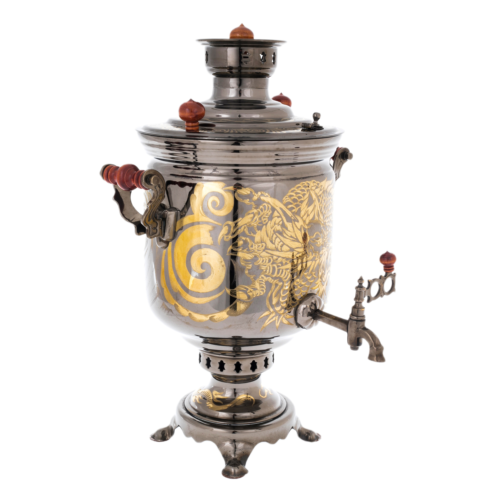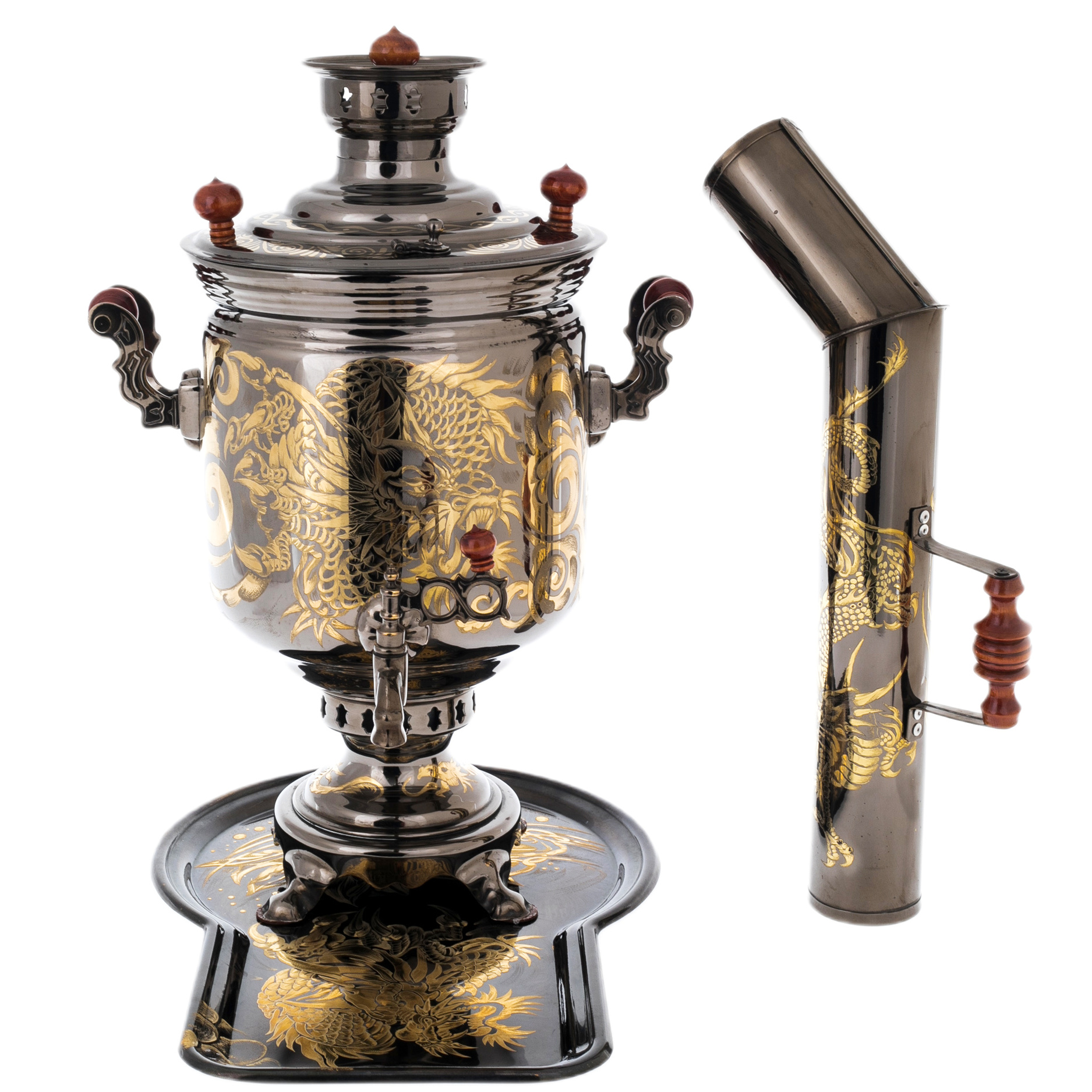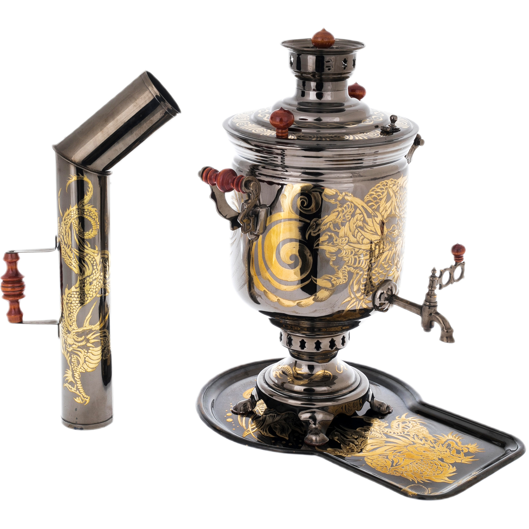 Самовар комбинированный "Дракон" с трубой и подносом, черно-золотой