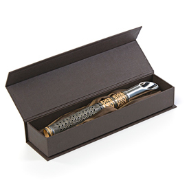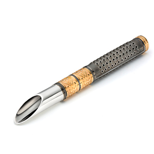 Оригинальный заварник для листового чая выполнен вручную в виде серебряной трубки-сита. В нижней части трубки находится отверстие для промывки. Трубкой удобно размешивать настоявшийся чай и сахар по вкусу.