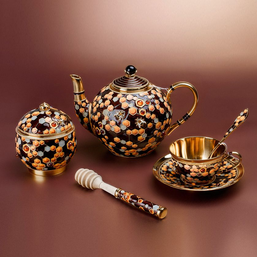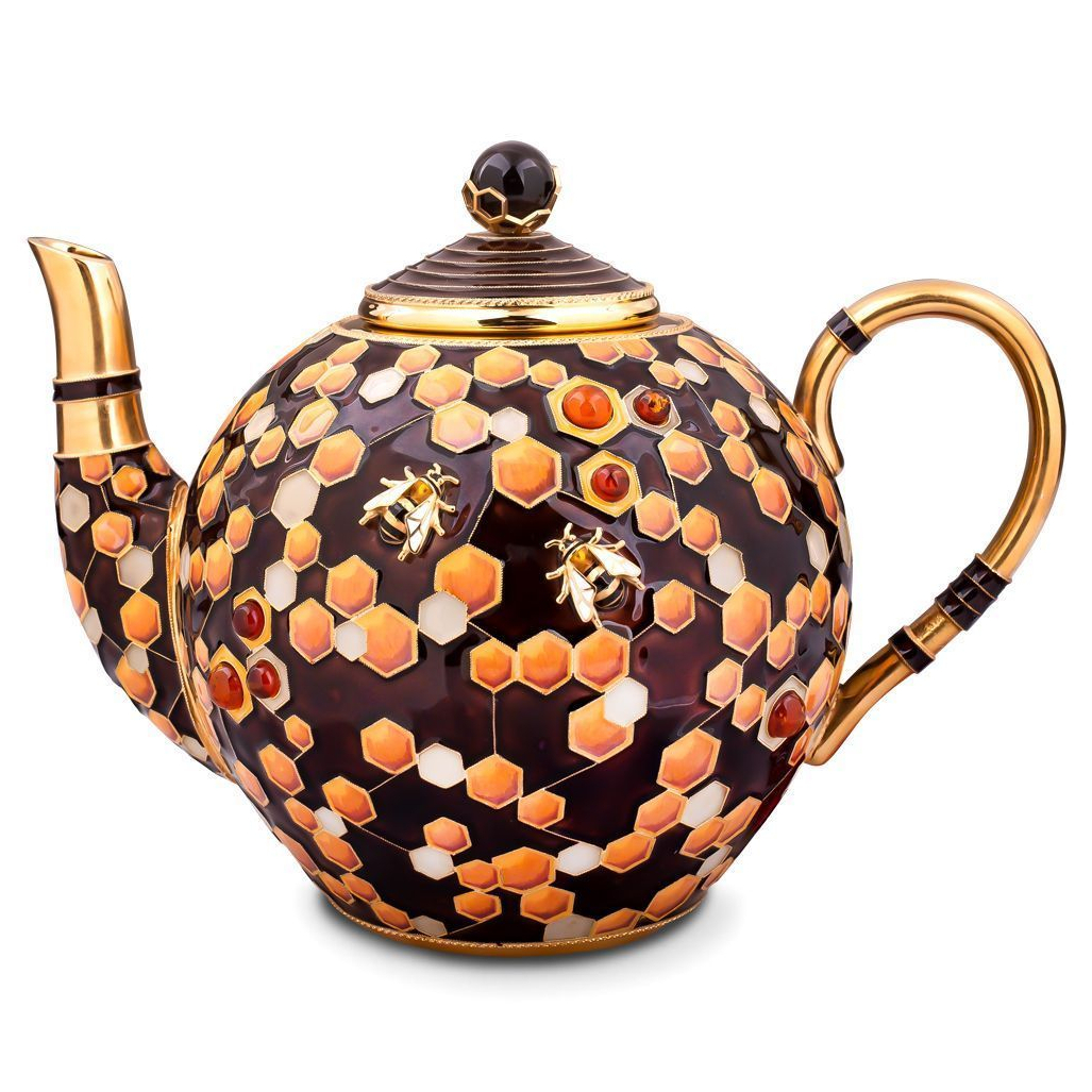 Серебряный чайник "Шедевры перегородчатой эмали" с янтарем и морионом
