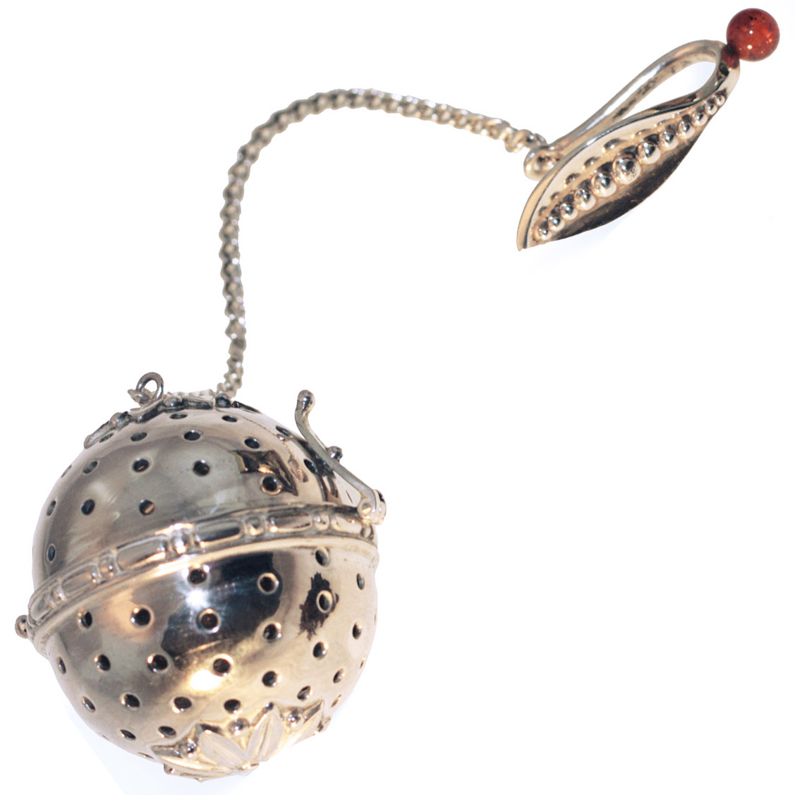 Чайное ситечко из серебра с янтарем