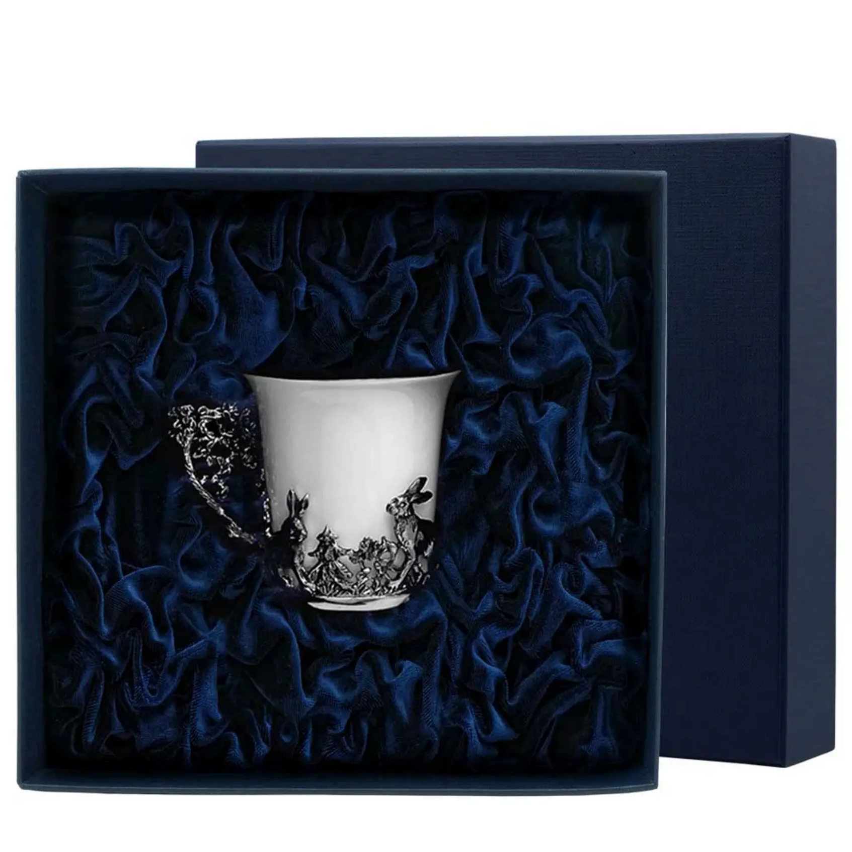 Чашка кофейная из серебра и фарфора "Зайцы" с чернением, на 1 персону
