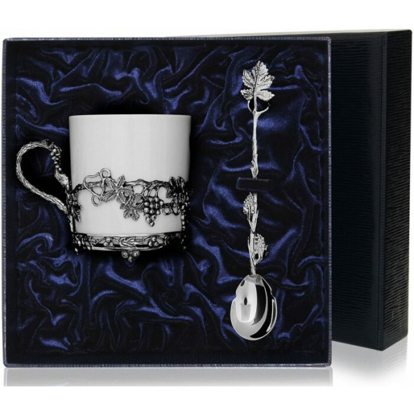 АргентаНабор кофейных чашек из серебра "Виноград" на 2 персоны, с ложкамиНабор кофейных чашек из серебра "Виноград" на 2 персоны, с ложкамиСтоловое серебро – привилегия избранных, признак аристократизма и роскоши. Сияние драгоценного металла отражает изысканный вкус хозяина, облагораживает не только праздничный стол, но и весь окружающий интерьер.