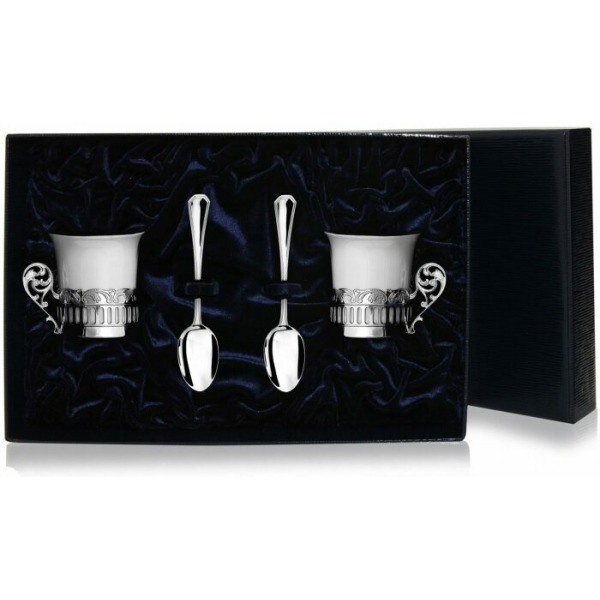 Набор кофейных чашек из серебра "Богема" на 2 персоны, с ложками
