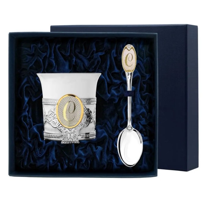 Серебряный набор для кофе "Август Октавиан": ложка с буквой С, чашка
