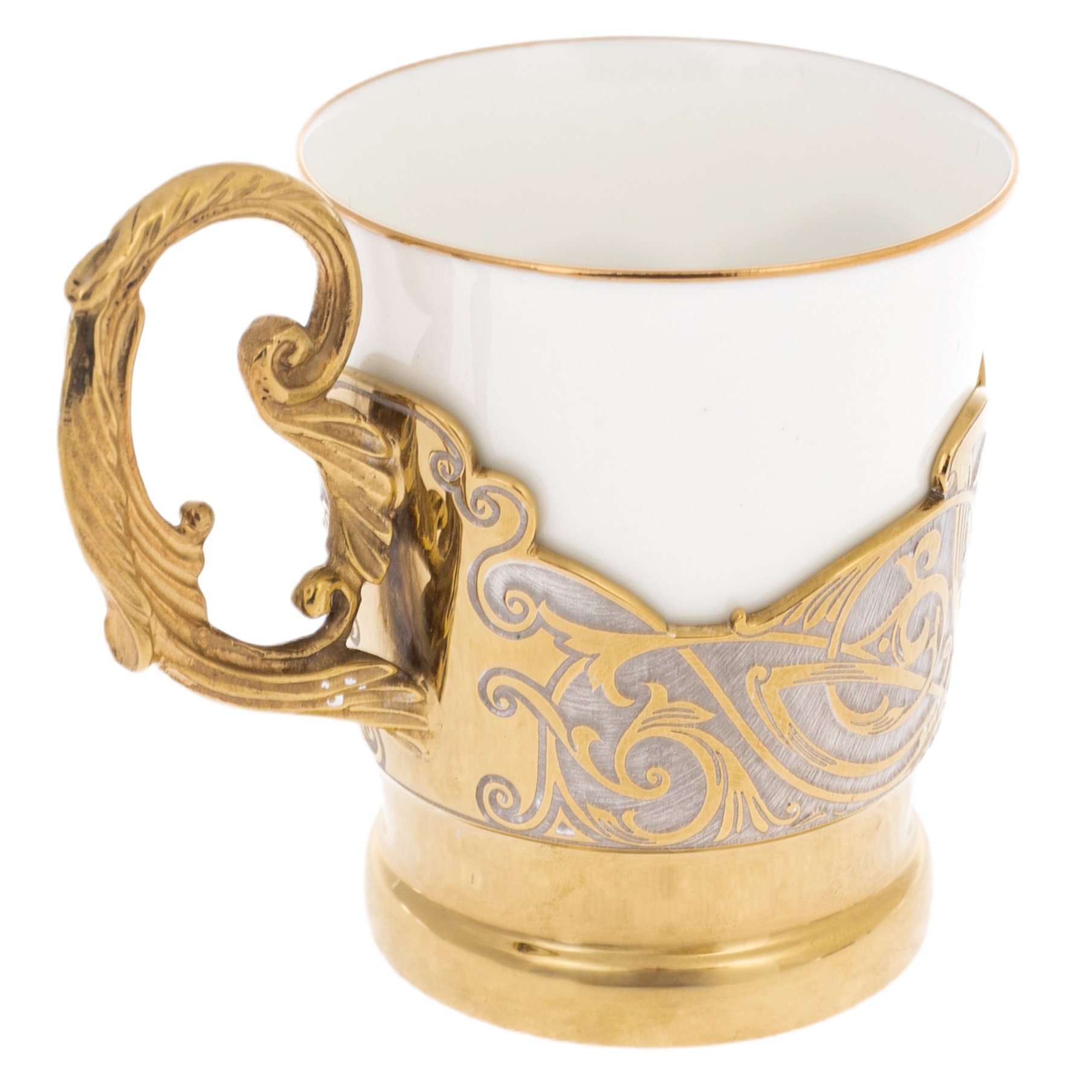 Ручка чашки, выполненная в виде изысканной завитушки, создает иллюзию легкости и воздушности. Она напоминает о царских традициях, когда каждый предмет, даже самый простой, становился воплощением роскоши.