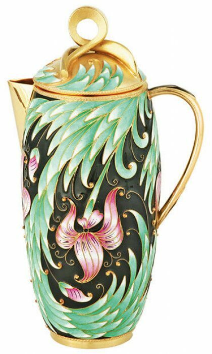 Кофейник из кофейного сервиза "Ирис" с золочением (серебро, эмаль)