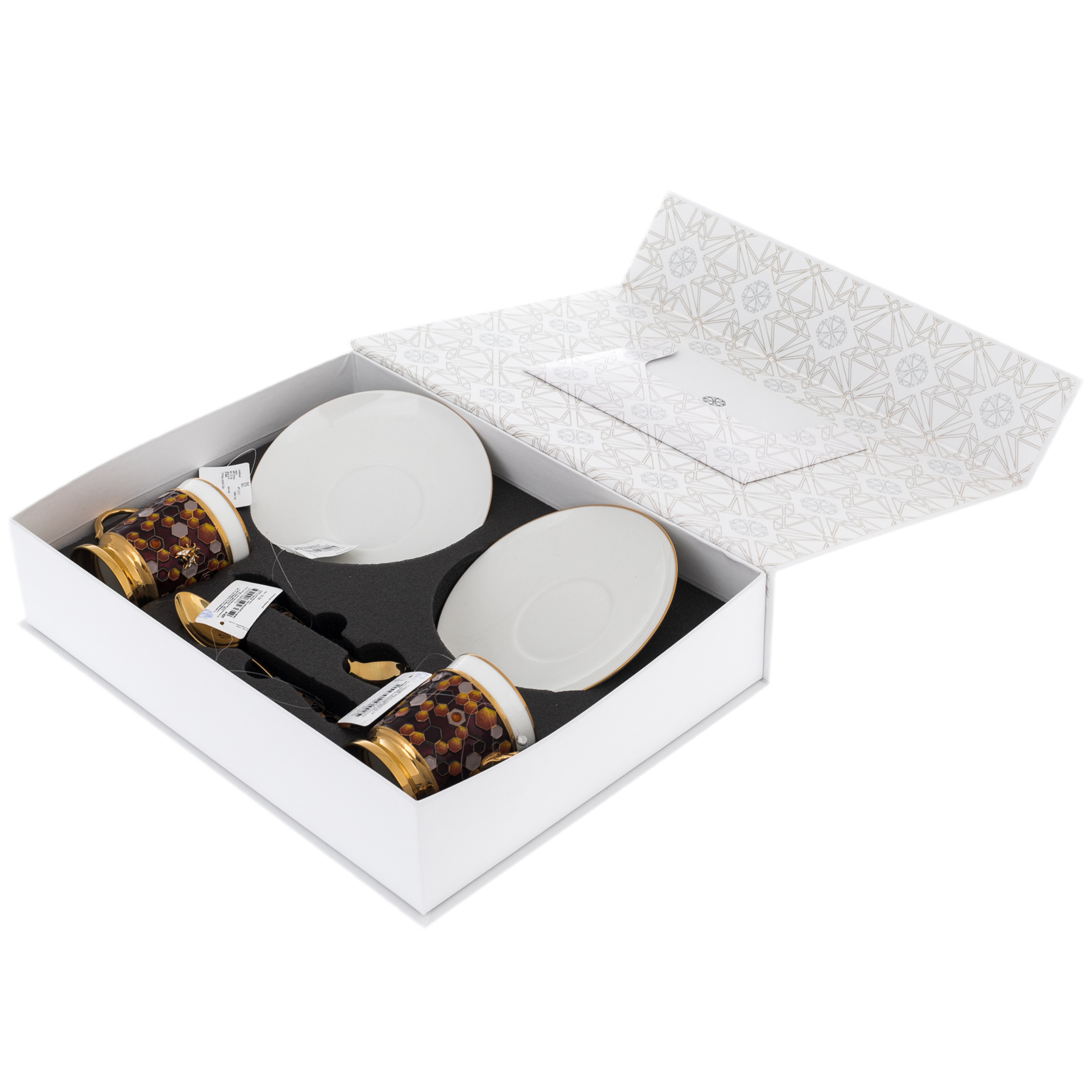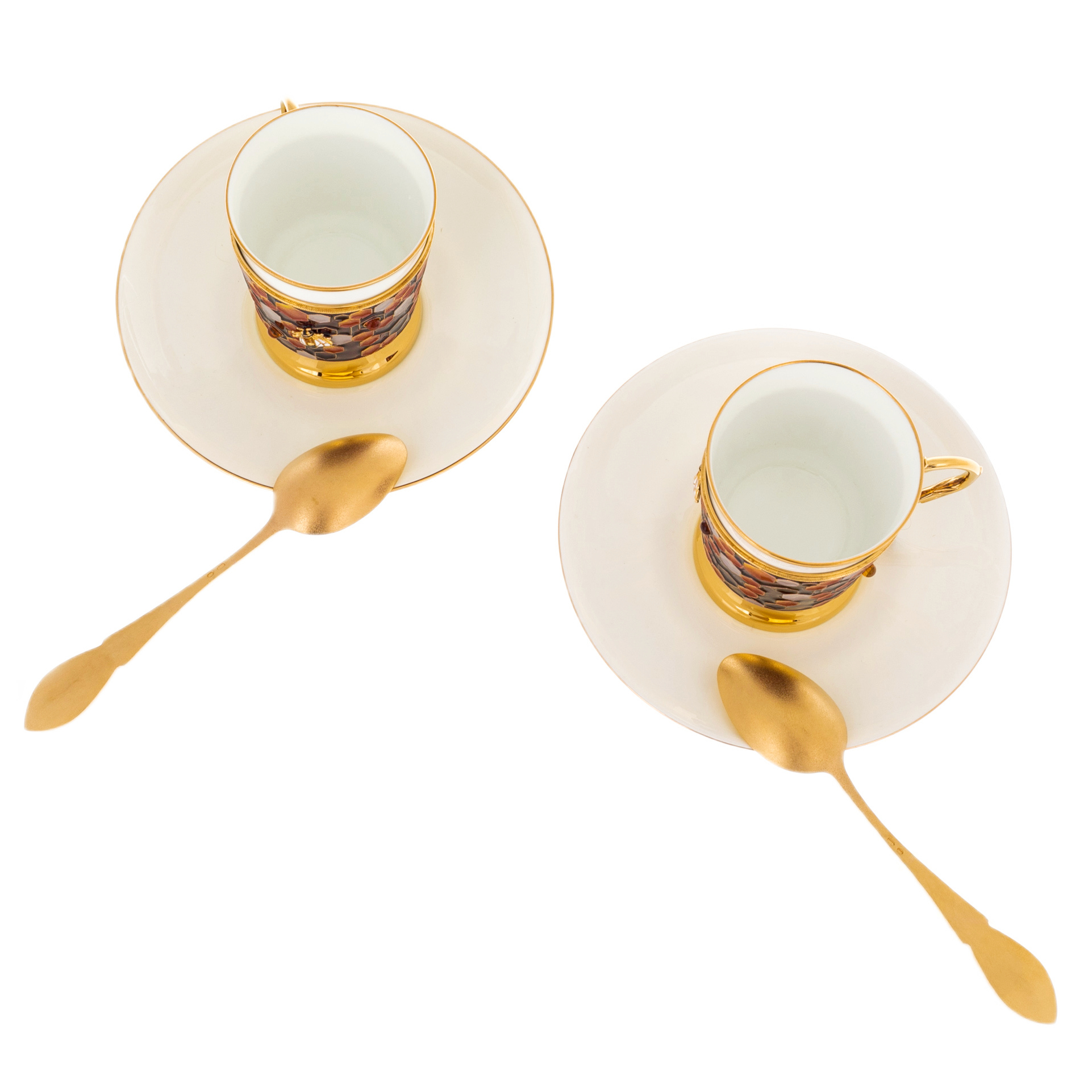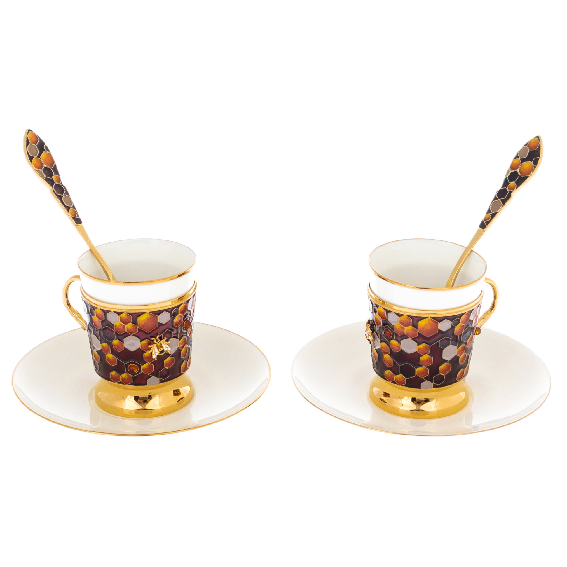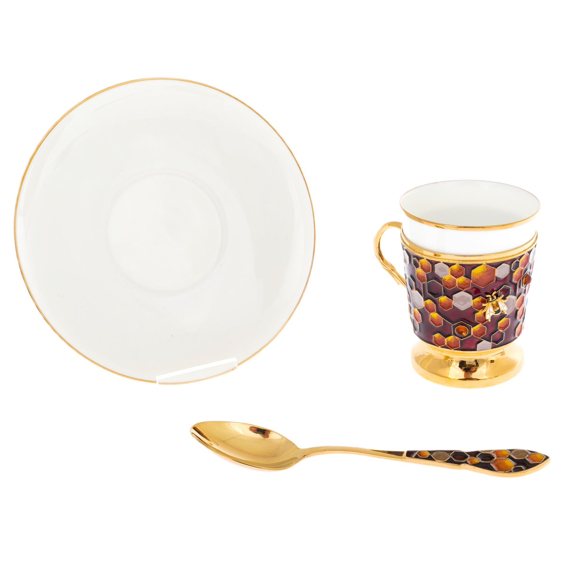 Кофейный набор из серебра и меди с янтарем "Пасека" на 2 персоны