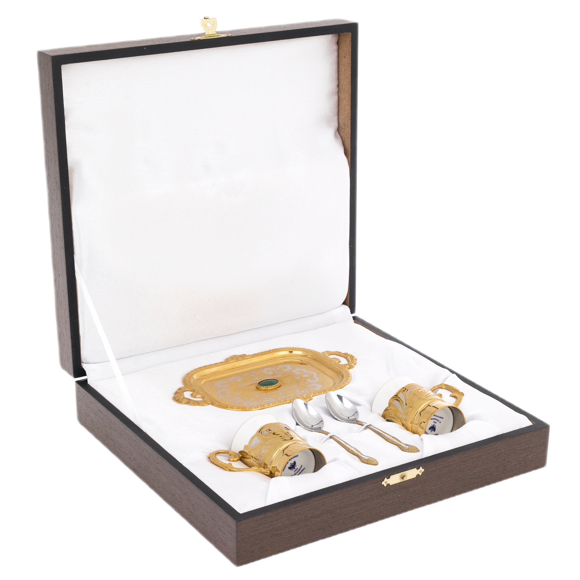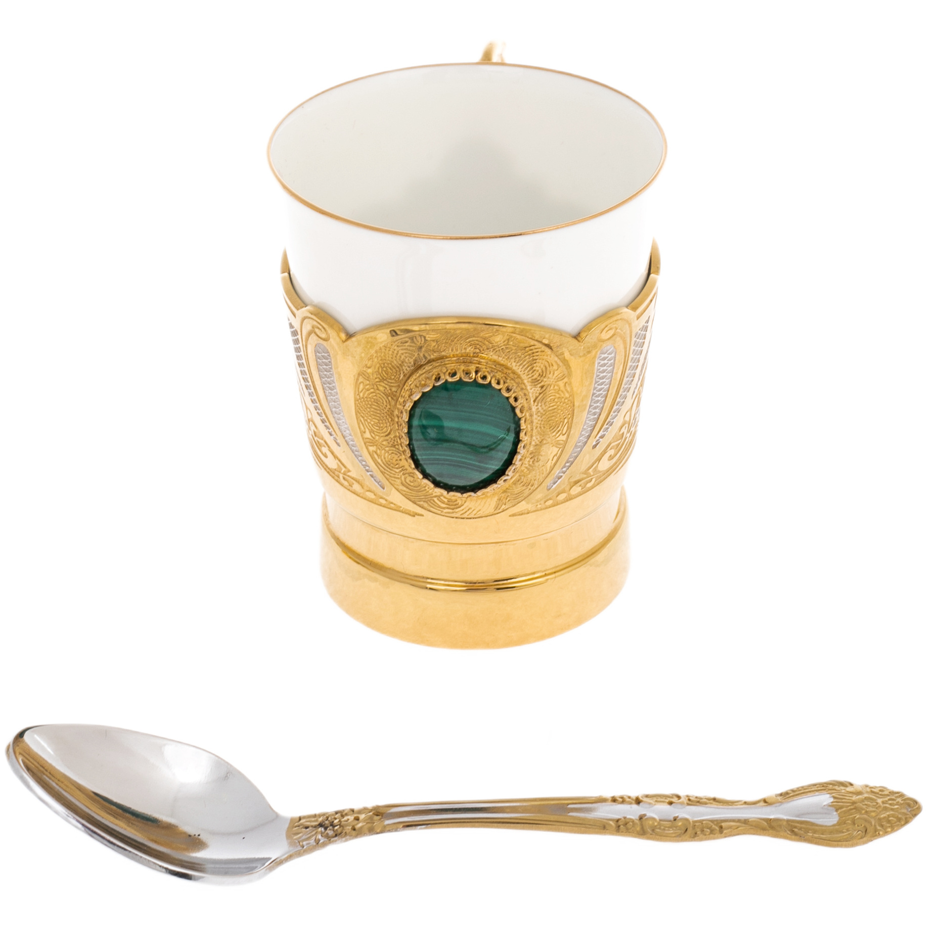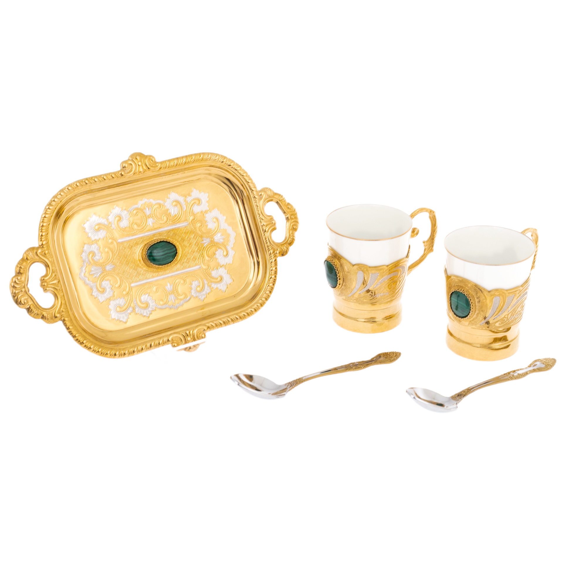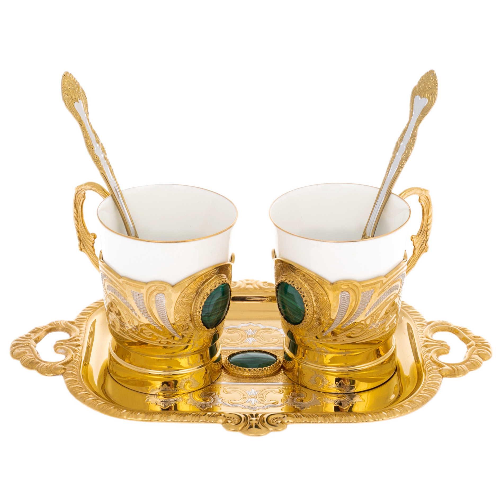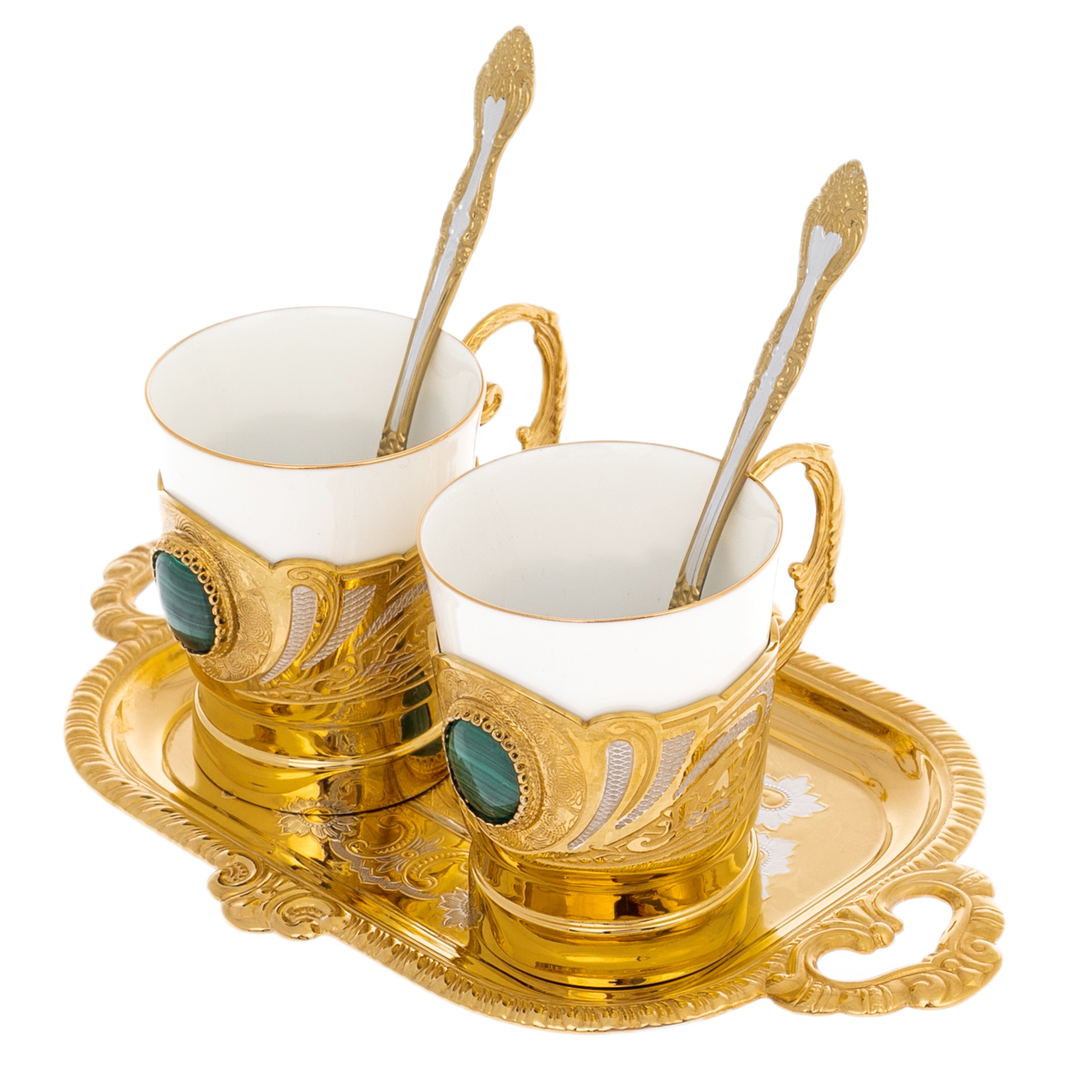 Набор для кофе "Двойной" с малахитом, на 2 персоны, Златоуст