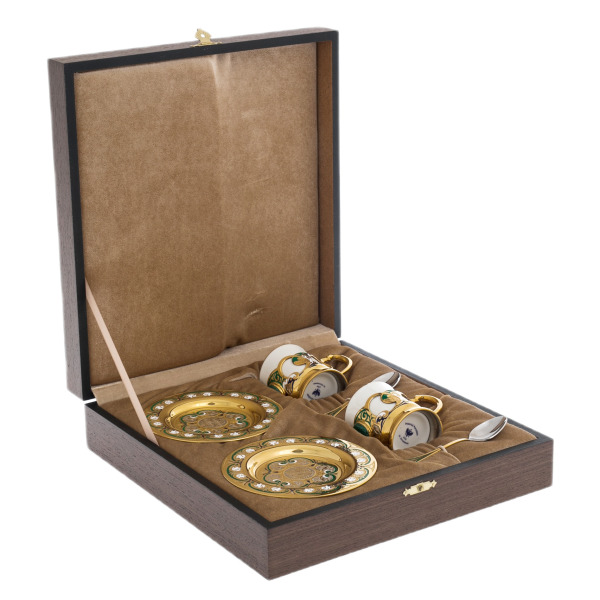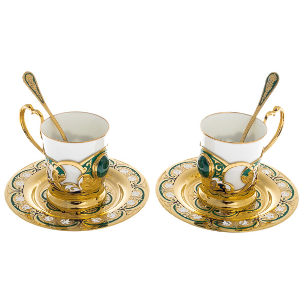 Набор для кофе "Изумрудный" — это не просто утварь для утреннего ритуала, это символ вашего статуса и изысканного вкуса. Эти изящные чашки словно созданы для тех, кто привык наслаждаться только лучшим, для тех, кто умеет ценить момент и силу традиций. Каждая деталь набора рассказывает свою историю величия и роскоши.