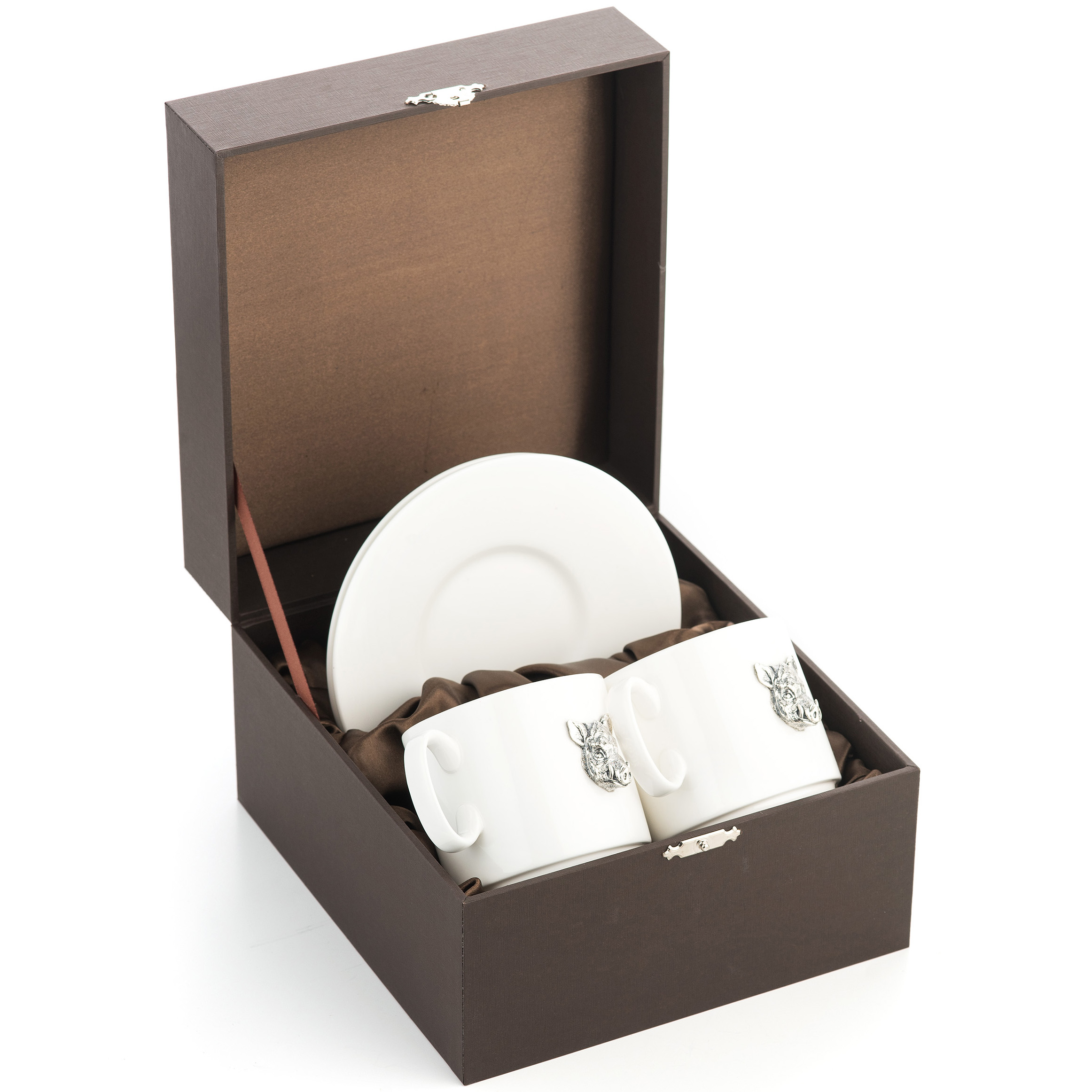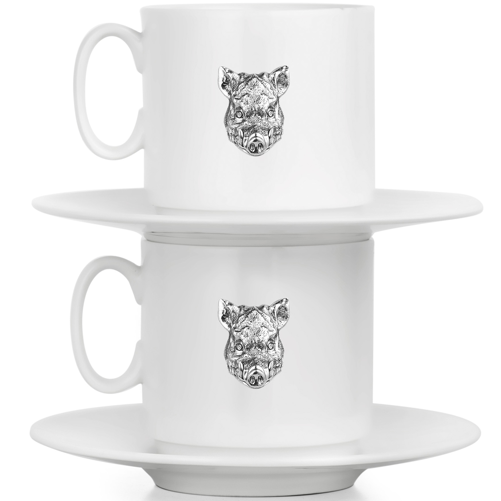 Набор фарфоровых кофейных чашек "Кабаны" на 2 персоны