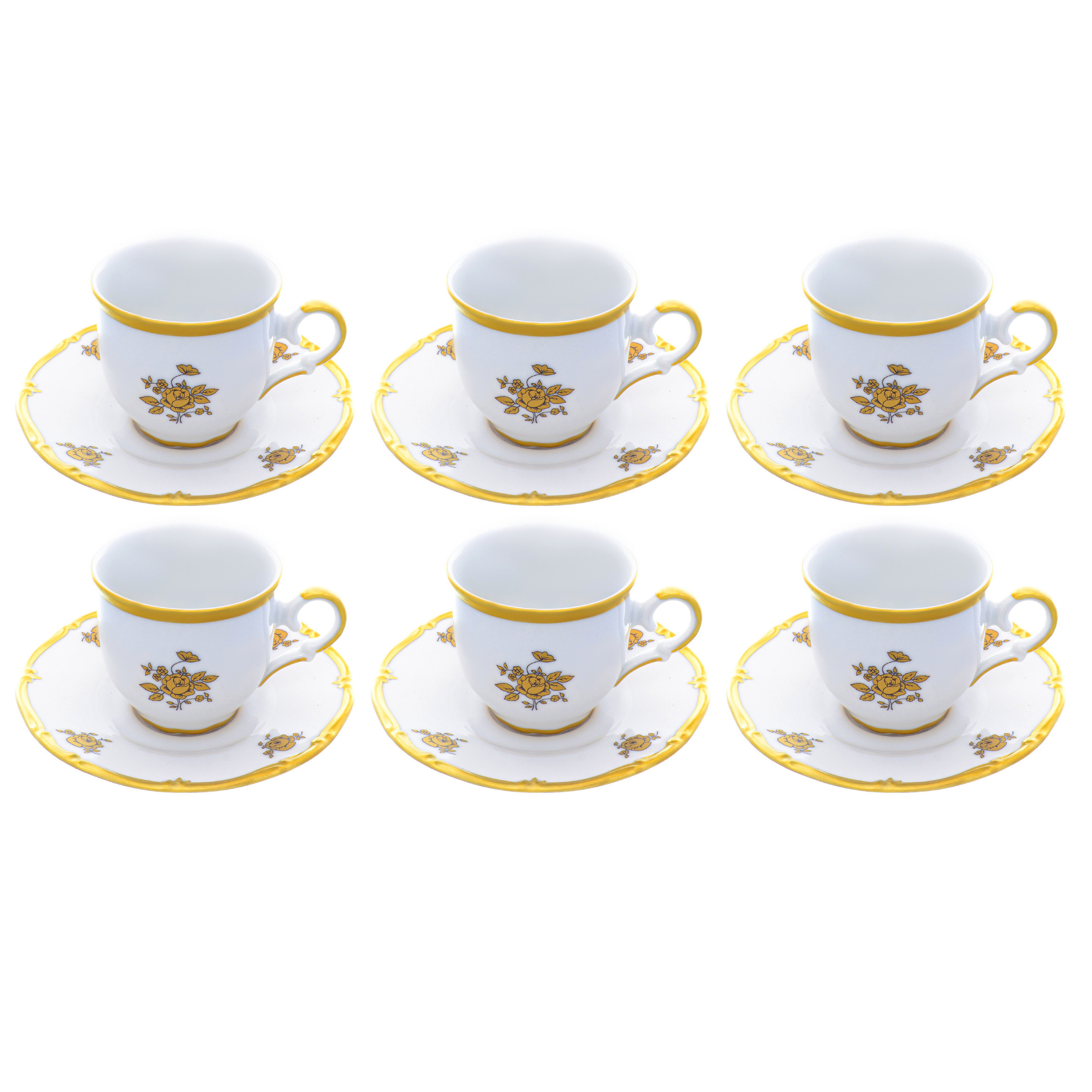 Набор кофейных пар из фарфора "Queen's Crown. Золотая роза" на 6 персон