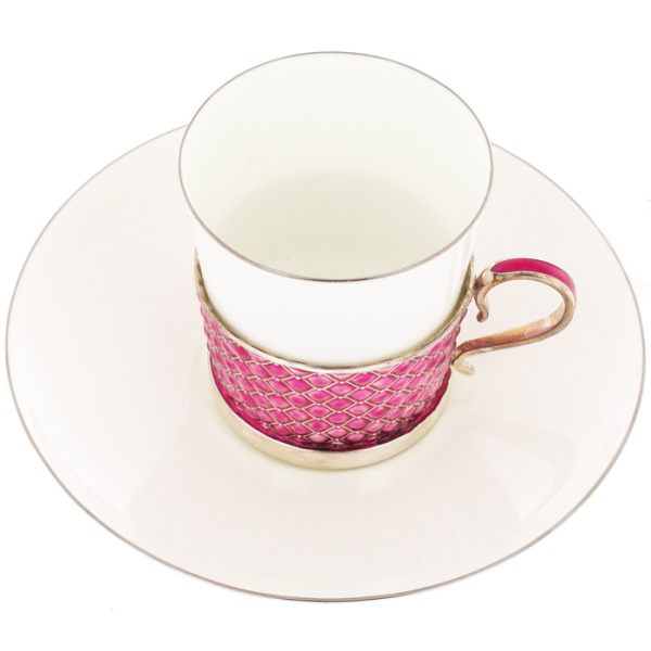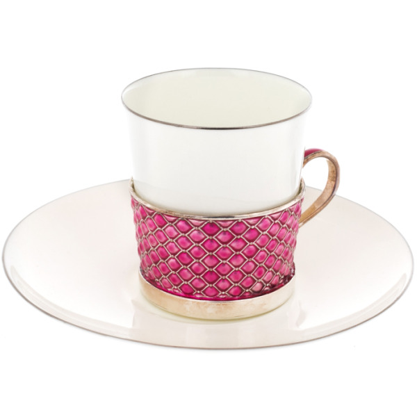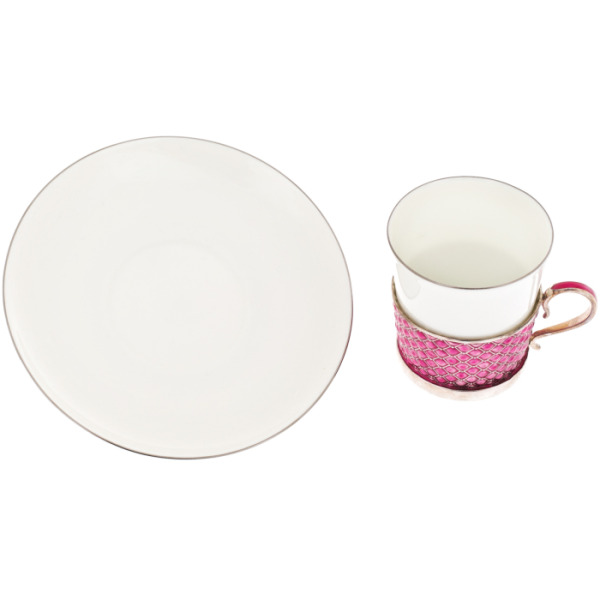 Набор кофейный из серебра и меди с фианитом, лиловый