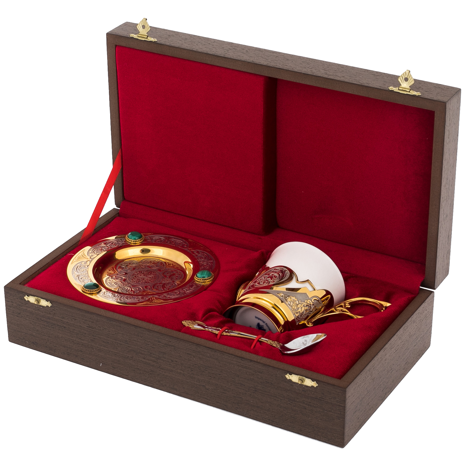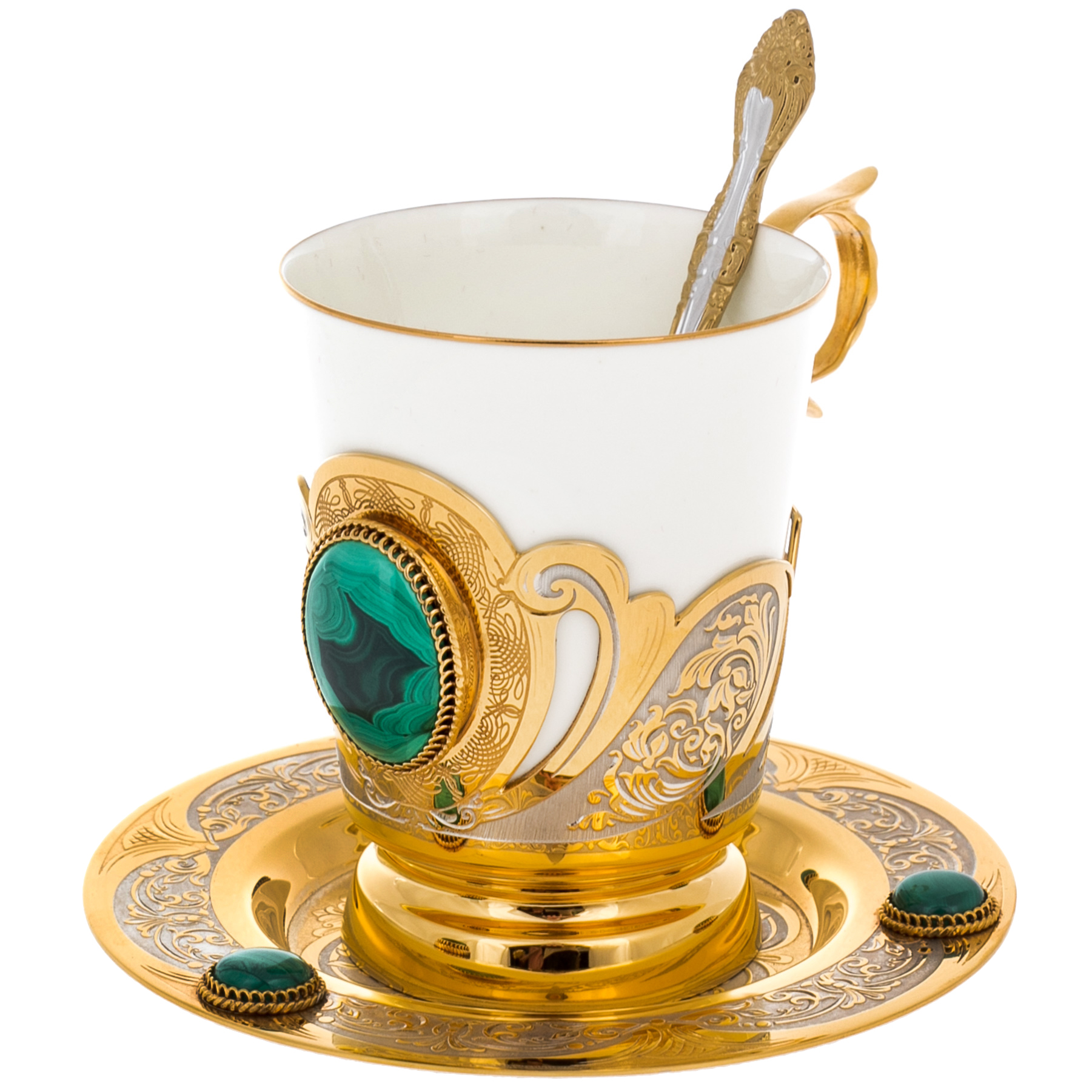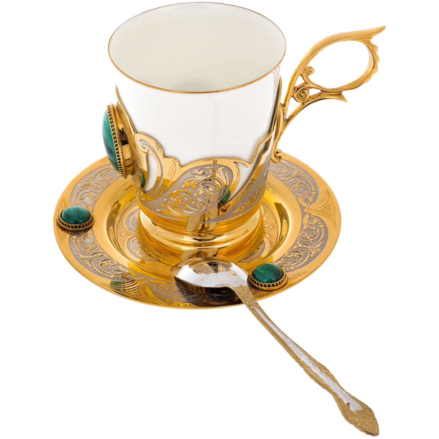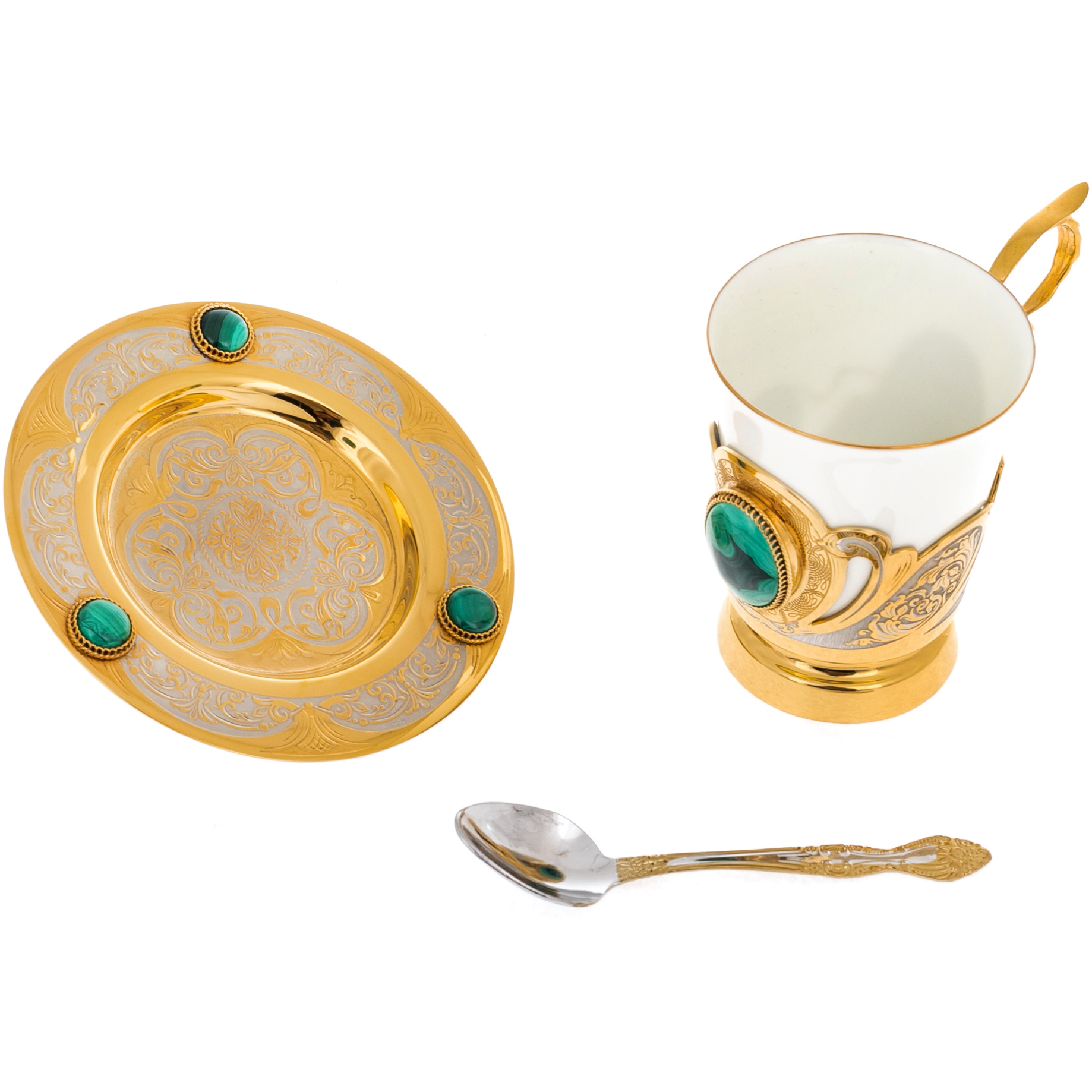 Набор кофейный "Утро" с малахитом, на 1 персону, Златоуст