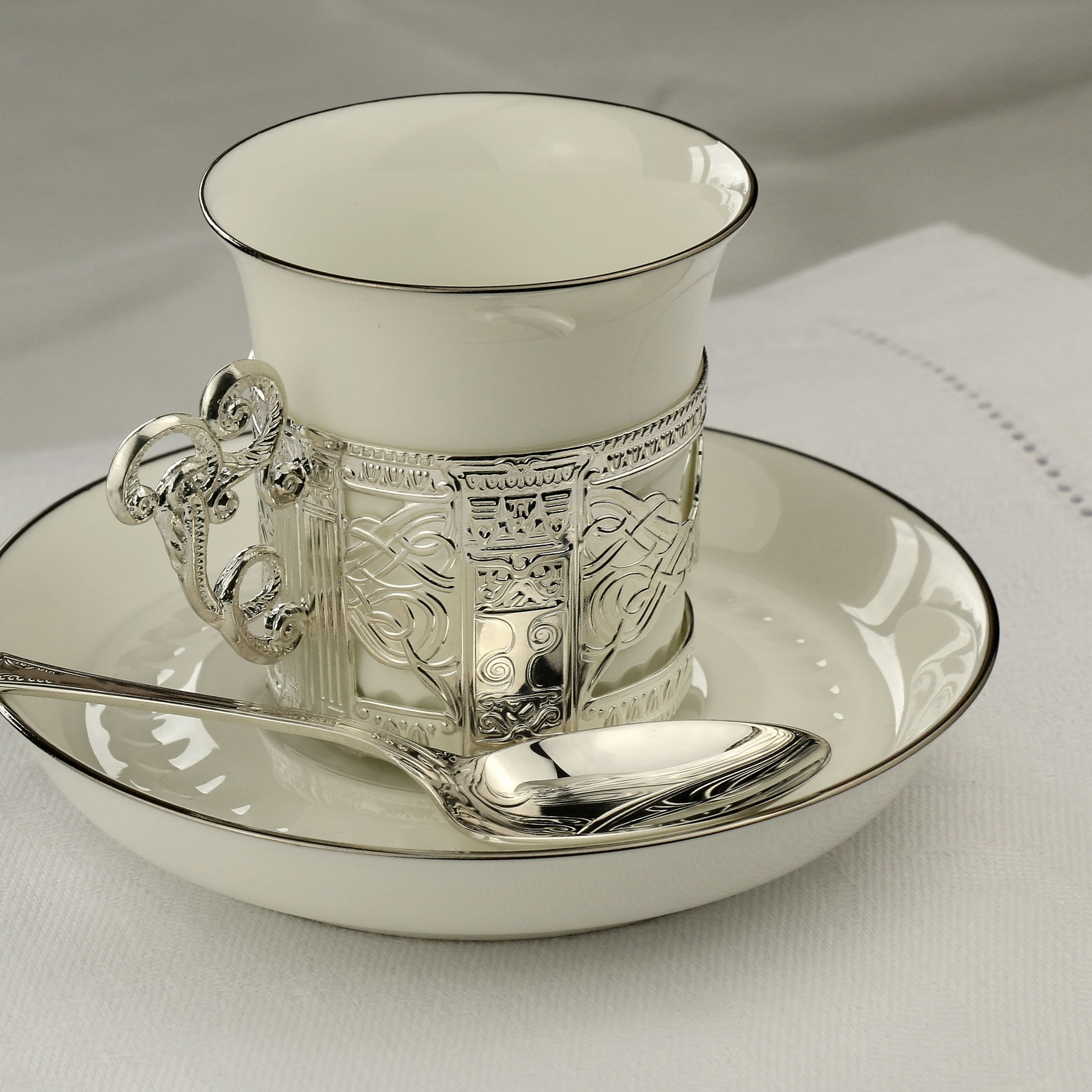 Серебряный набор кофейных чашек "Август Октавиан": блюдце, чашка
