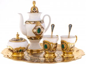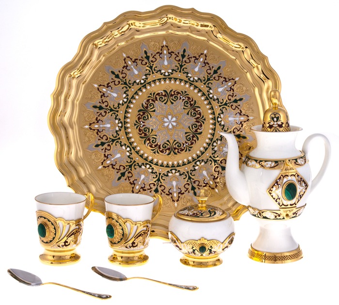 Кофейный сервиз "Боярыня" на 2 персоны, с малахитом, Златоуст