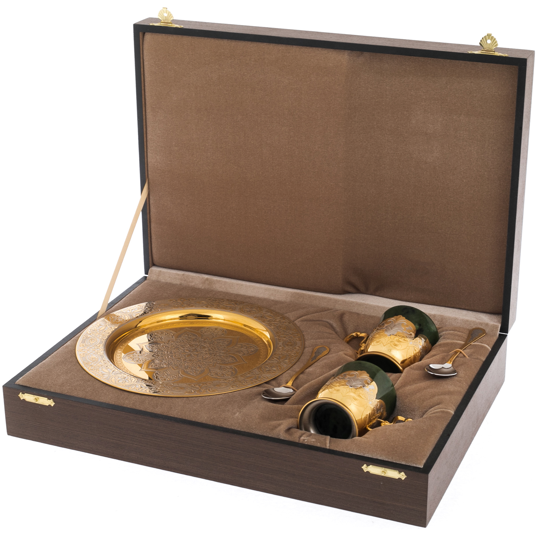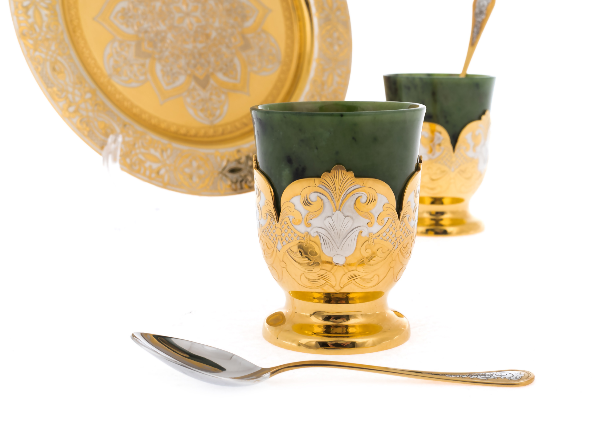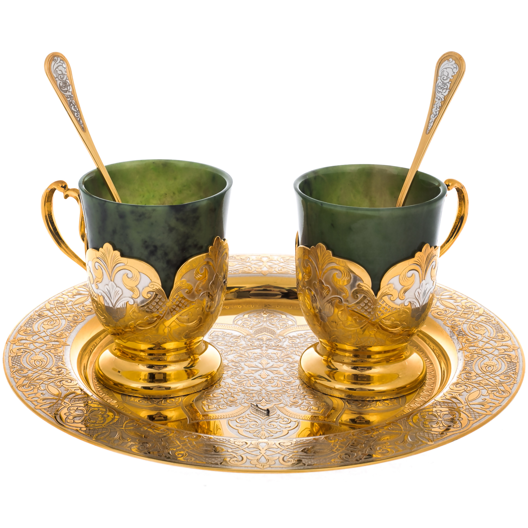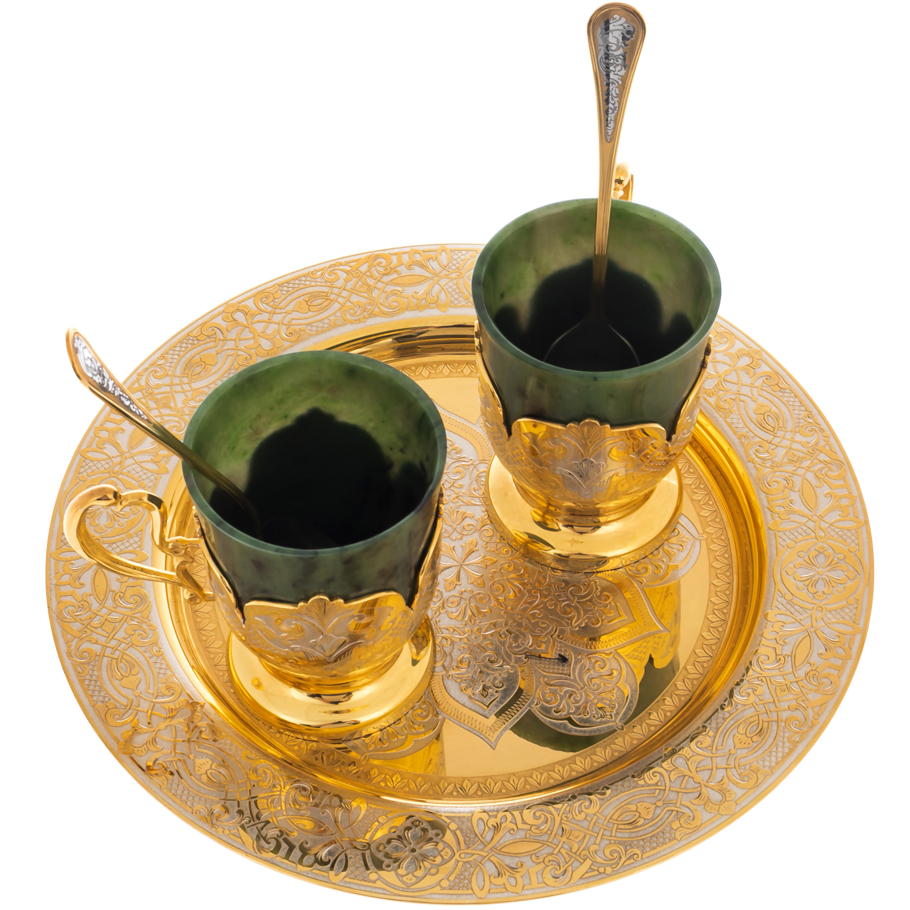 Кофейный набор на 2 персоны "Дуэт" из нефрита, Златоуст