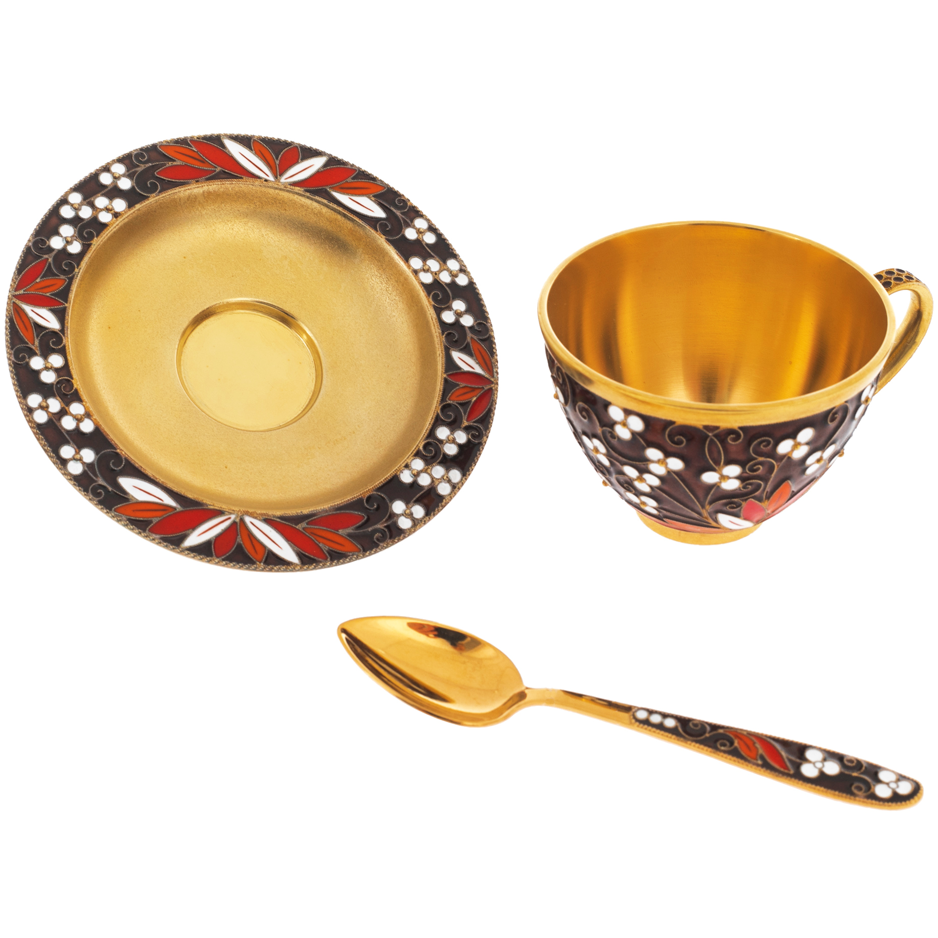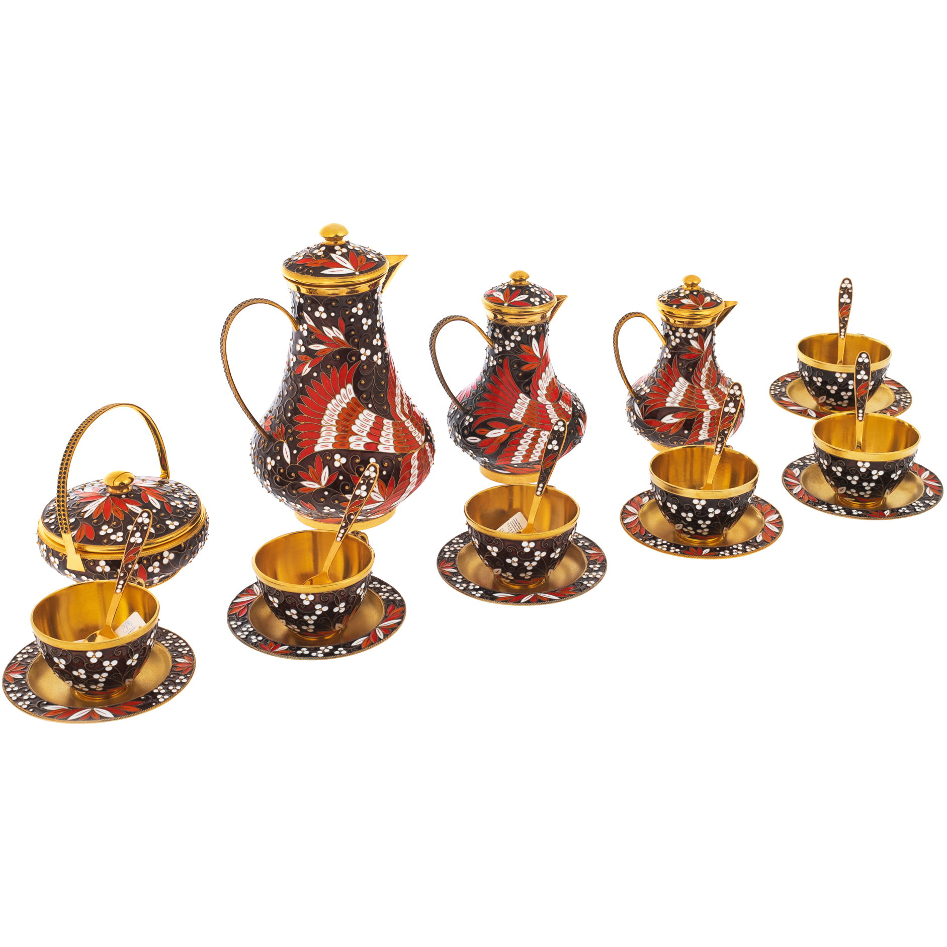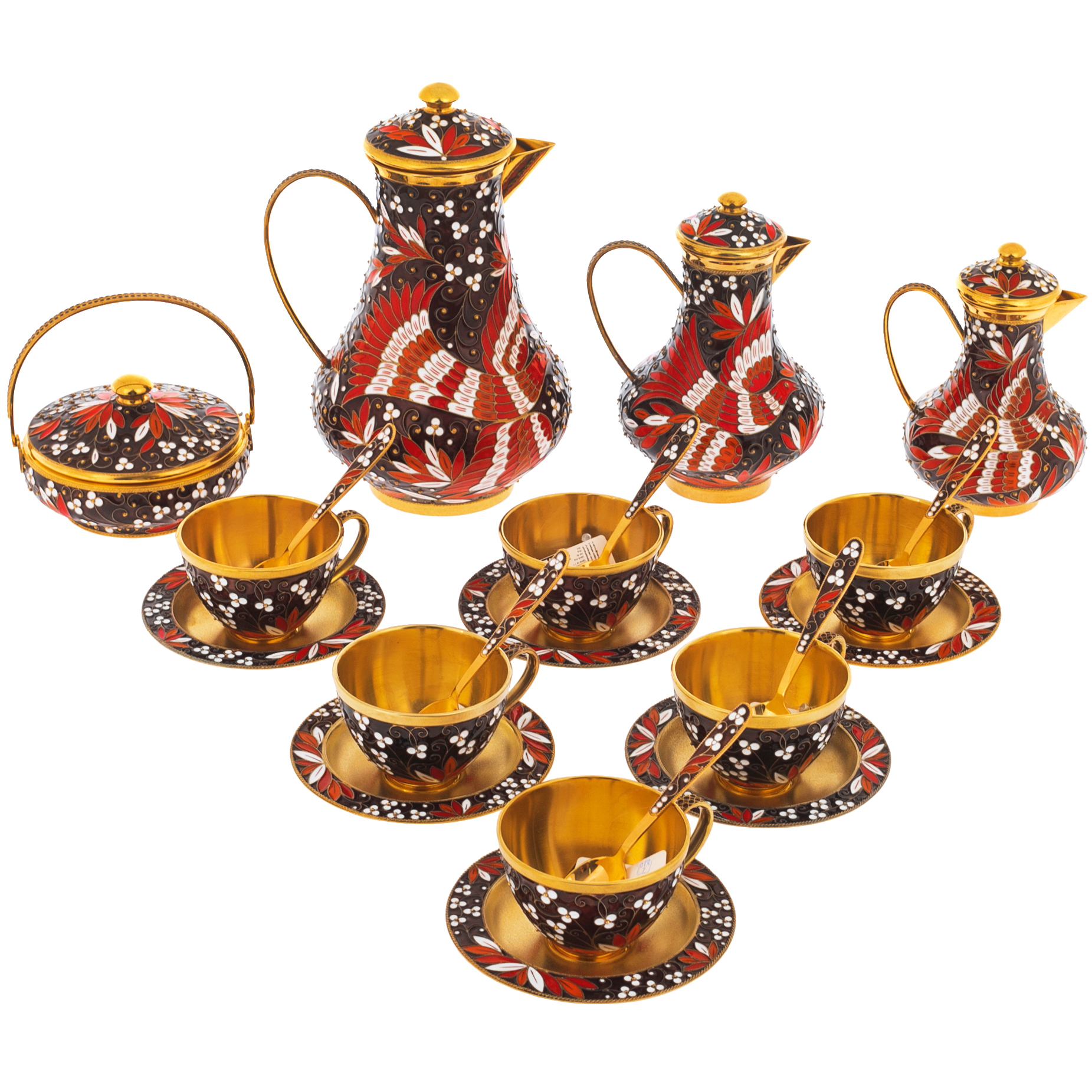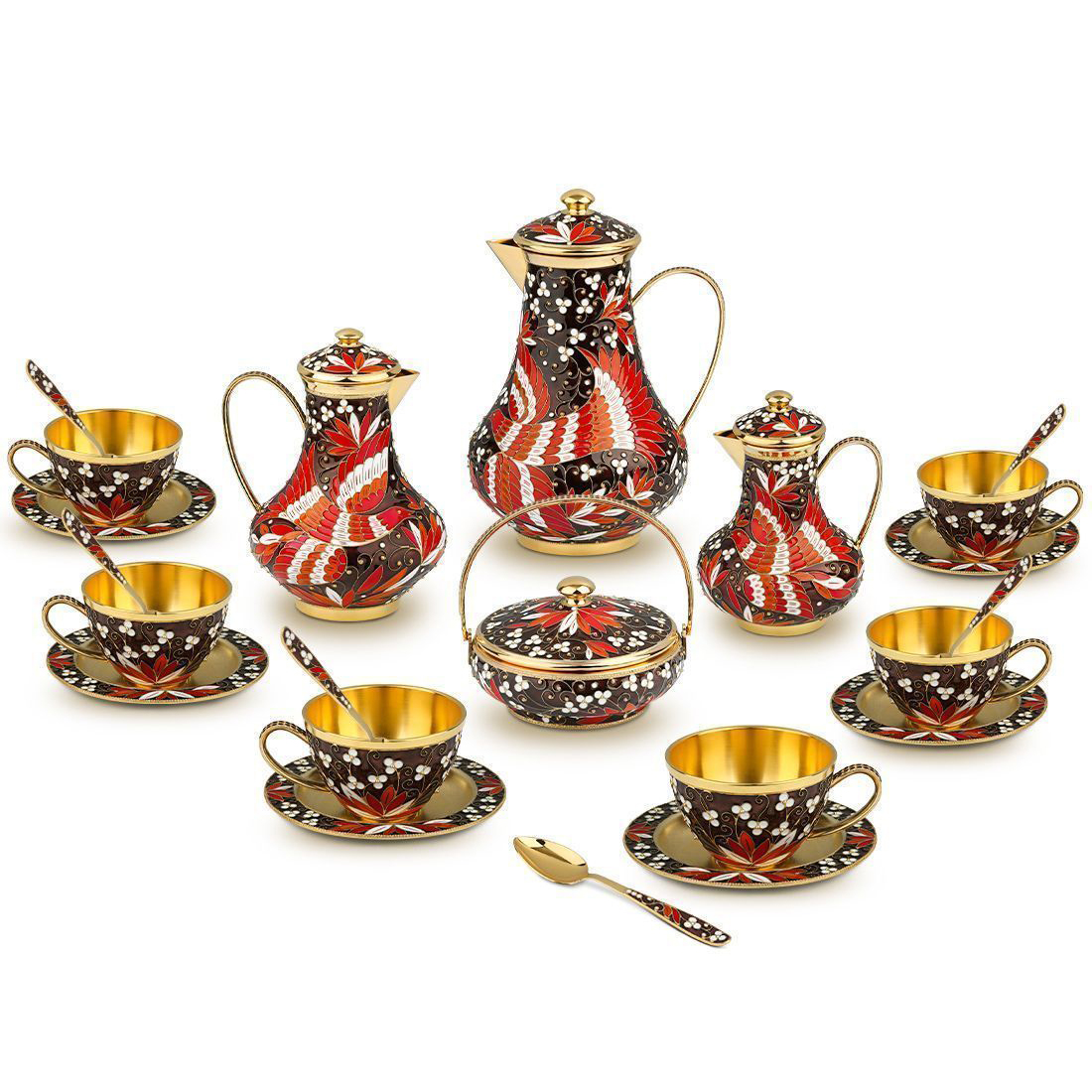 Кофейный сервиз серебряный "Птица" на 6 персон