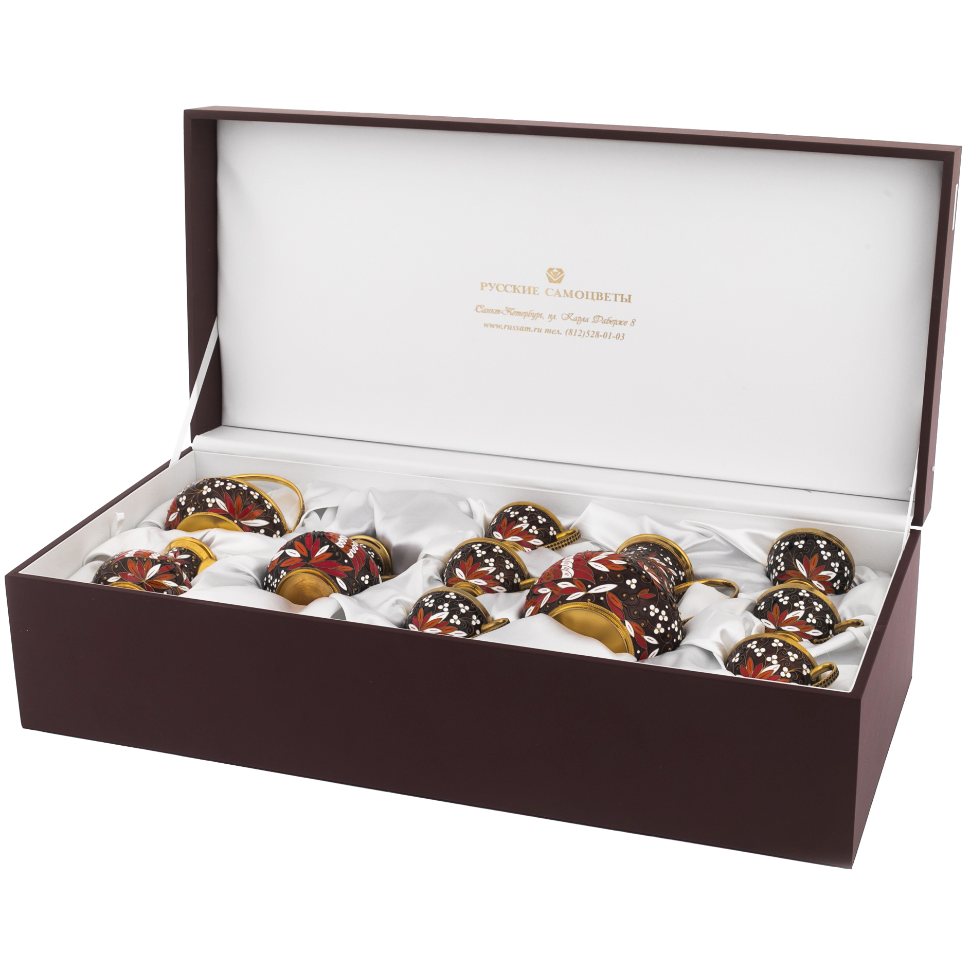Комплектация: кофейник, сахарница, сливочник, молочник, чашка — 6 шт., ложка кофейная — 6 шт., тарелка — 6 шт.