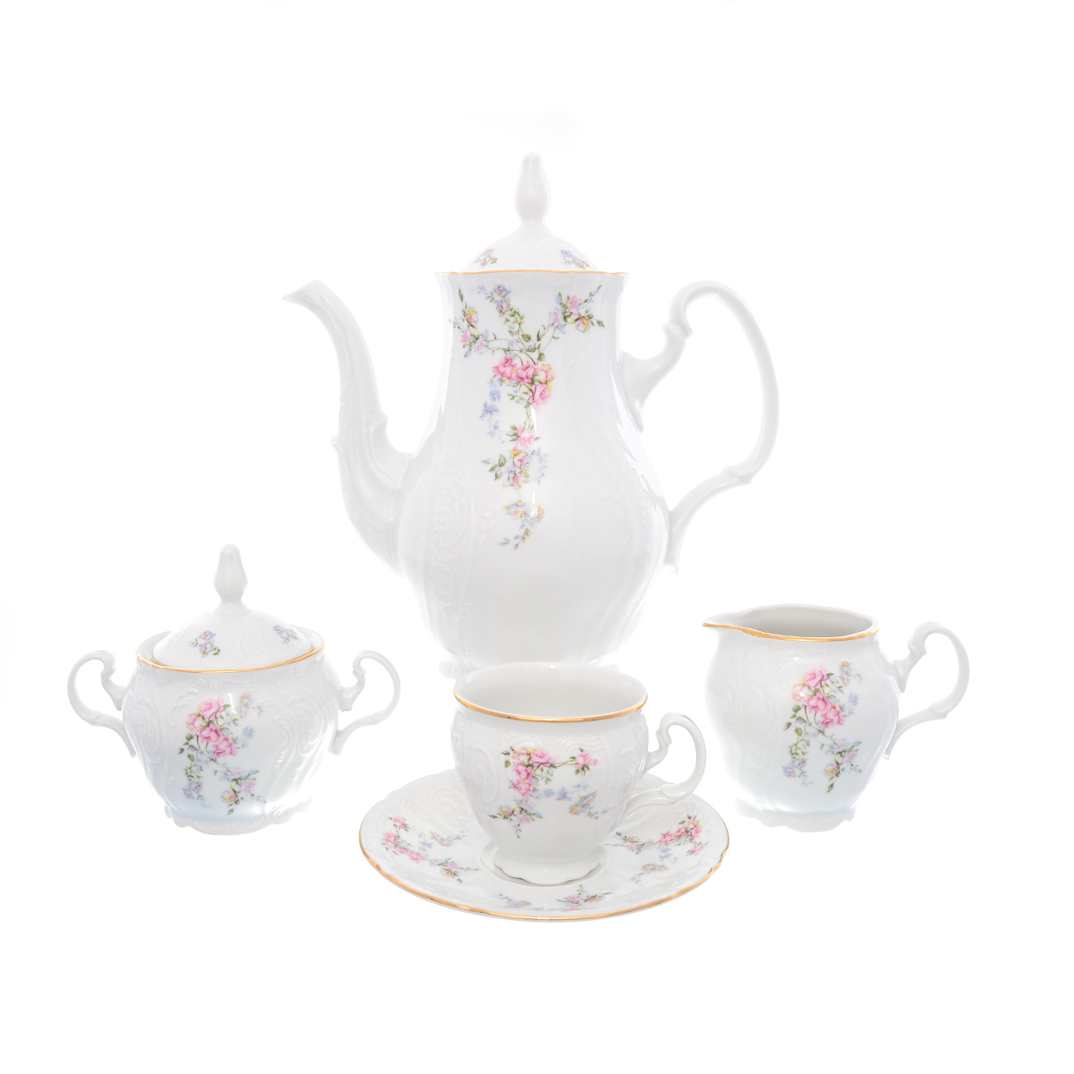 Кофейный сервиз Bernadotte Дикая роза золото 17 предметов, на 6 персон