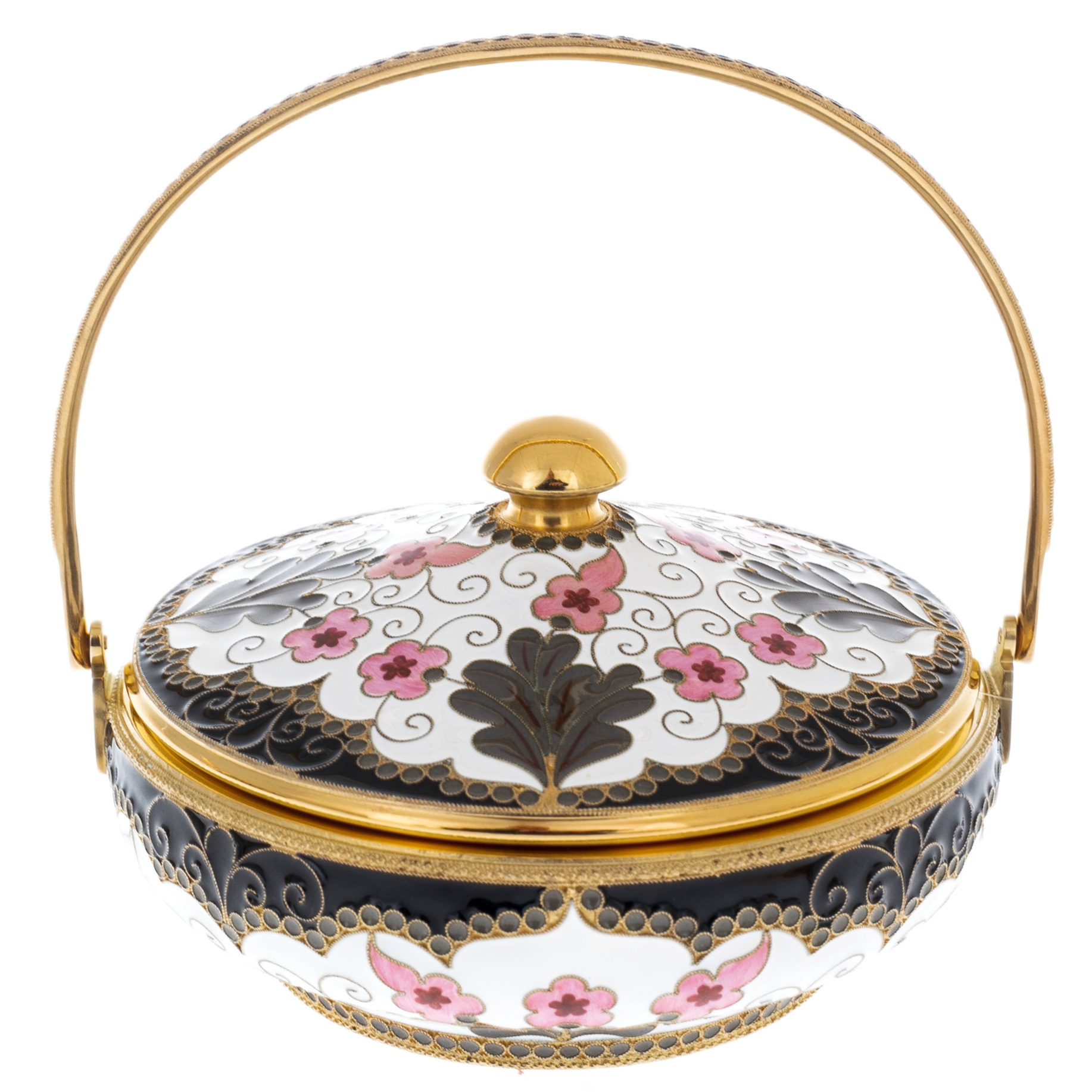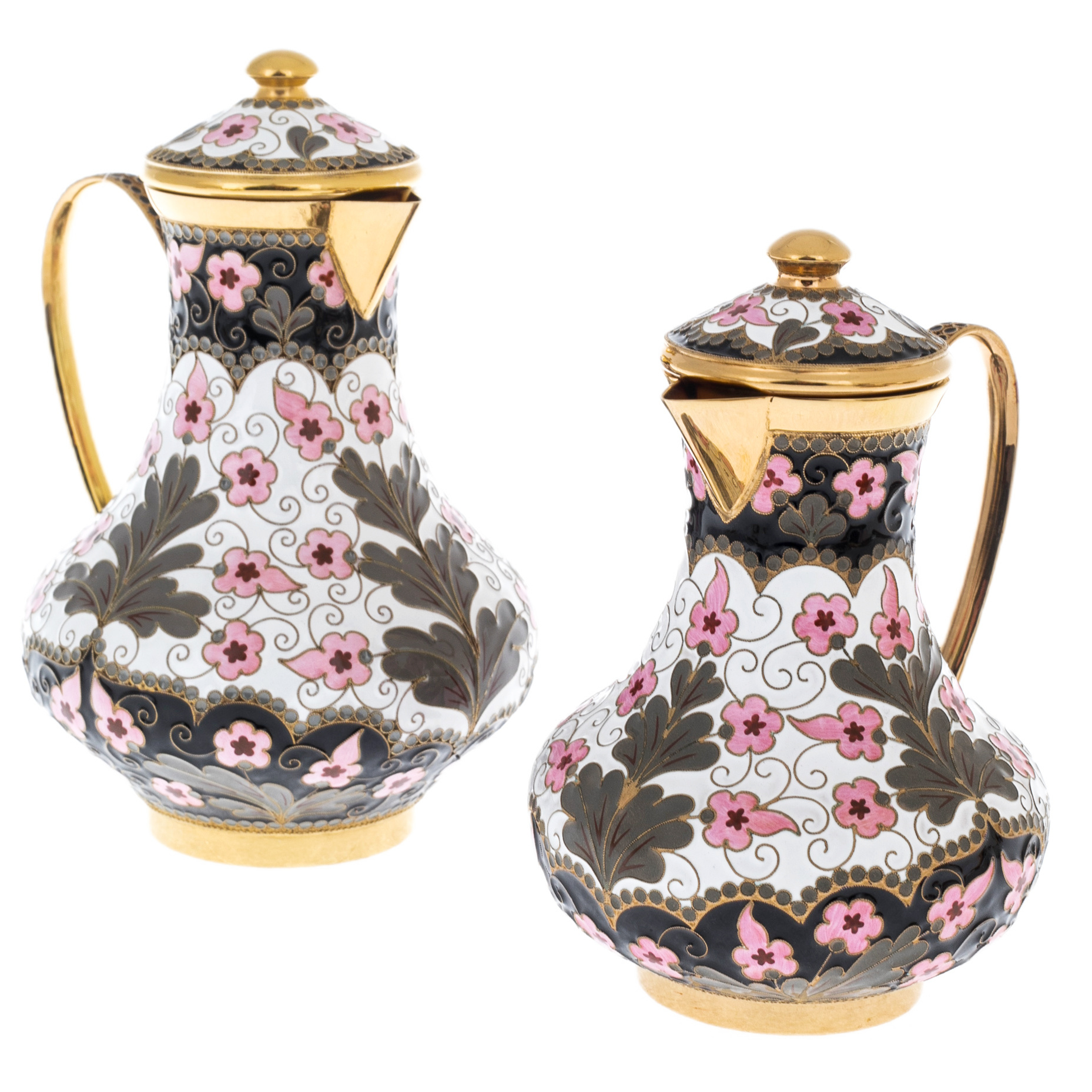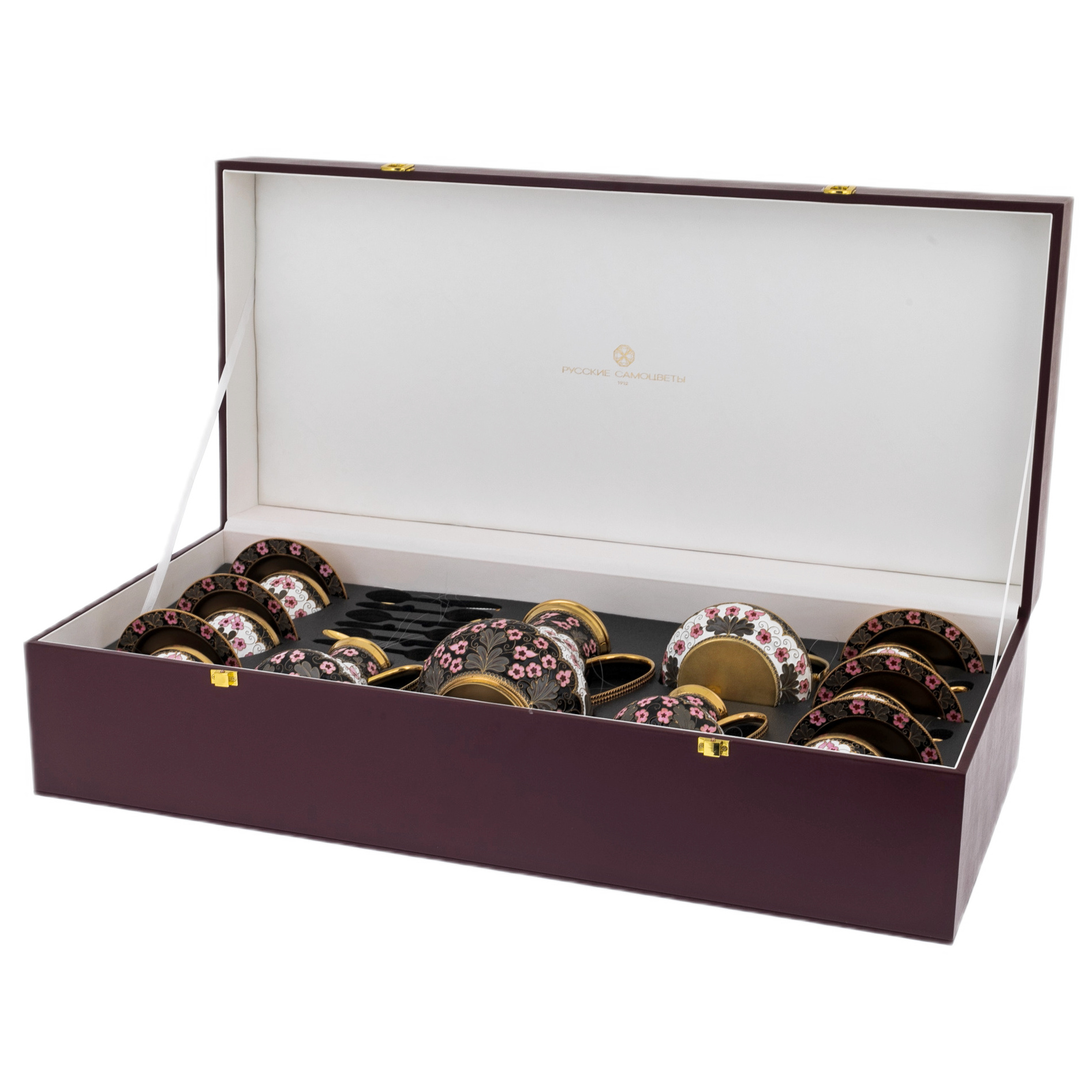 Кофейный сервиз из серебра "Роспись" на 6 персон, белая эмаль