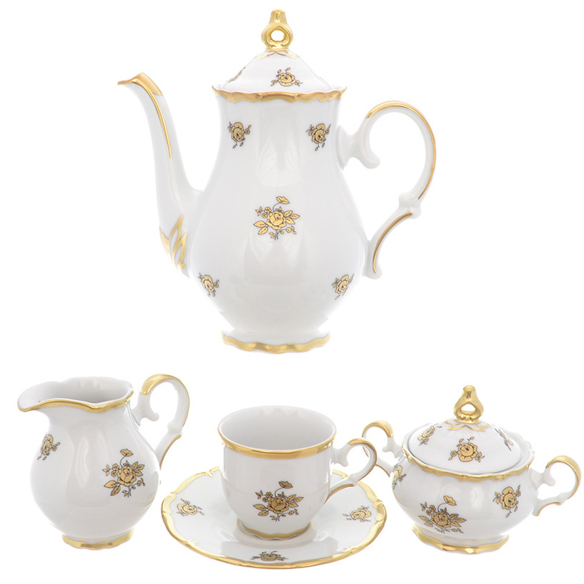 Кофейный сервиз мокка "Queen's Crown. Золотая роза" на 6 персон, 15 предметов