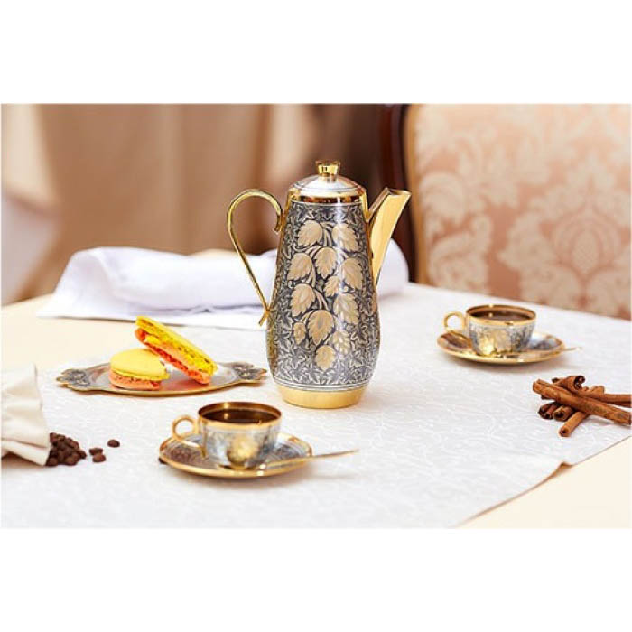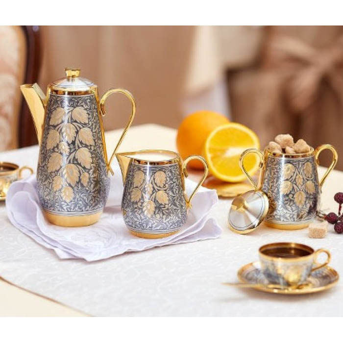 Комплектация: кофейник — 1 шт., молочник — 1 шт., сахарница — 1 шт., чашка — 6 шт., блюдце — 6 шт., ложка — 6 шт.