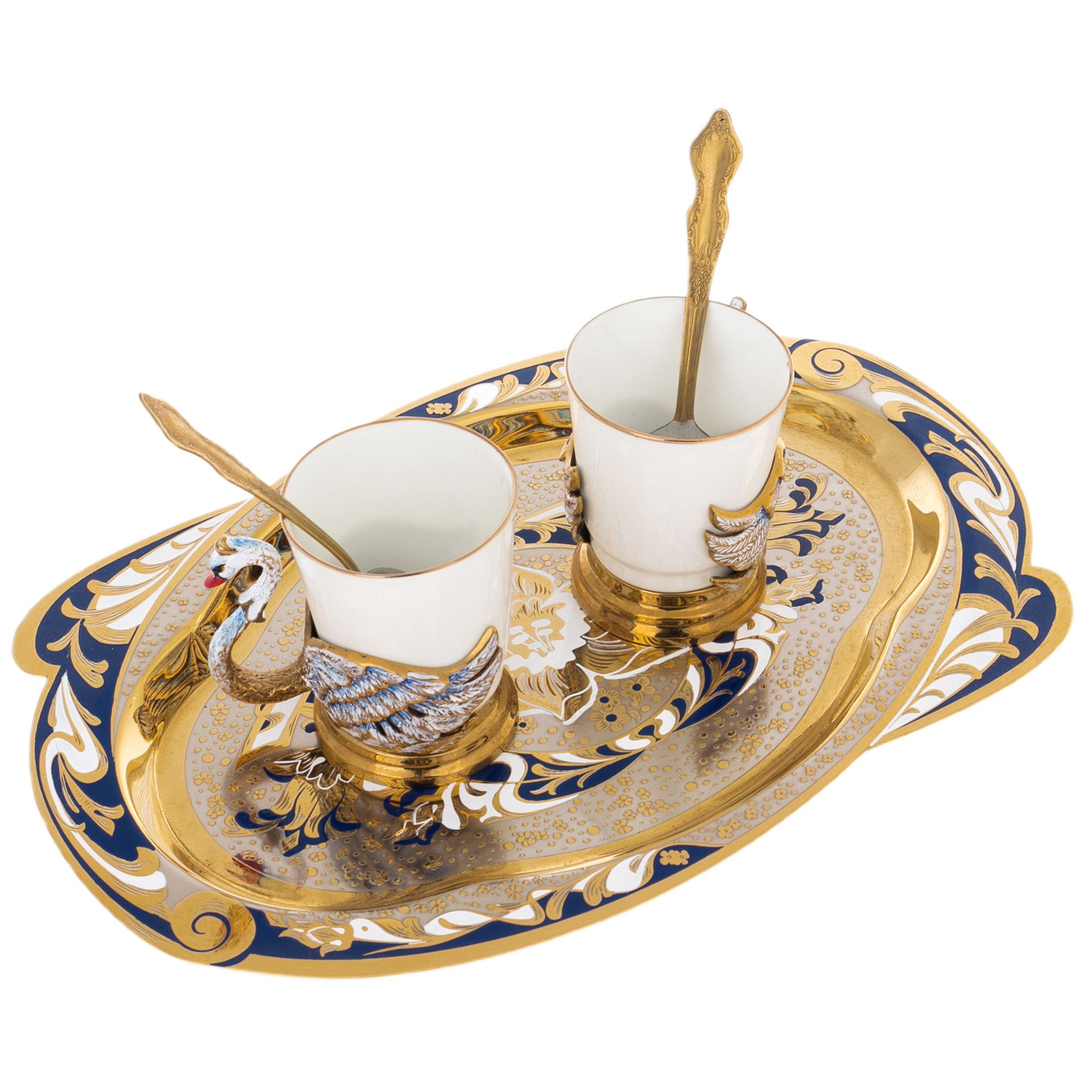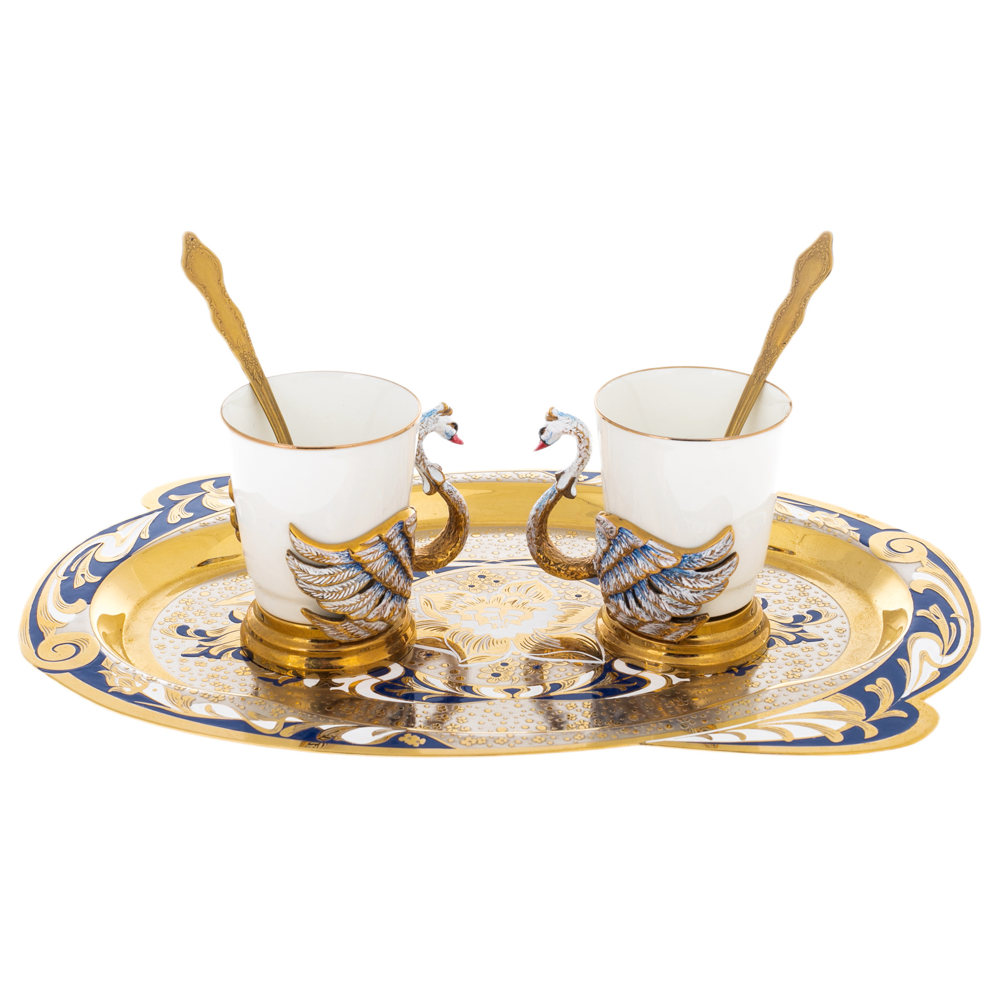 Набор для кофе "Лебеди" на 2 персоны, Златоуст