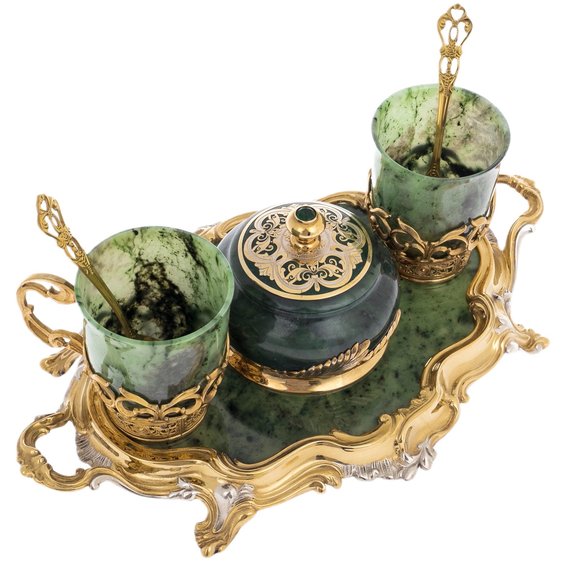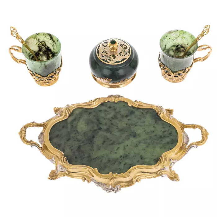Набор кофейный из нефрита "Барокко" на 2 персоны, Златоуст